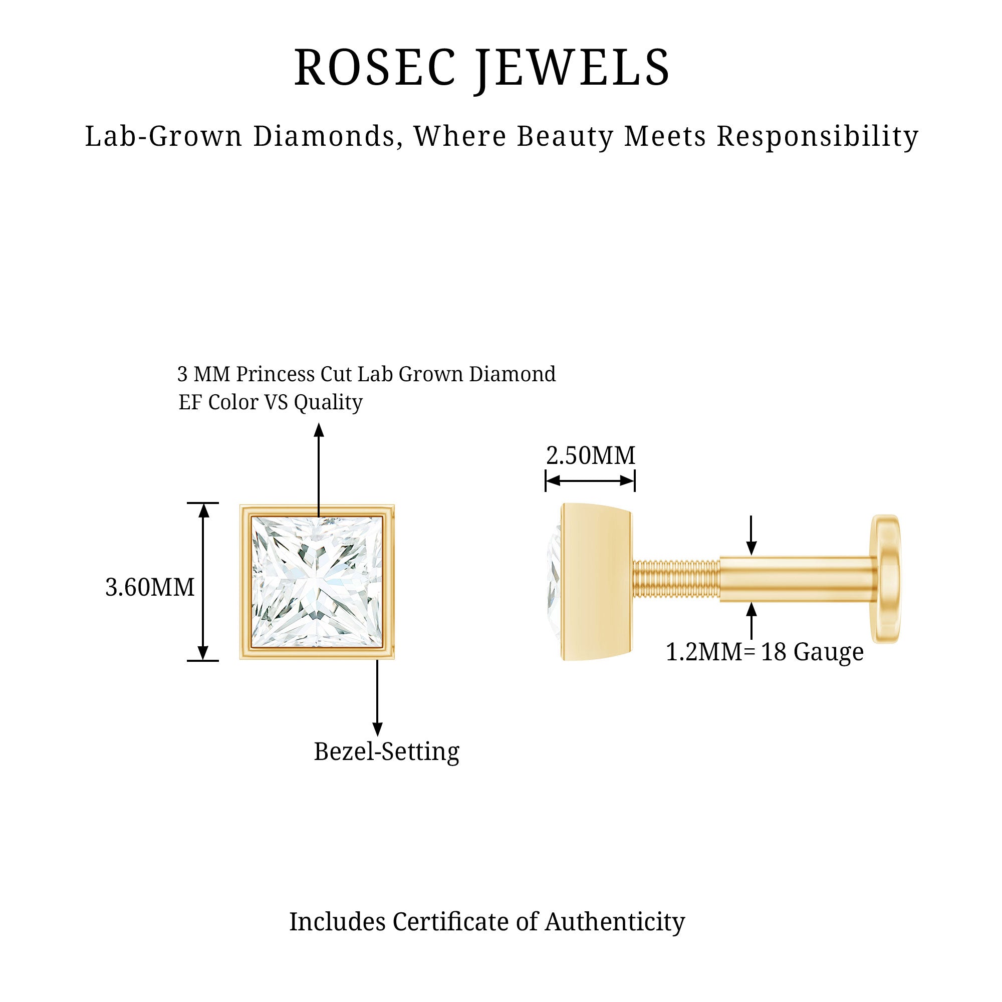 Cant get enough of the geometric charm of this Diamond Conch Earring. If you have space for an additional piercing earring, this will definitely be your favorite choice. Its a clever addition to your jewelry collection. This pierced earring showcases a princess cut diamond secured by a bezel setting. Made from Hallmarked Metal, this diamond solitaire earring is a durable option and offers a unique and eye-catching way to express your style in the city. Surprise your loved one with this square diamond earring as a gift for an anniversary, birthday, graduation, or Christmas. The best feature is its flat back closure, which ensures both security and comfort. You can mix and match it with other earrings to showcase your personal fashion style. This Helix Stud Earring shines luxuriously with a certified diamond that delivers outstanding brilliance, making your appearance truly remarkable. It is carefully handcrafted to enhance your ear and will come in a premium packaging box for safekeeping, along with a certificate of authenticity.