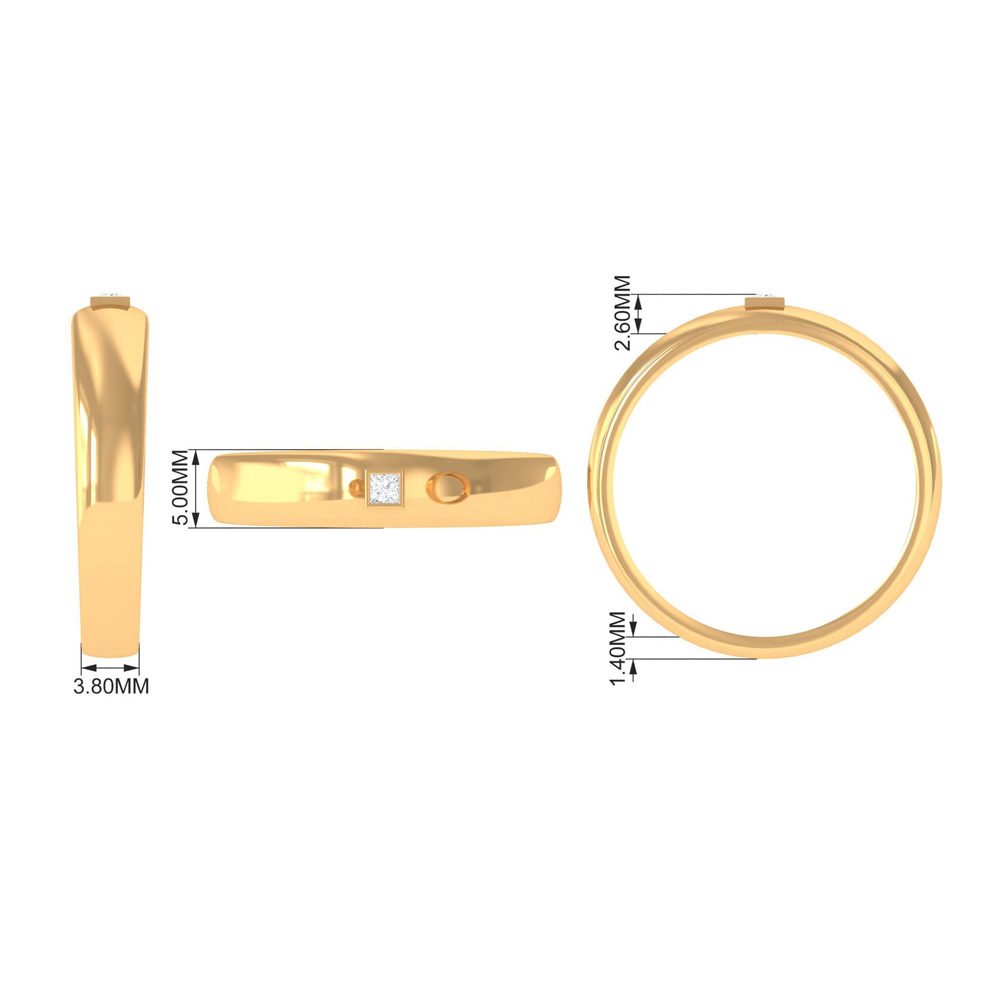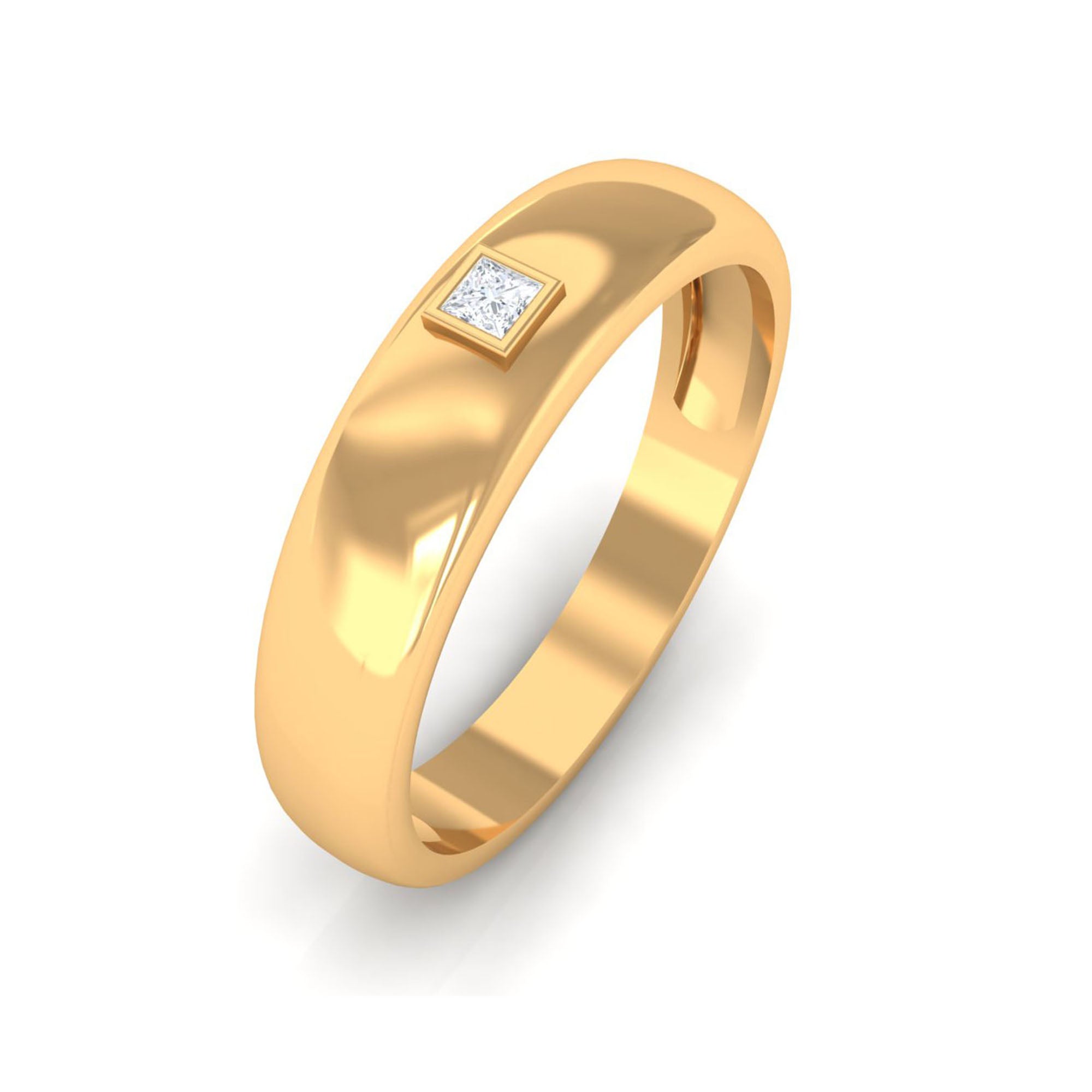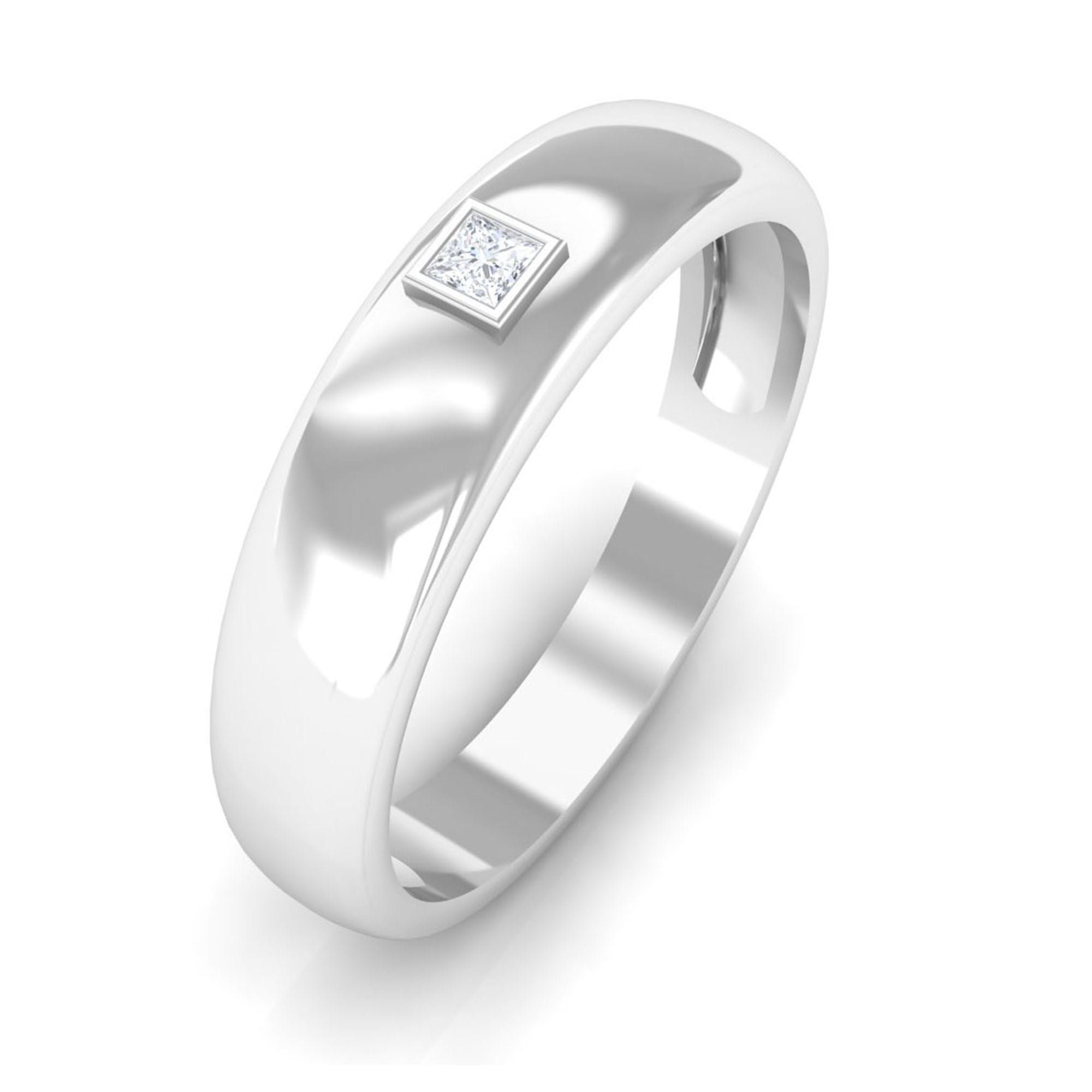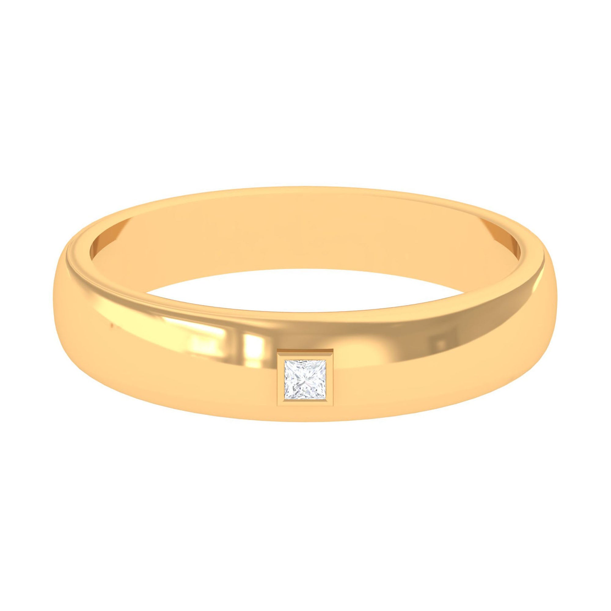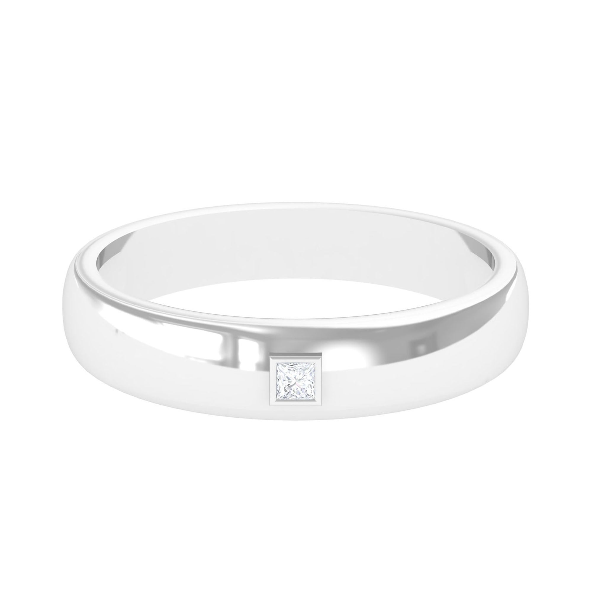 A unique and classy style, this diamond solitaire band ring will make you fall in love for sure. The ring features a 2 MM princess cut diamond center stone, making a sparkling effect to the ring. The bezel setting ensures the safety and durability of the stone, adding quality standards to this piece. This stunning band ring is a symbol of your commitment to your partner.