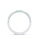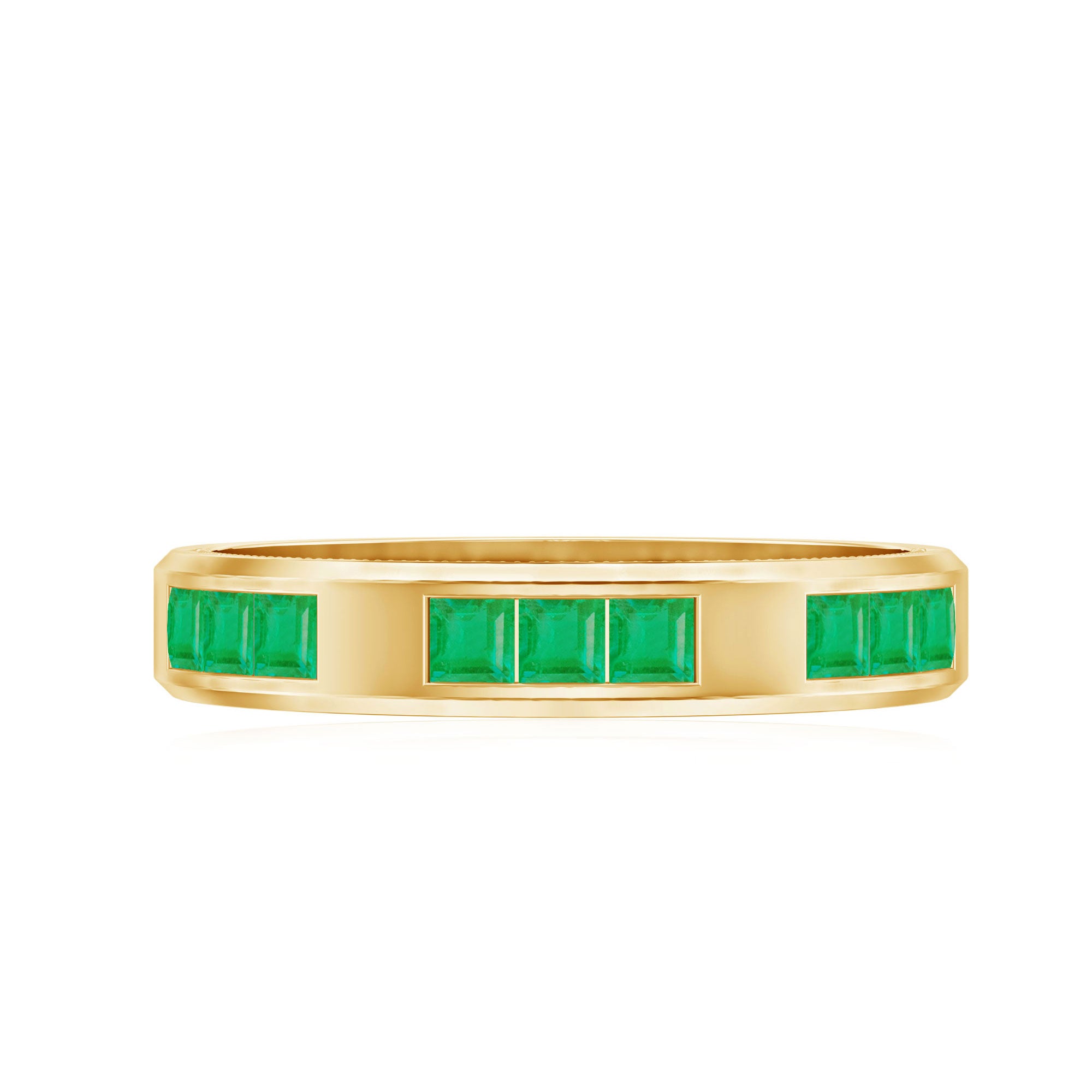Impress your loved one with this stunning Emerald Wedding Band designed for men. It features trios of princess cut emeralds, artfully arranged in evenly spaced sections across the half band, resulting in a harmonious appearance. The natural emeralds are securely channel set to guarantee they will shine brilliantly for a lifetime. This Princess Cut Band is an ideal jewelry for him as it can be worn for any occasion and complements any outfit beautifully. Start your forever with our Channel Set Wedding Band and express your commitment in style. It offers a wide range of metal color options to choose from and is also available in various ring sizes. This band ring includes a certificate of authenticity for the gemstones and is presented in a luxurious jewelry box. The exquisite Emerald Band Ring will dazzle endlessly. So dont hesitate, and get your hands on this enchanting May Birthstone Ring and make him feel like royalty.