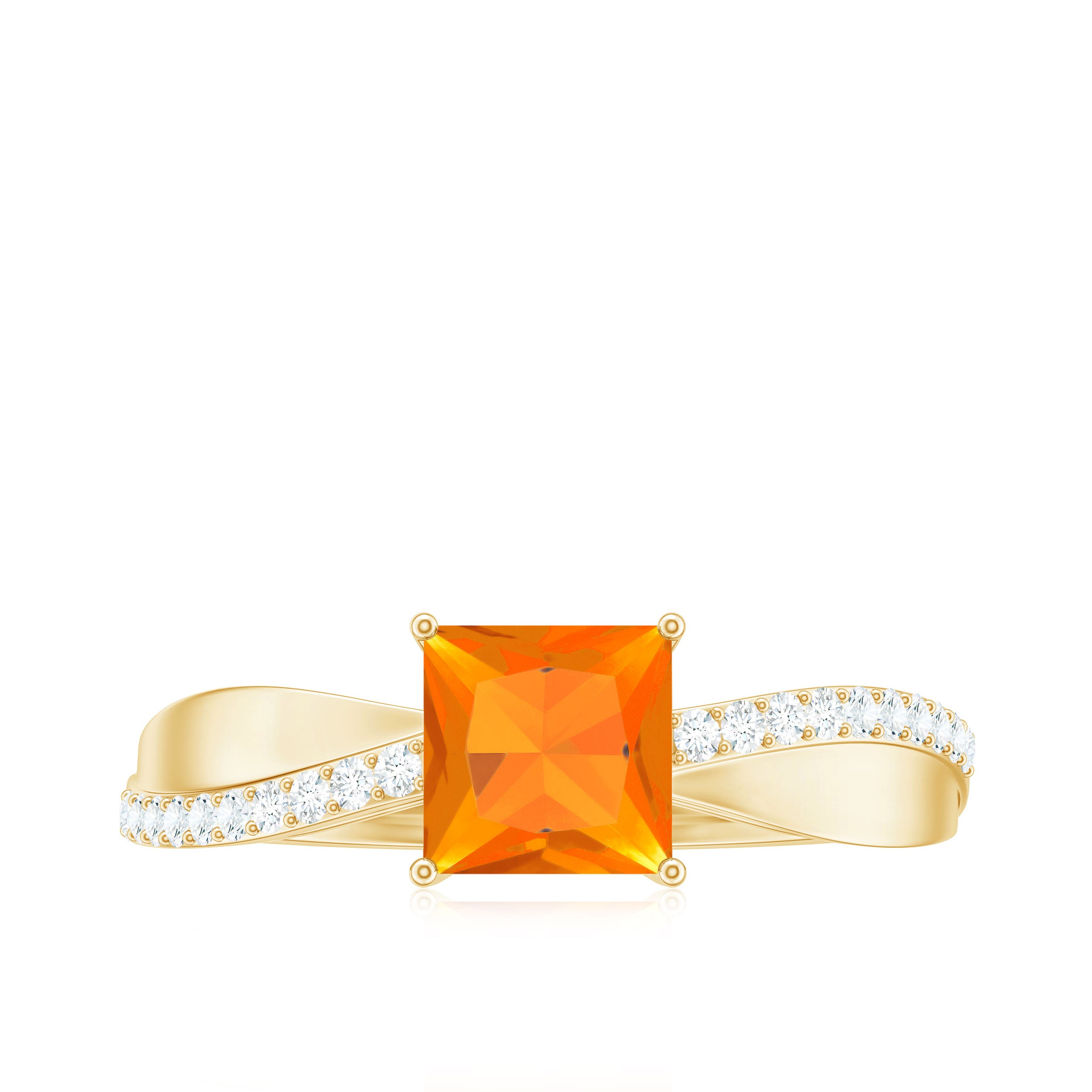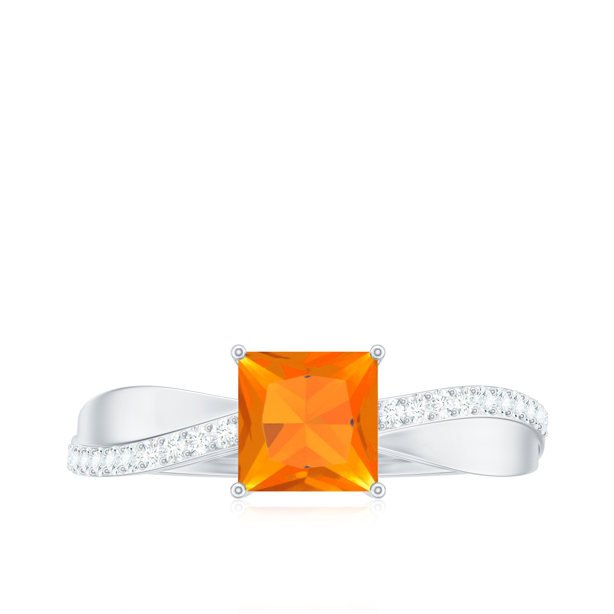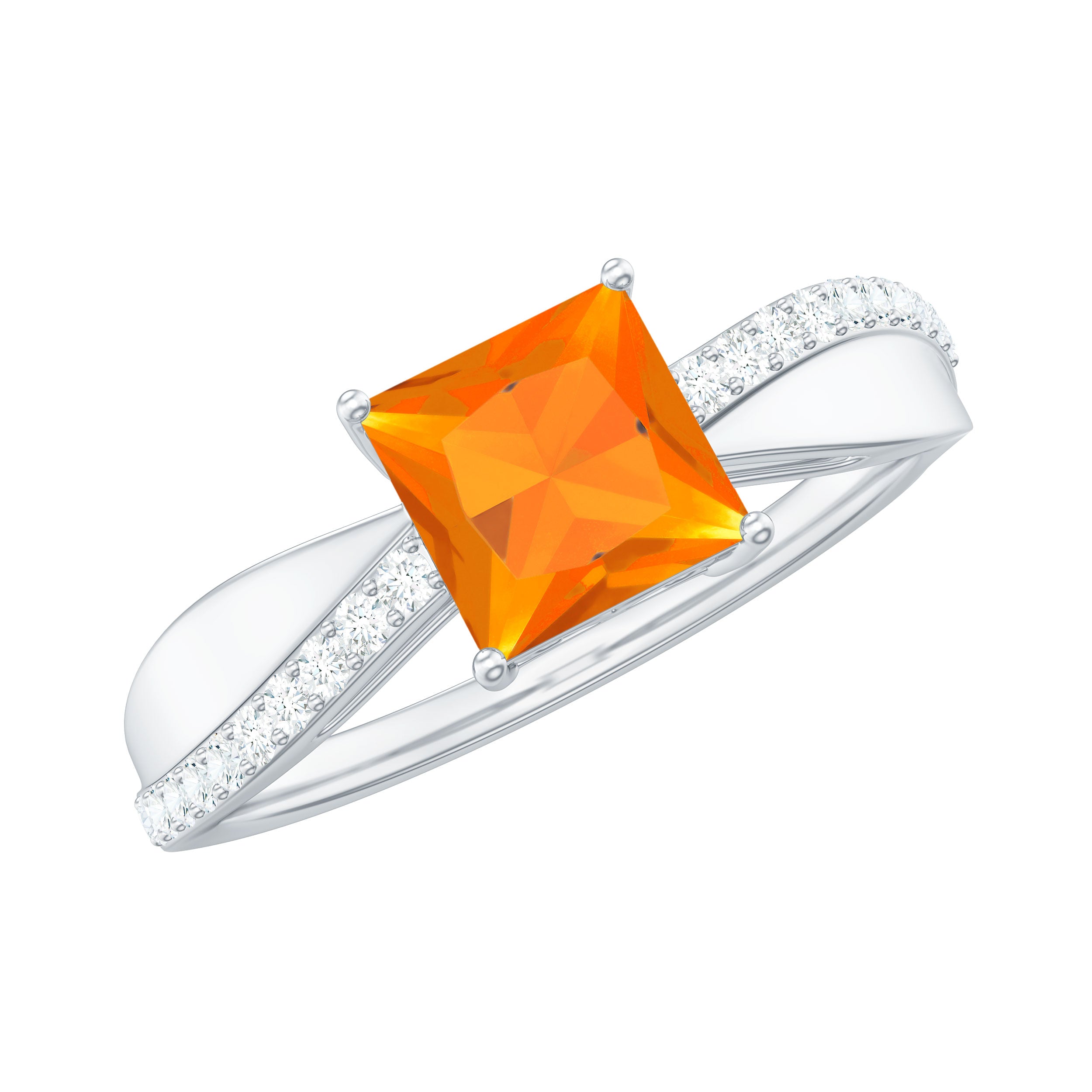 Princess Cut Fire Opal Solitaire Engagement Ring with Diamond