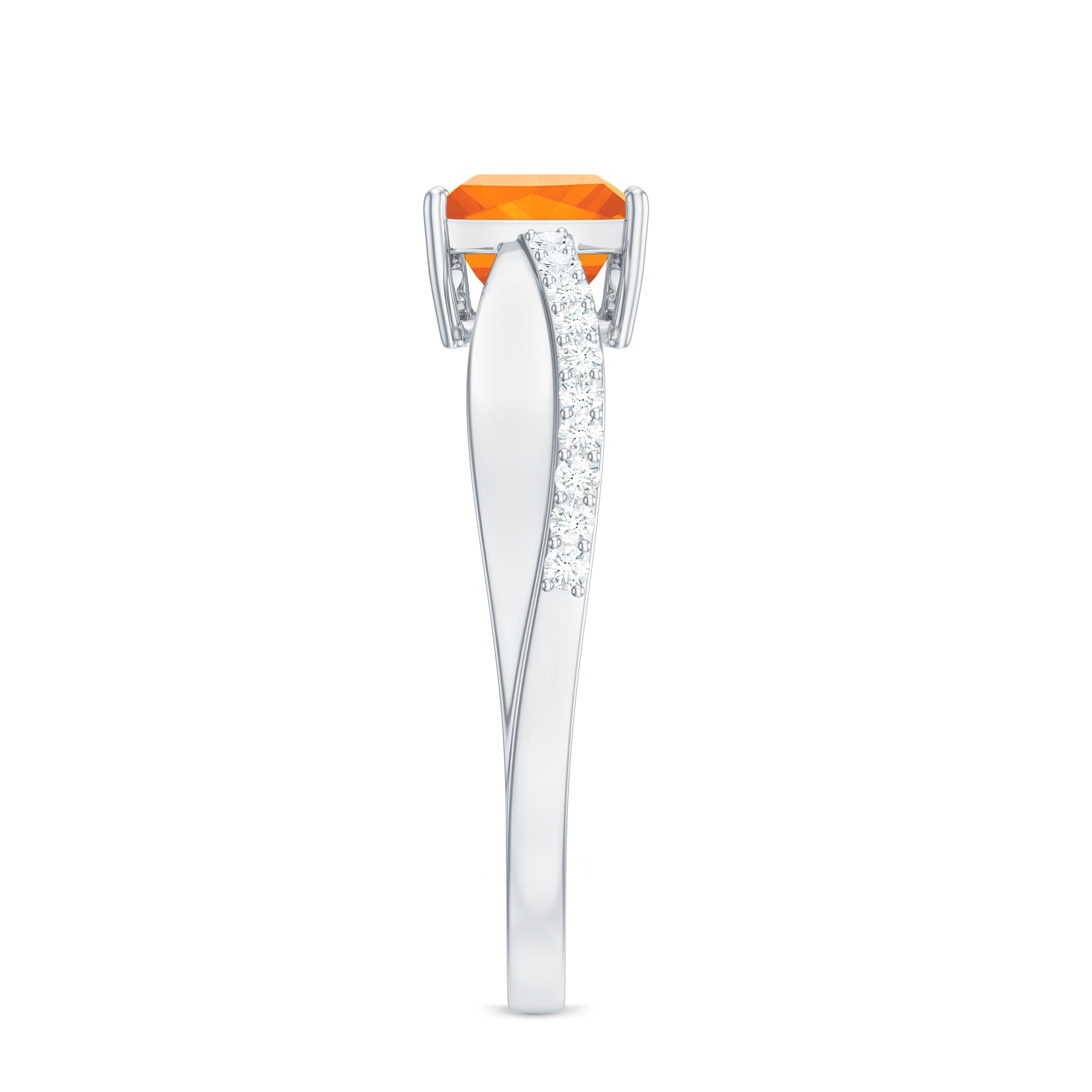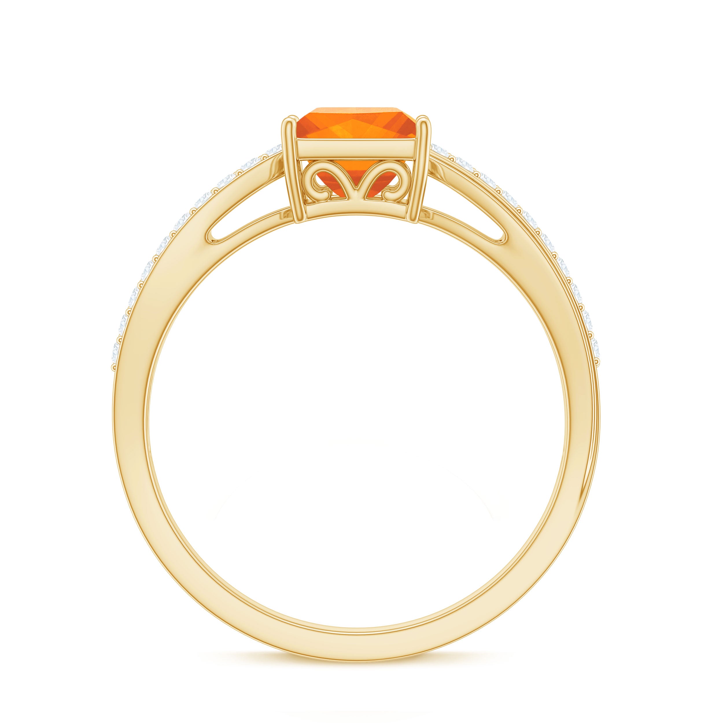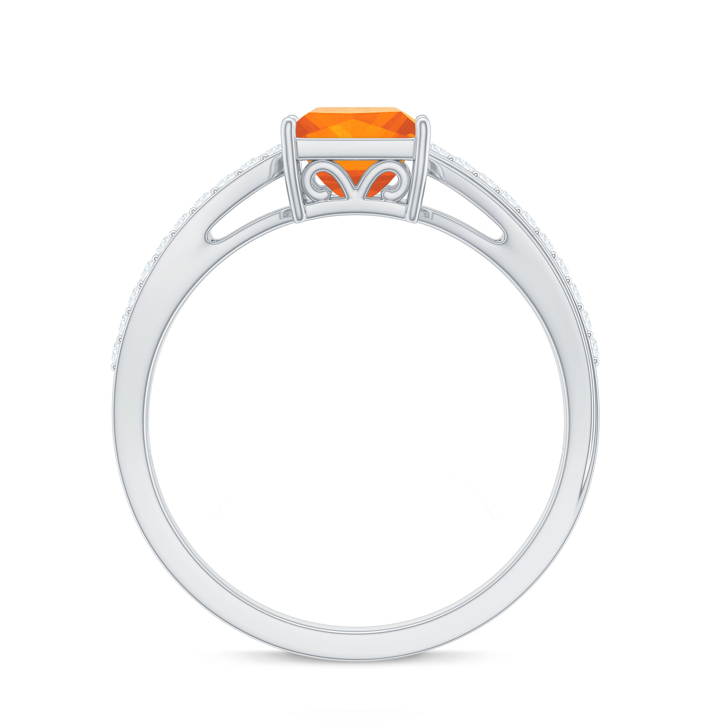 Princess Cut Fire Opal Solitaire Engagement Ring with Diamond