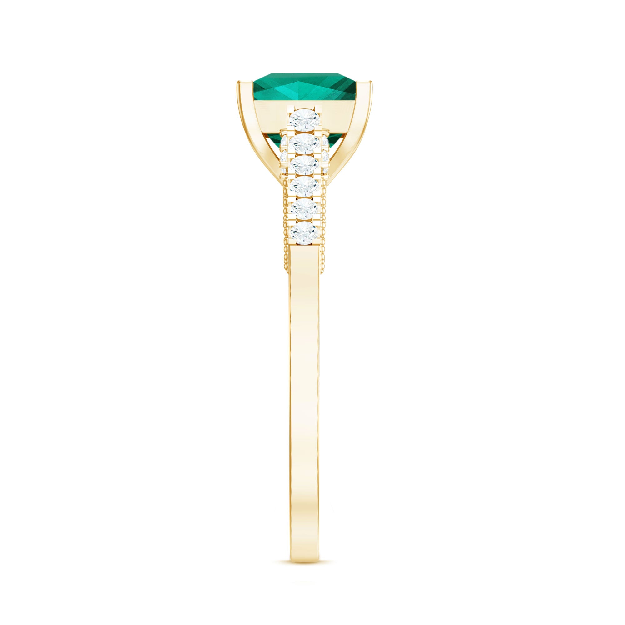 Princess Cut Lab Created Emerald Solitaire Ring with Diamond Side Stones