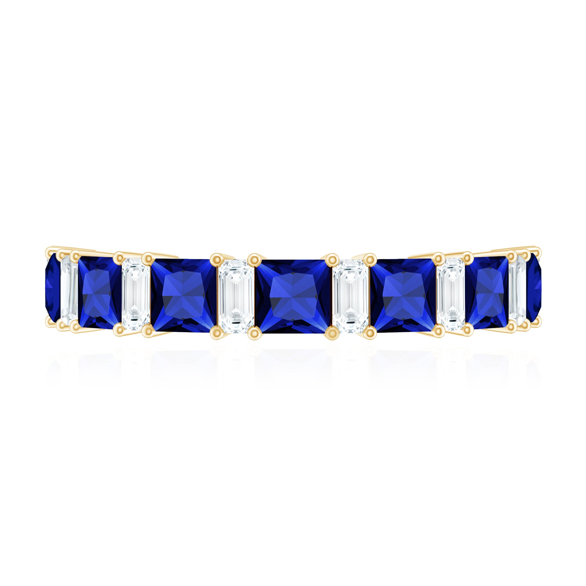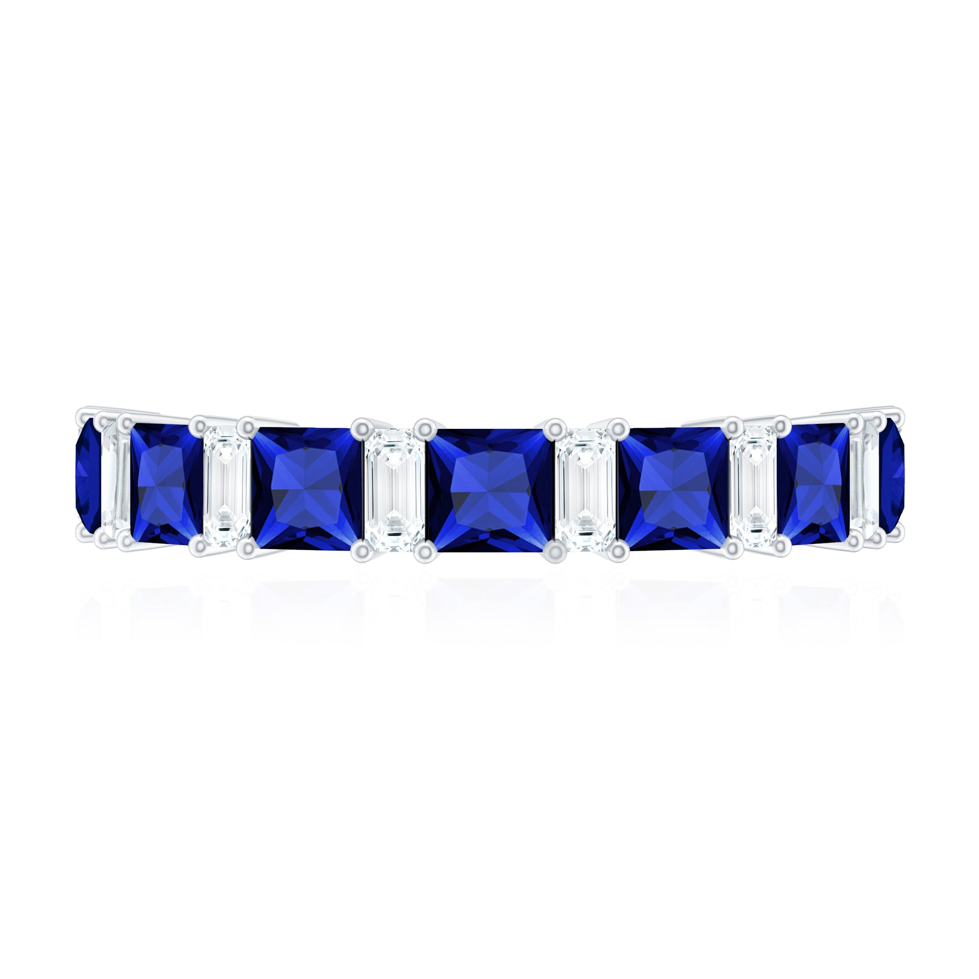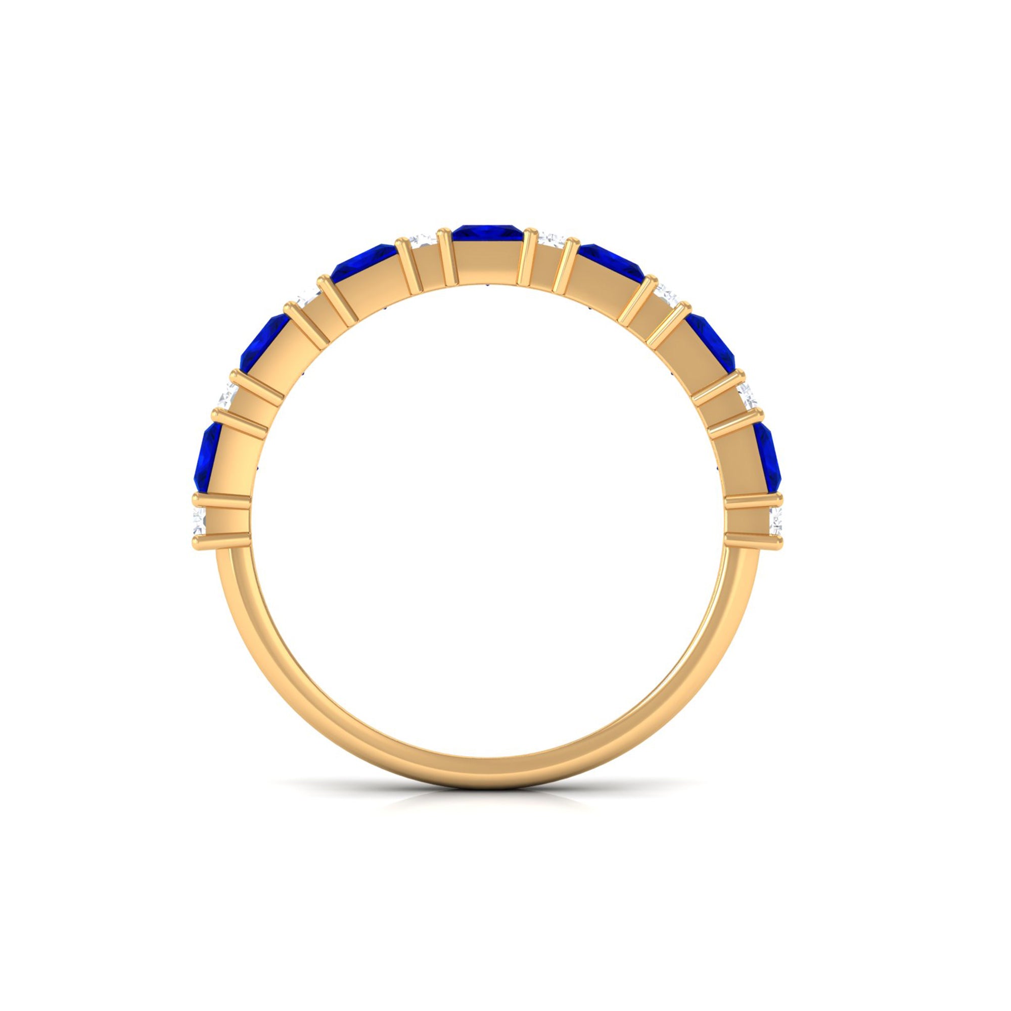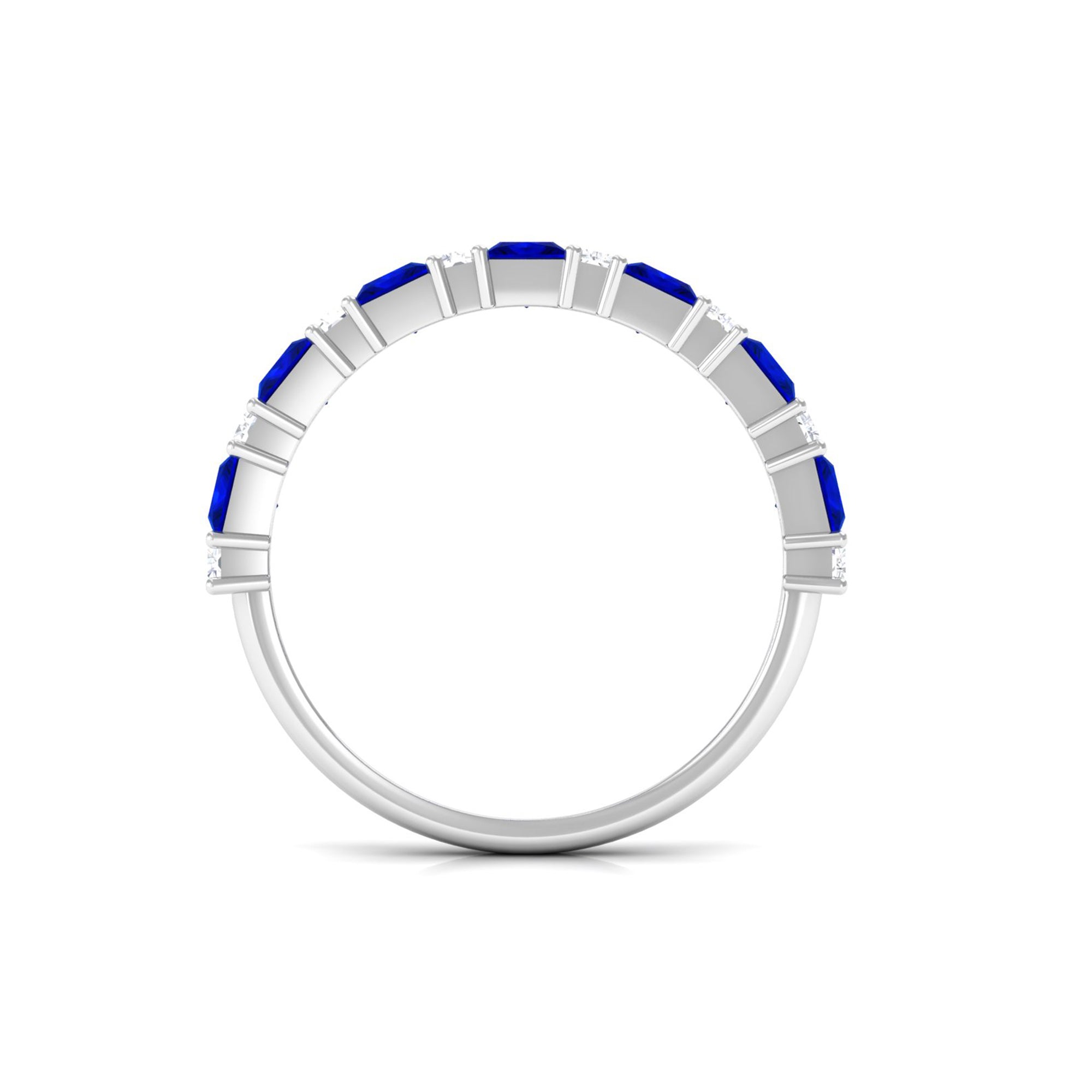 Princess Cut Lab Grown Blue Sapphire Half Eternity Ring with Diamond