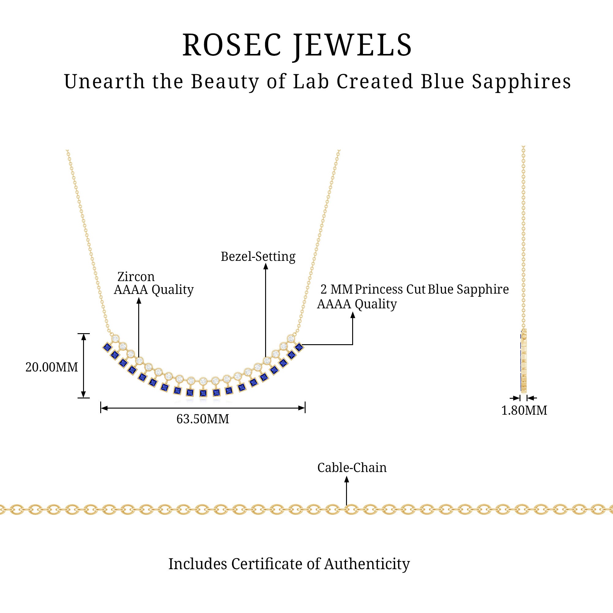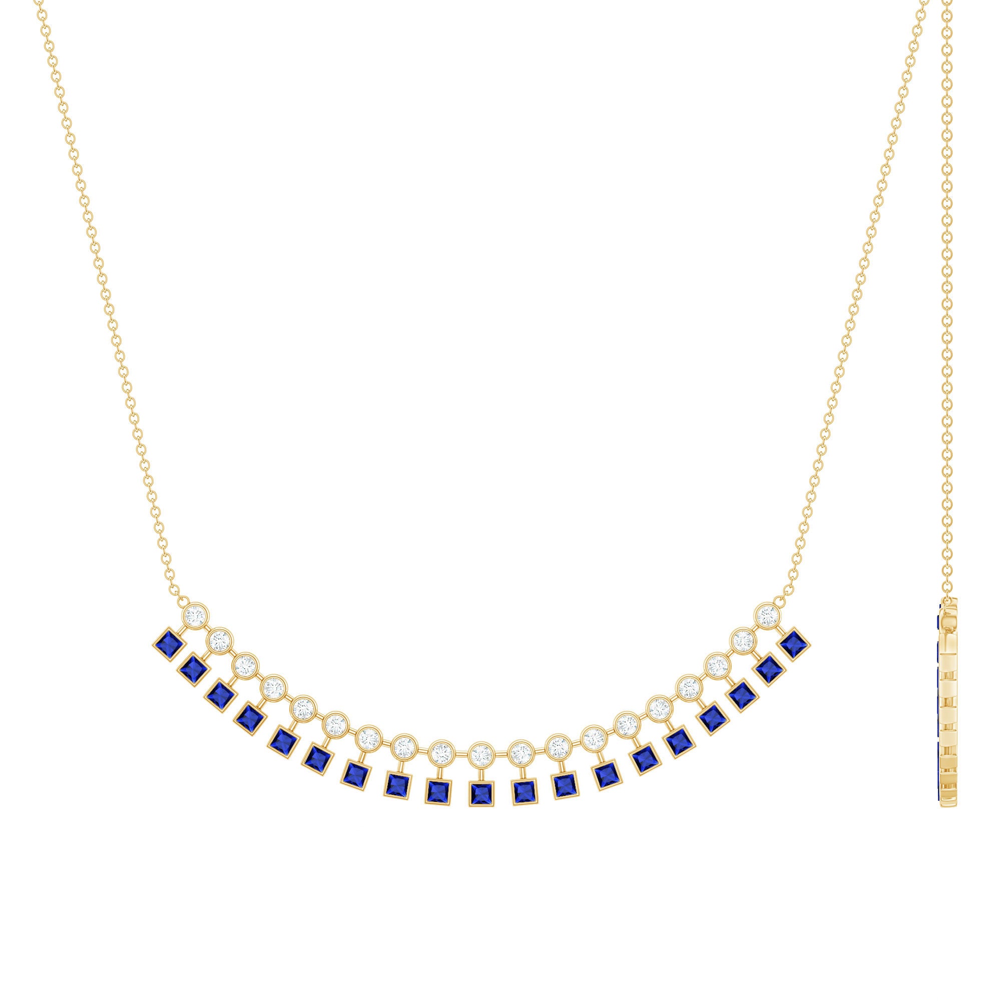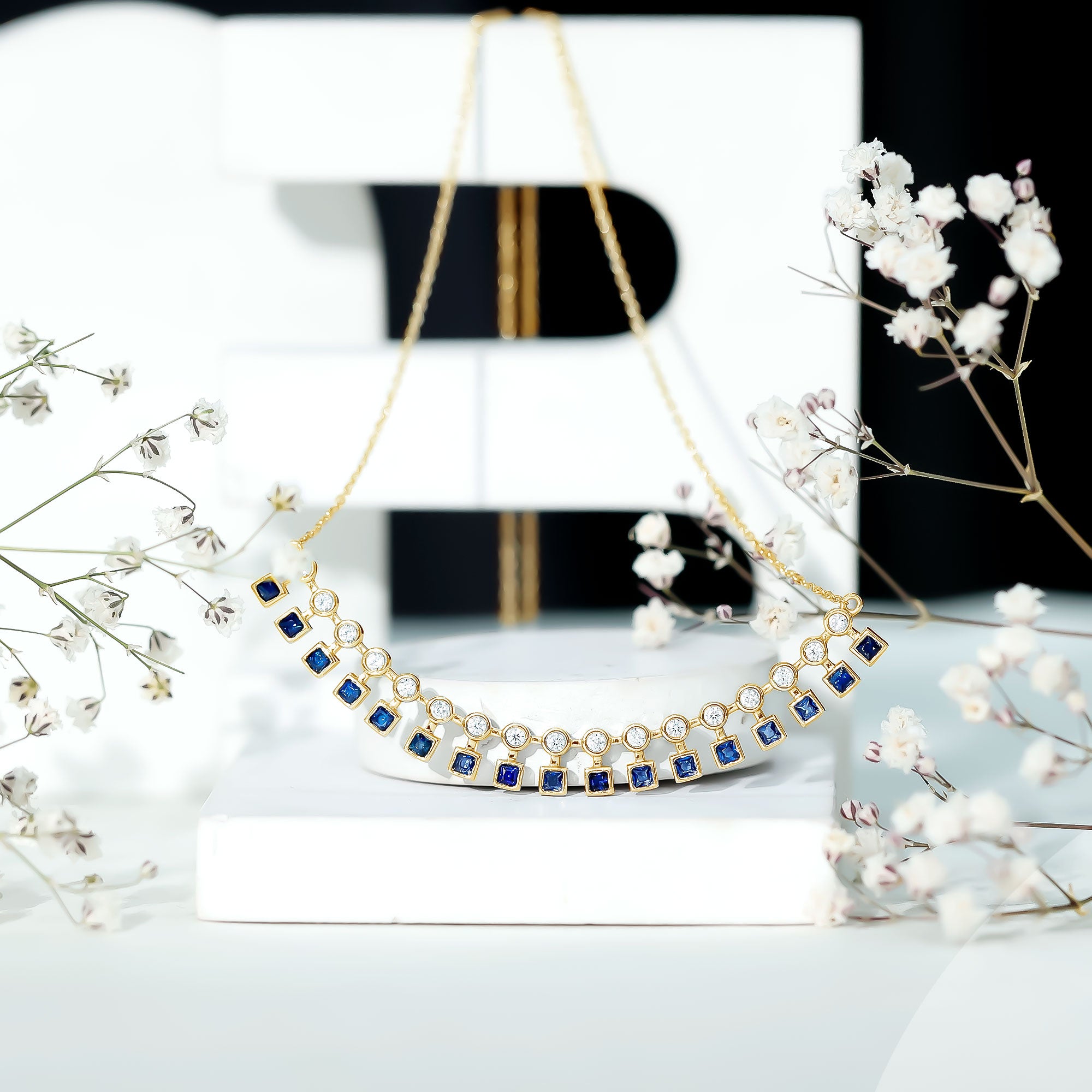 Princess Cut Lab Grown Blue Sapphire Statement Necklace With Certificate