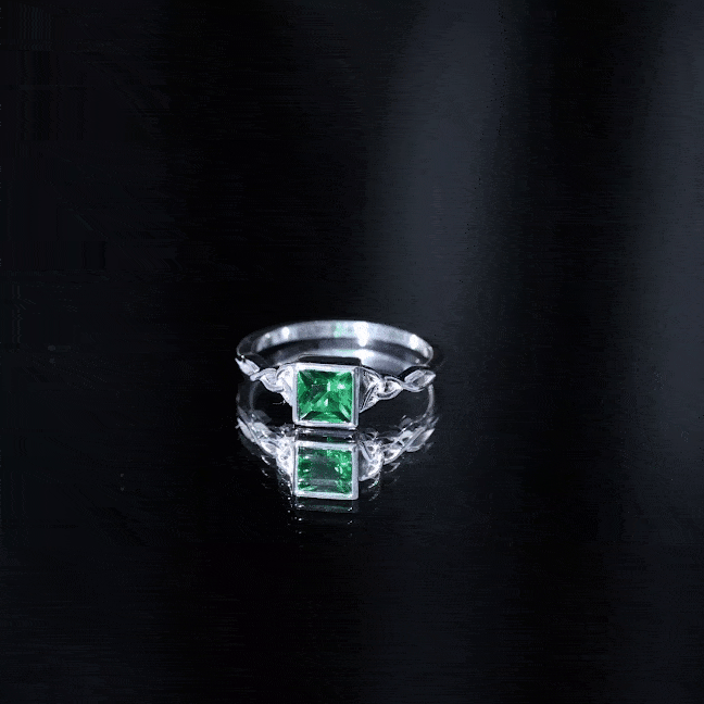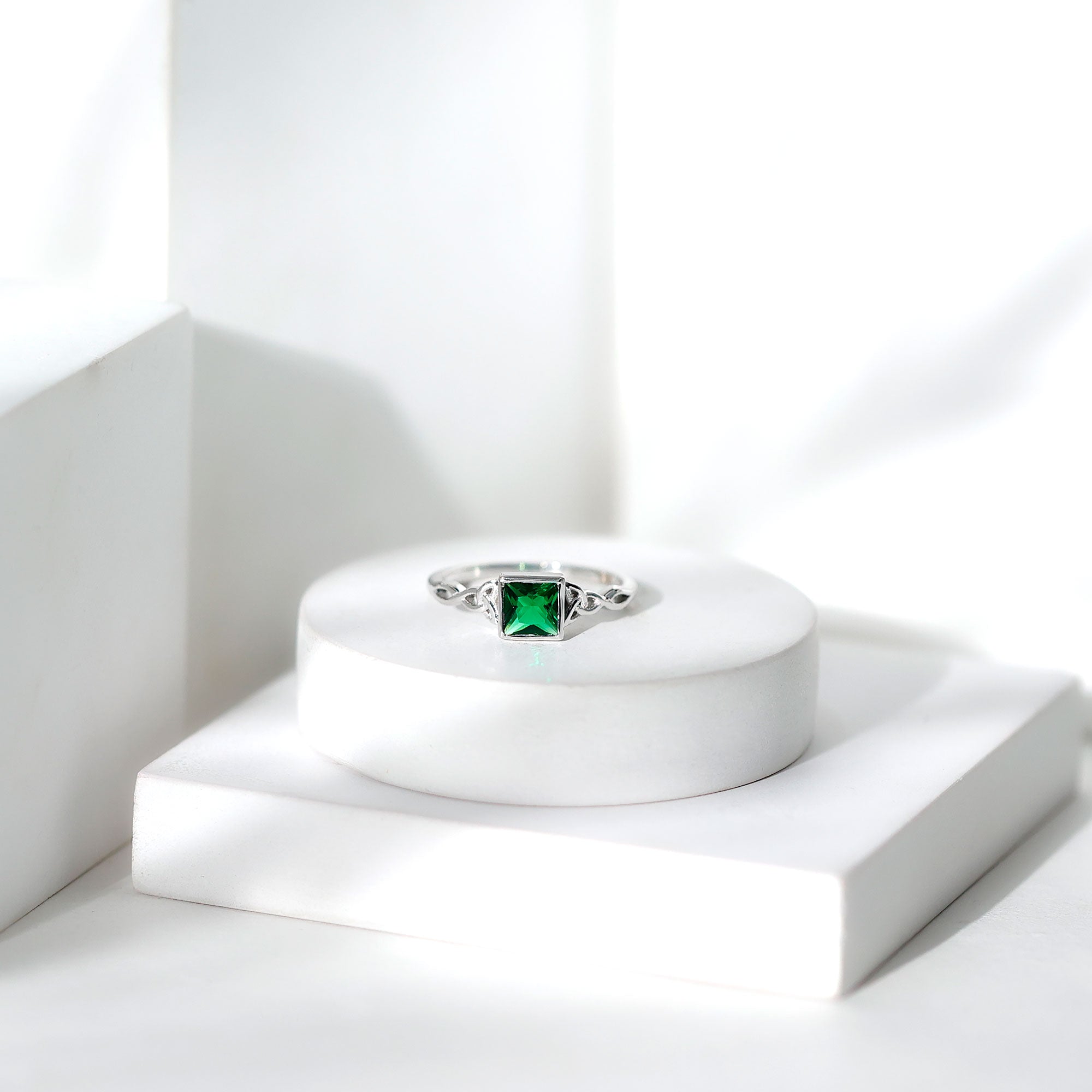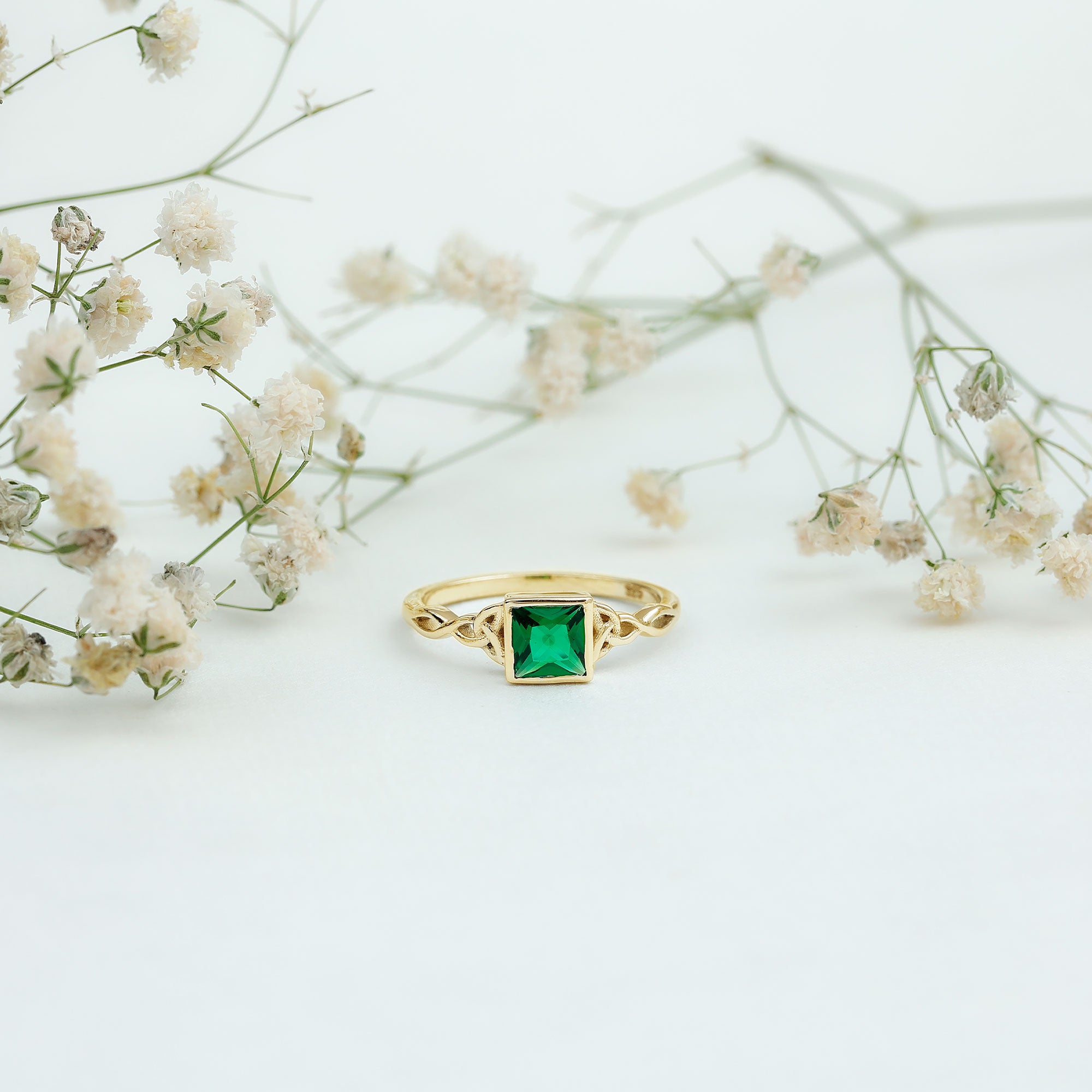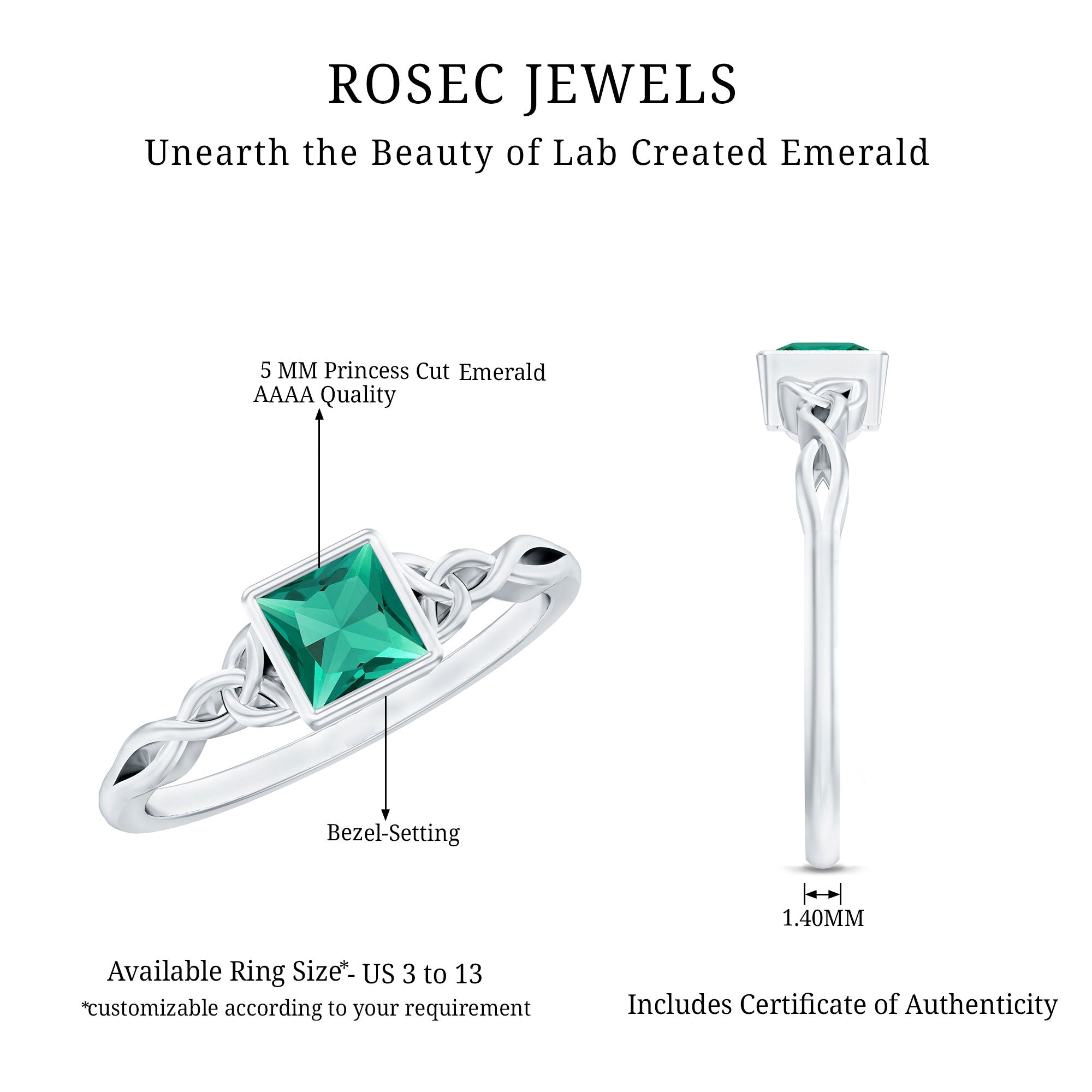 Princess Cut Lab Grown Emerald Solitaire Celtic Ring in Bezel Setting