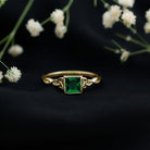Experience the allure of this Princess Cut Lab Grown Emerald Solitaire Celtic Ring, a true masterpiece that captures hearts effortlessly. A brilliant lab-grown emerald, cut with precision into a princess shape secured in a sleek bezel setting. The Celtic-inspired design gracefully wraps around the band, infusing the ring with timeless symbolism of love and unity. Adorn your finger with this captivating piece, perfect for adding a touch of enchantment to any outfit or occasion.