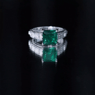 Princess Cut Lab Grown Emerald Solitaire Engagement Ring with Diamond