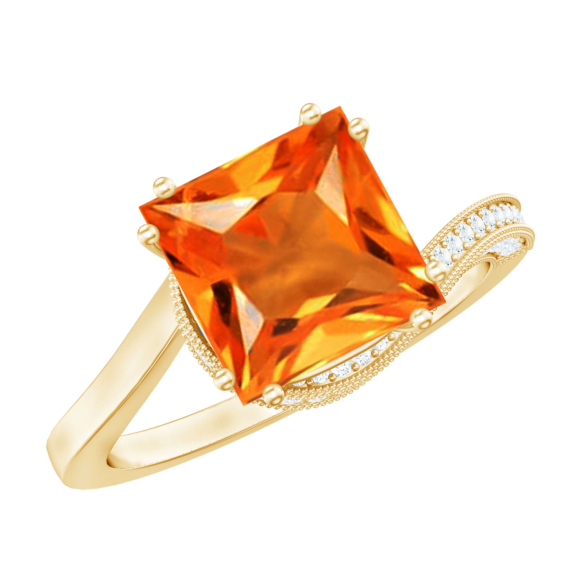 This amazing Bypass Engagement Ring is embellished with a Princess Cut Lab Grown Orange Sapphire secured by Double Prong Setting while Round Shape Diamond studded on the bypass shank, crafted with Solid Metal. Get this Lab Grown Sapphire Ring Set for your loved one as a Birthday Gift or Anniversary Gift as it will add the right touch of sparkle to all her favorite looks.