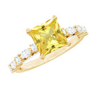 Princess Cut Lab Grown Yellow Sapphire Solitaire Engagement Ring