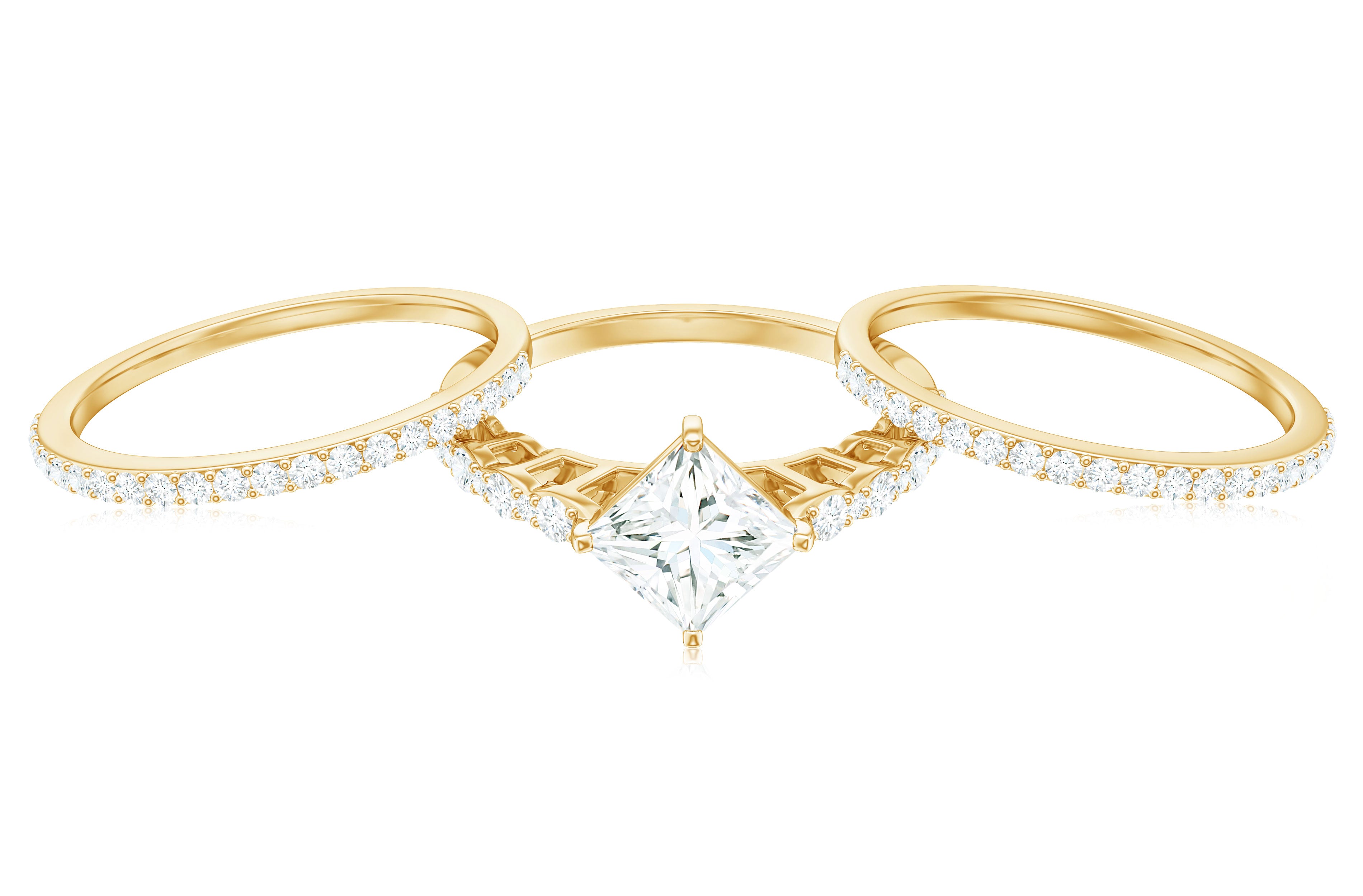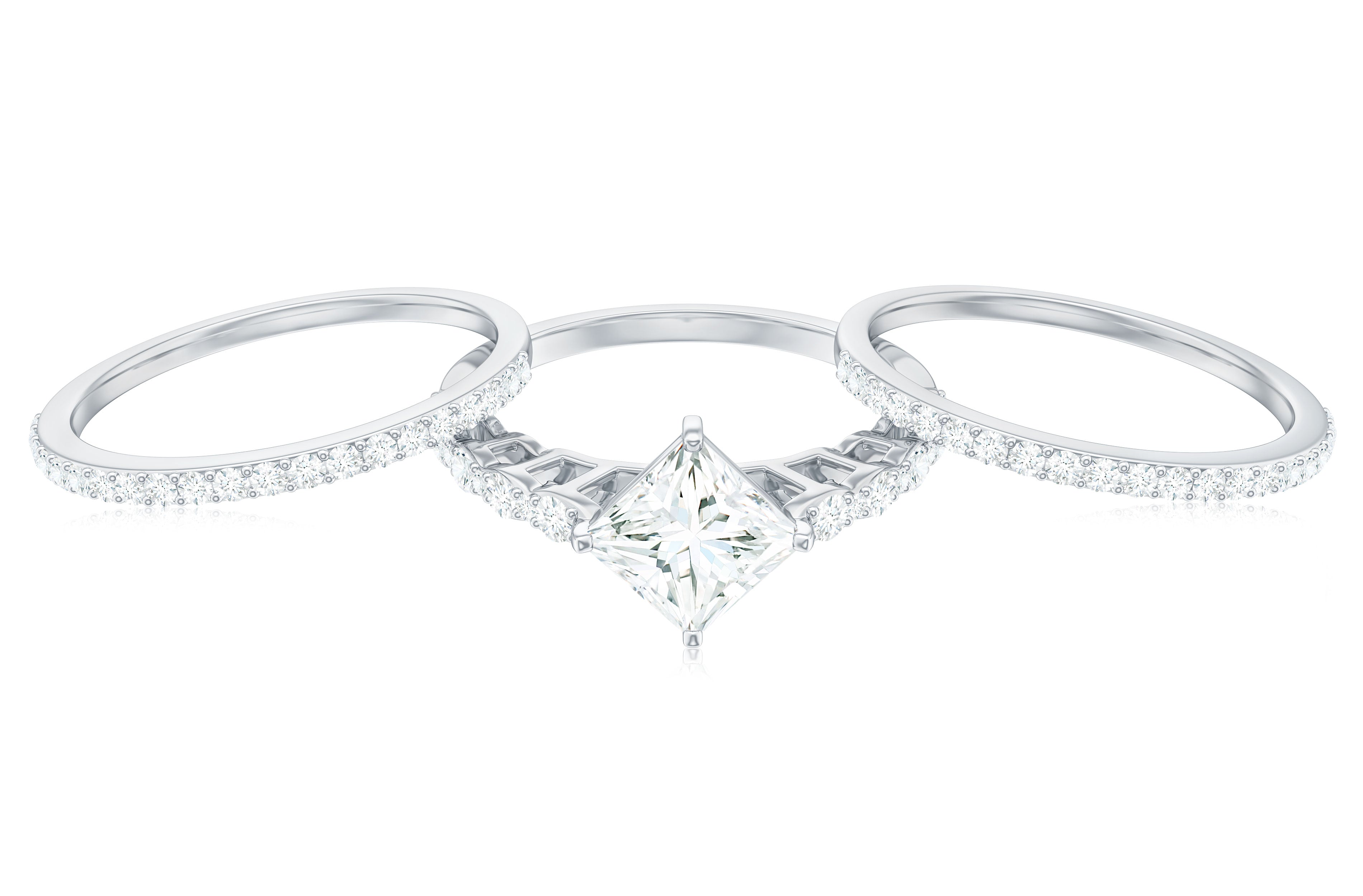 Princess Cut Moissanite 3 Piece Bridal Ring Set