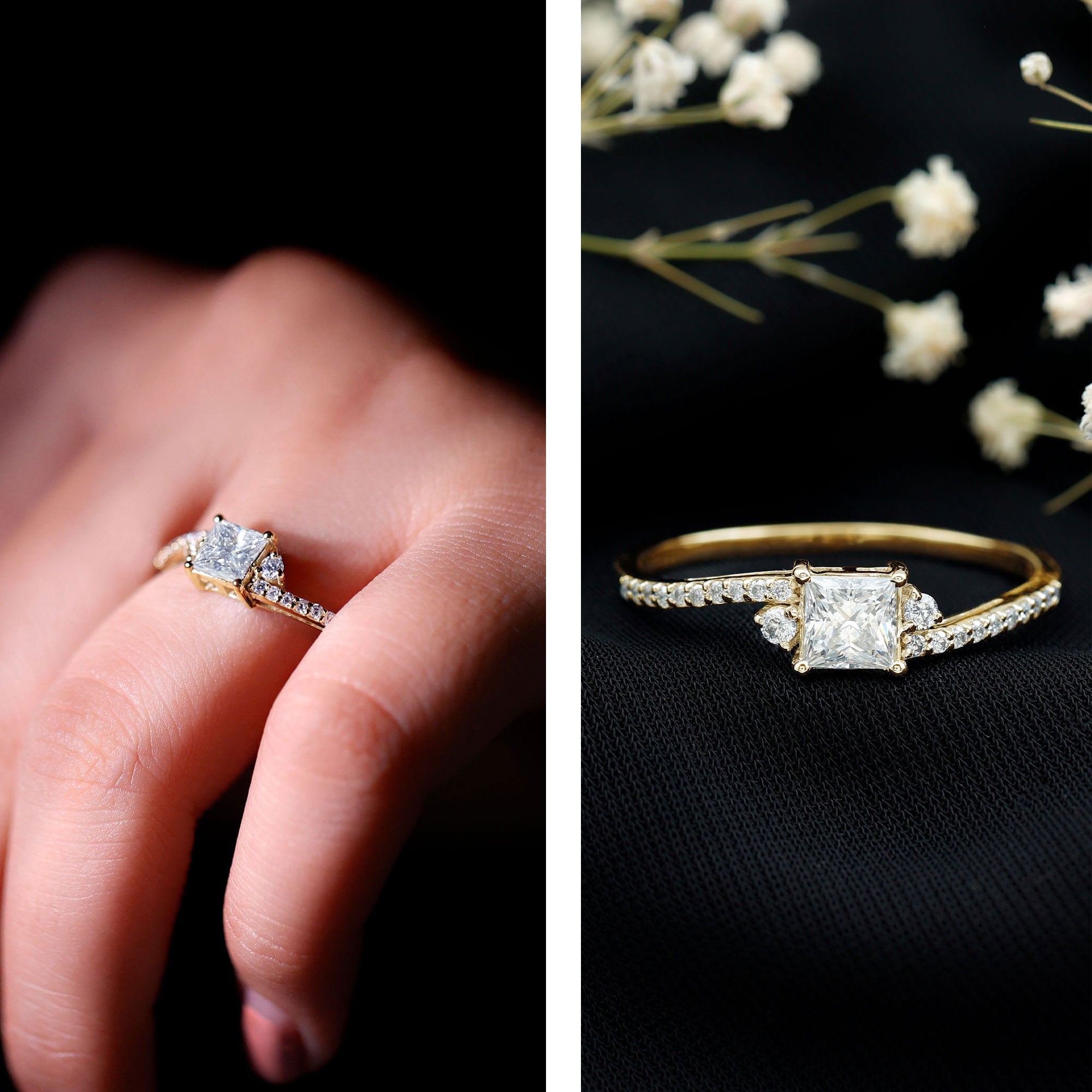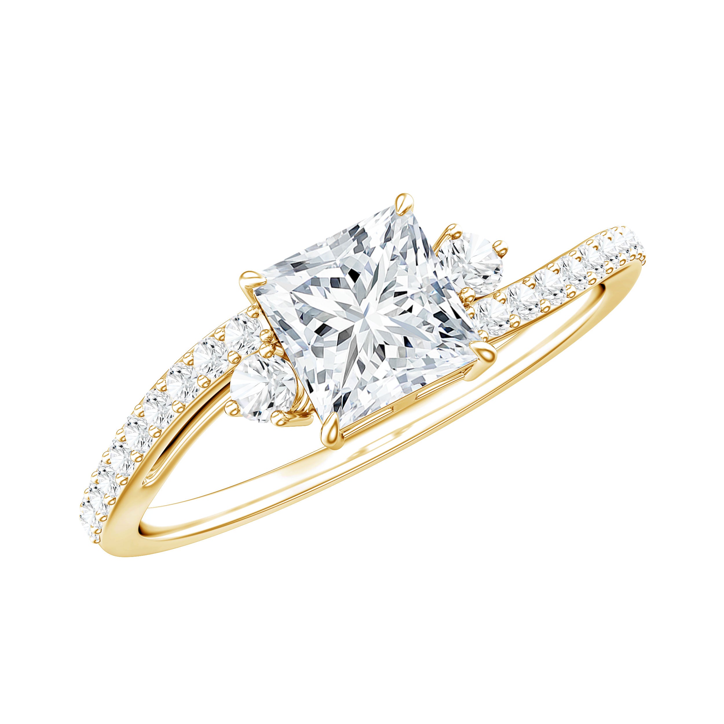 Princess Cut Moissanite Bypass Engagement Ring