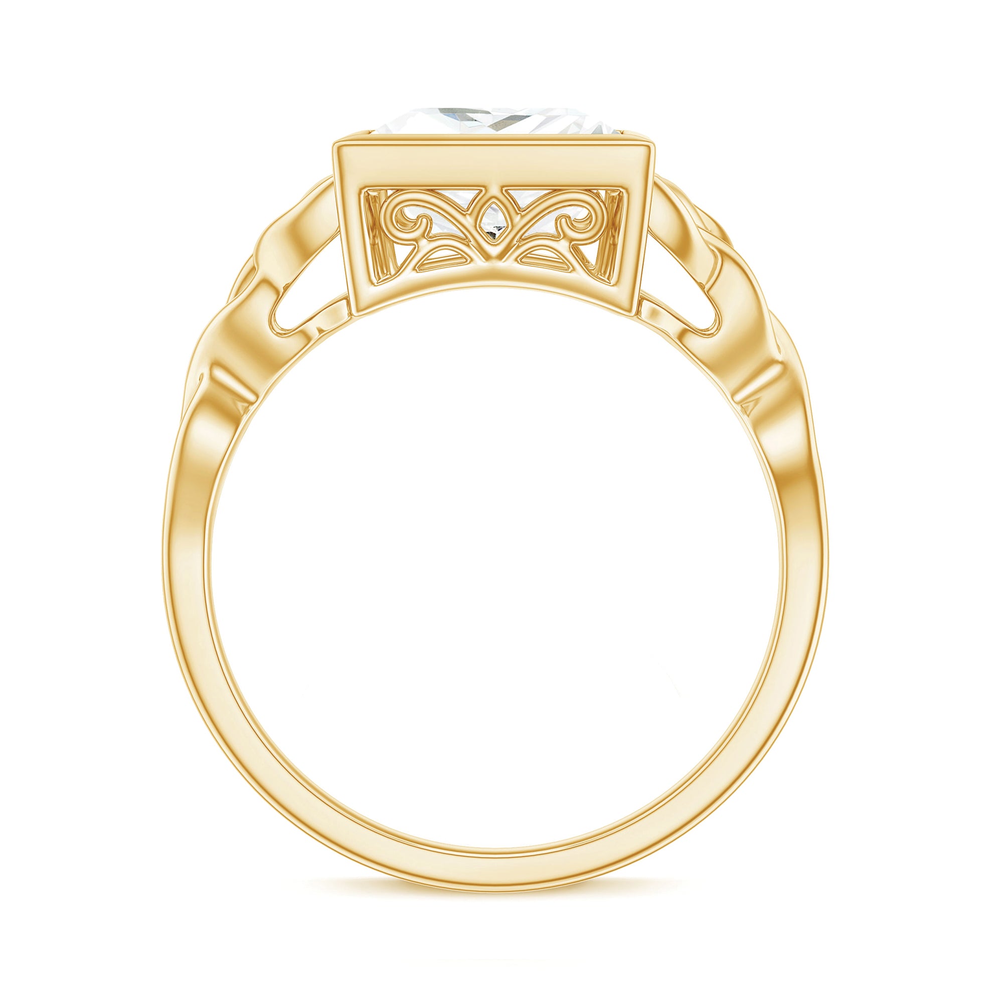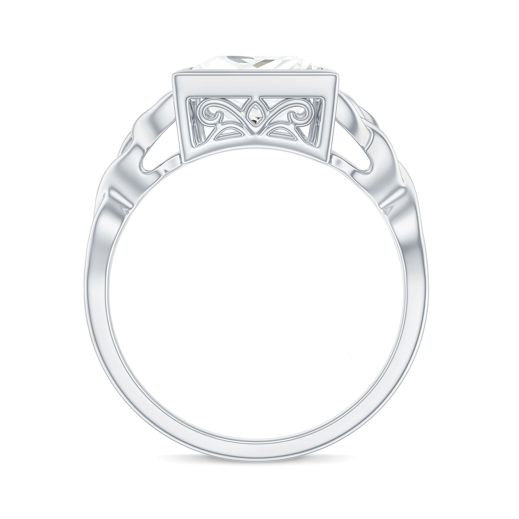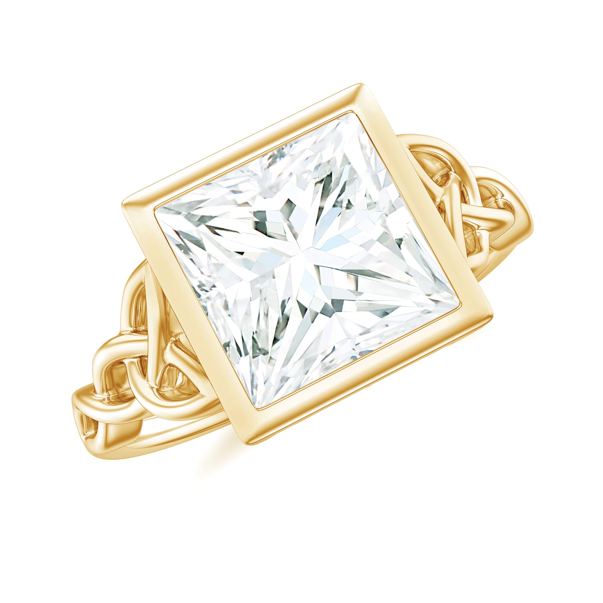 As a classic homage to love, this Princess Cut Moissanite Engagement Ring features a celtic twist that represents an unbreakable connection. Radiating elegance and charm, this beautifully designed Celtic Knot Engagement Ring highlights a stunning centerpiece for a lifelong promise. This Square Engagement Ring showcases an 8 MM princess cut Moissanite set in bezel setting, with celtic knots gracefully reflected on both sides of the main stone. With its intricate and delicate design, this Moissanite Solitaire Engagement Ring symbolizes eternal love. The D Color VS1 Clarity Moissanite sparkles with brilliance, embodying subtle elegance. As a symbol of everlasting affection, this 3 Carat Moissanite Ring features a solitaire style with a trinity band that signifies the unity of two people, while holding profound meaning in a relationship. Rosec Jewels also provides a free ring sizer to ensure the perfect fit, available upon request before the final product is shipped. Simple yet striking, this Princess Cut Engagement Ring offers a wide range of metal choices to choose from.