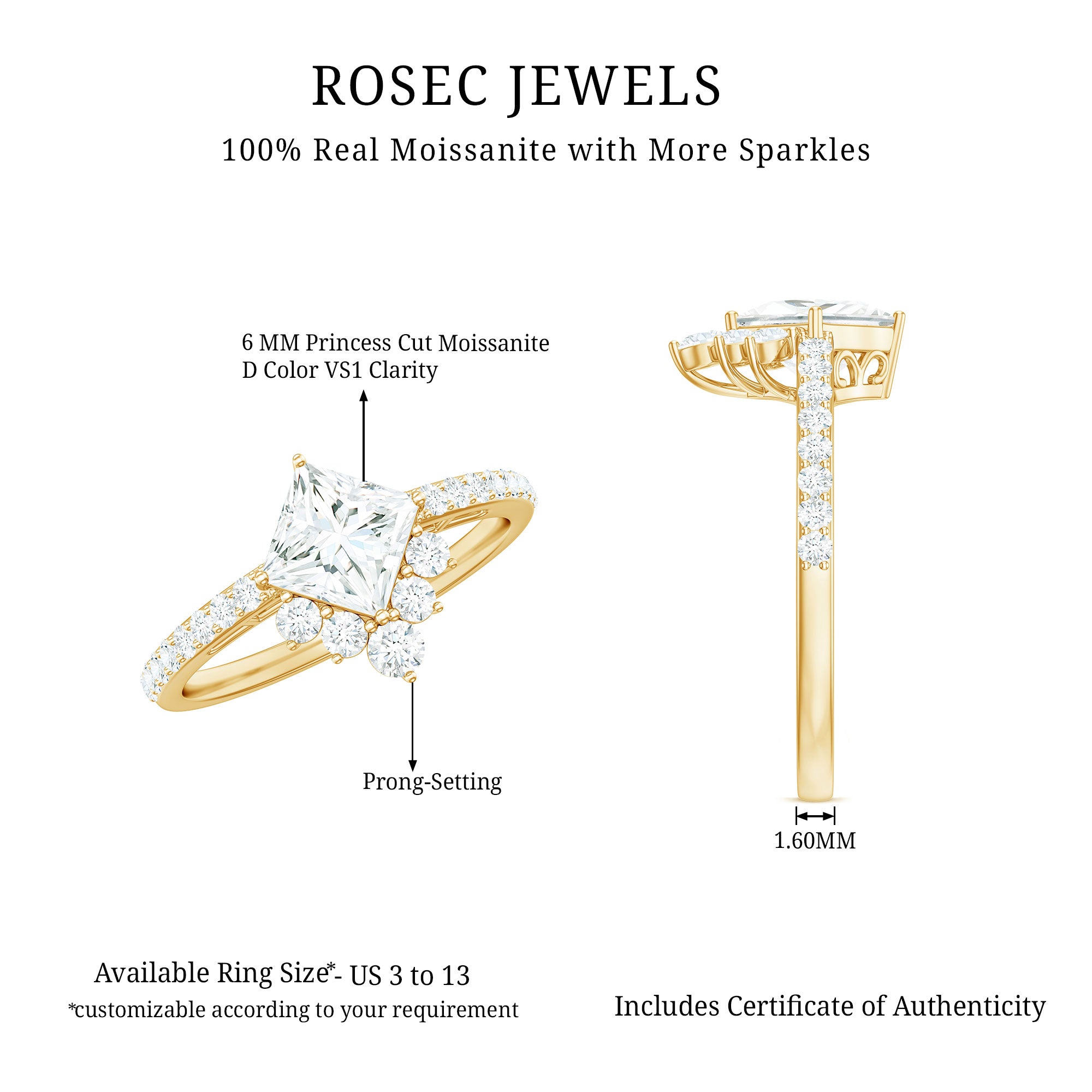 Princess Cut Moissanite Designer Engagement Ring for Women