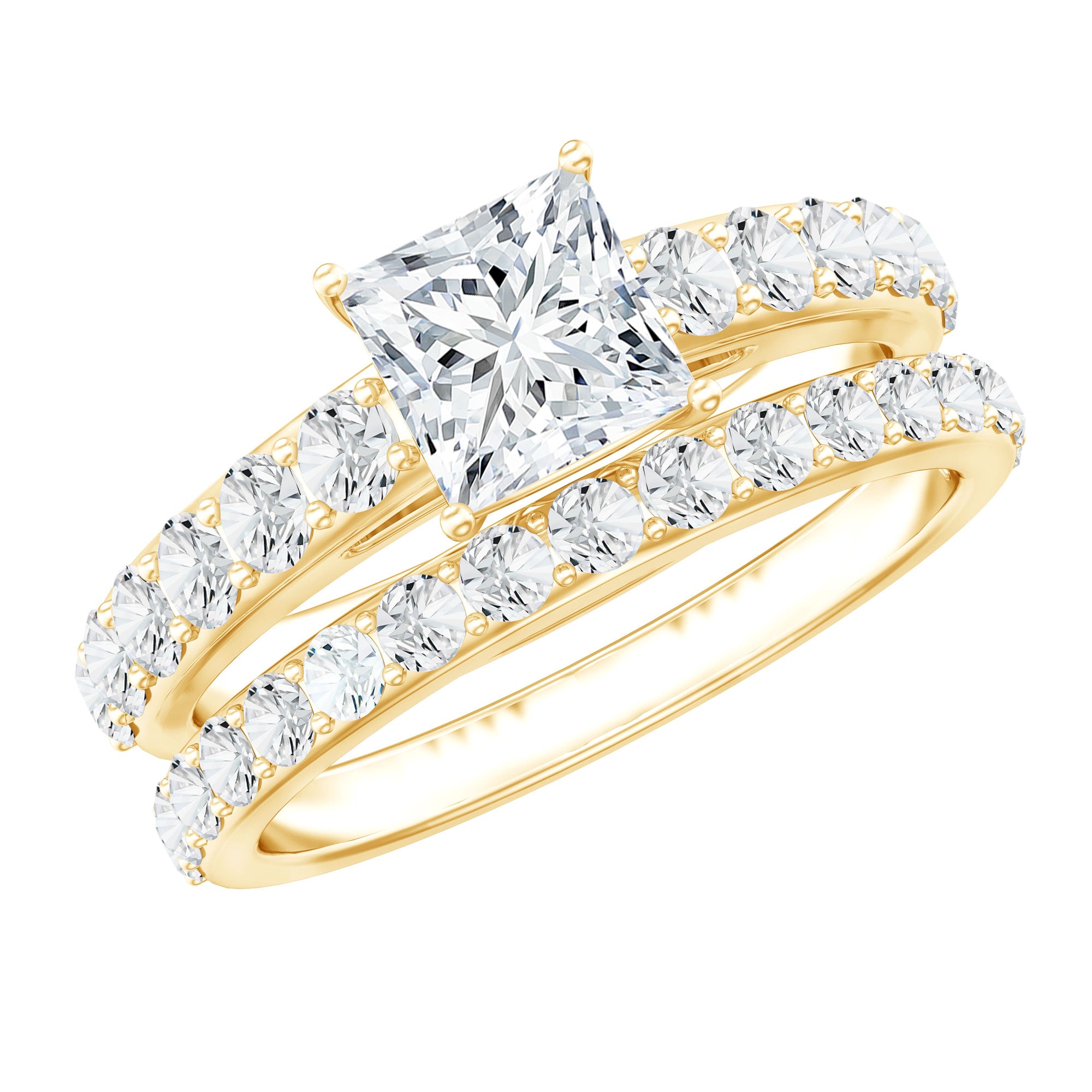 Princess Cut Moissanite Engagement Ring with Wedding Band