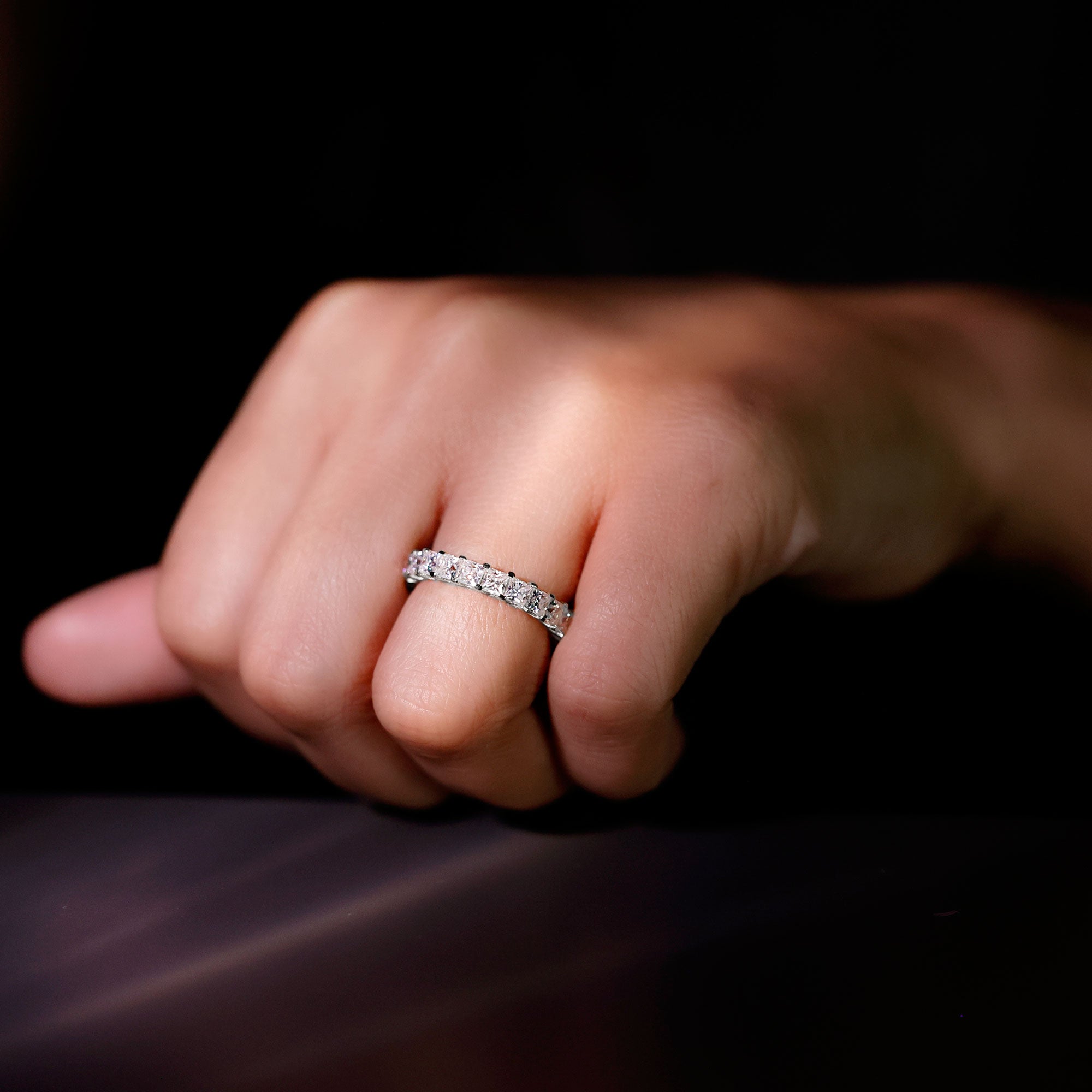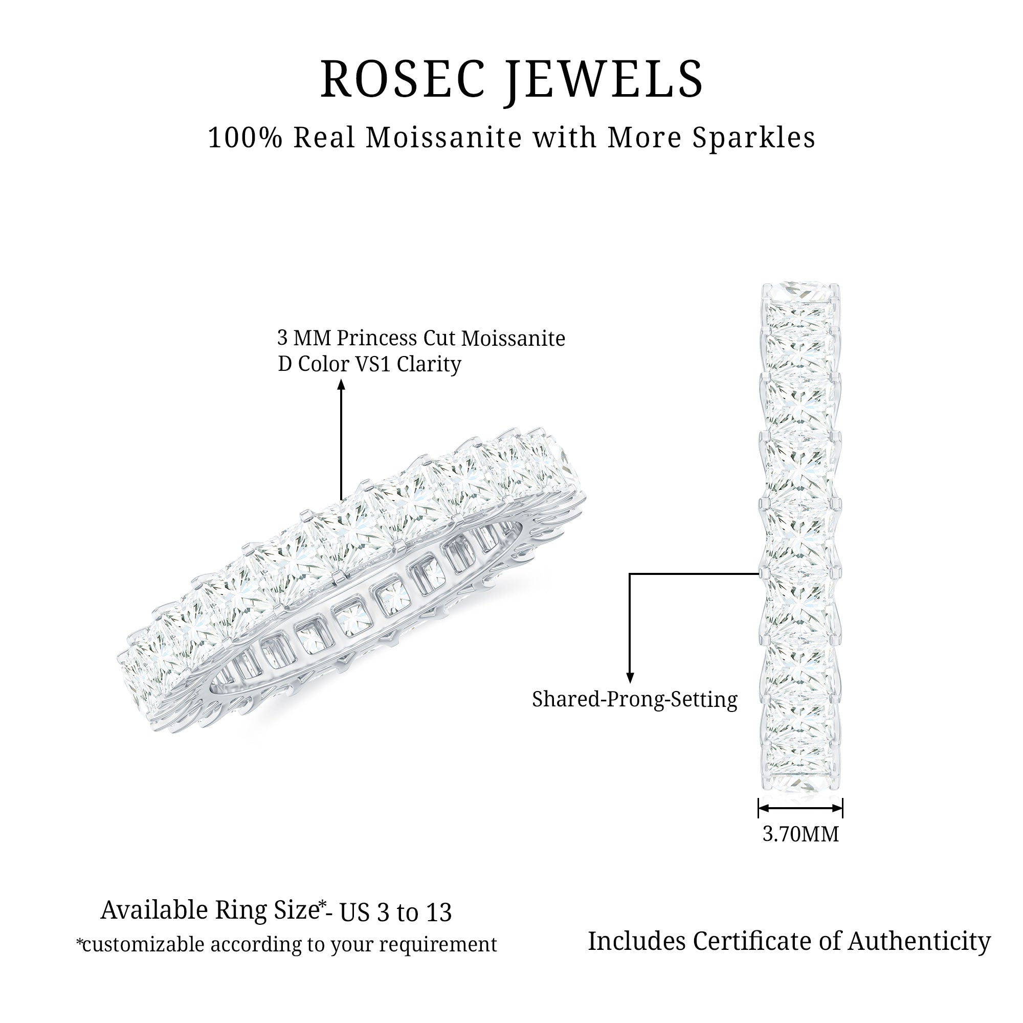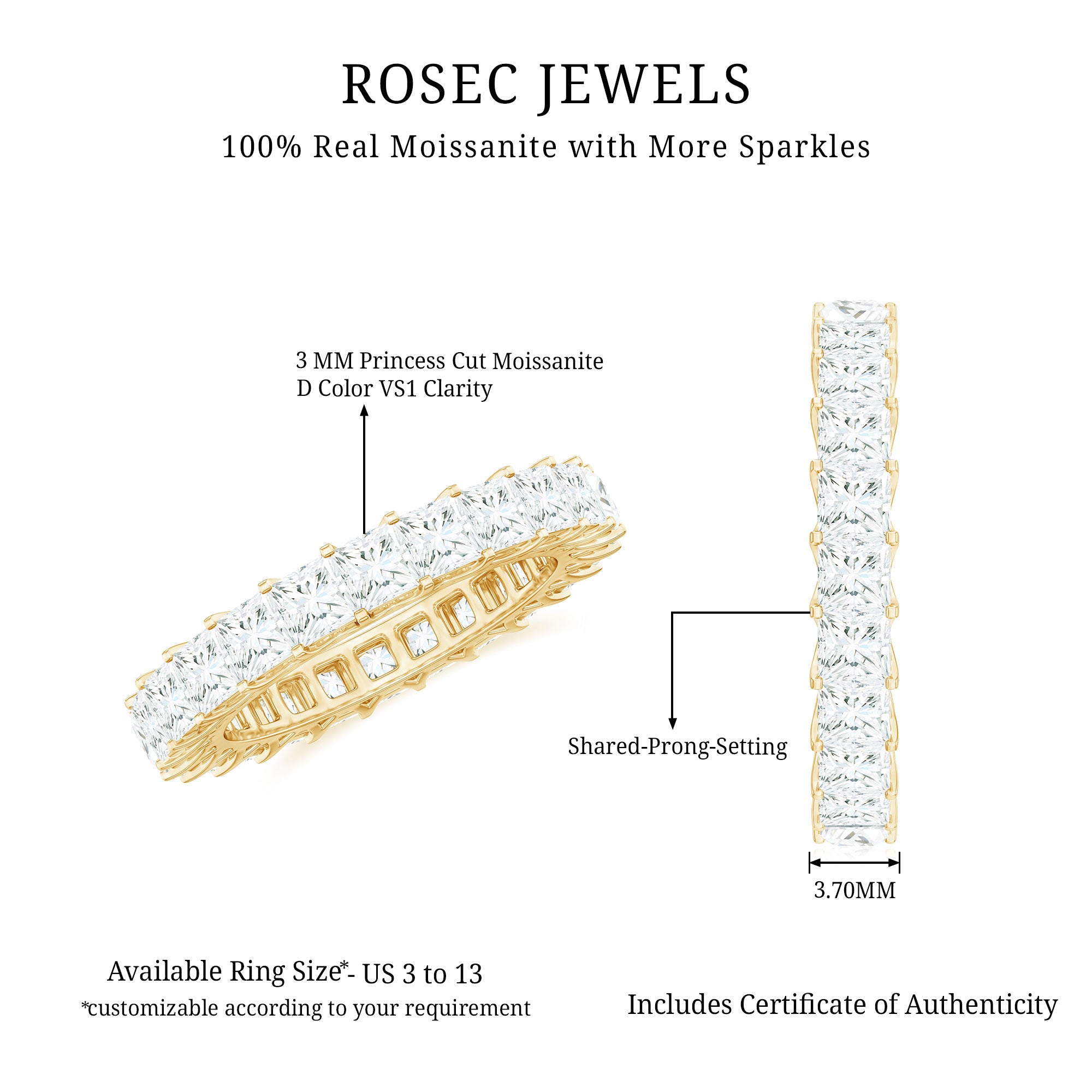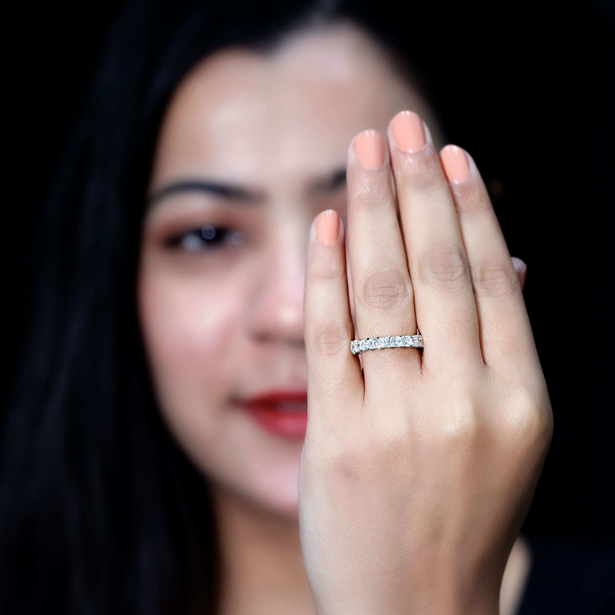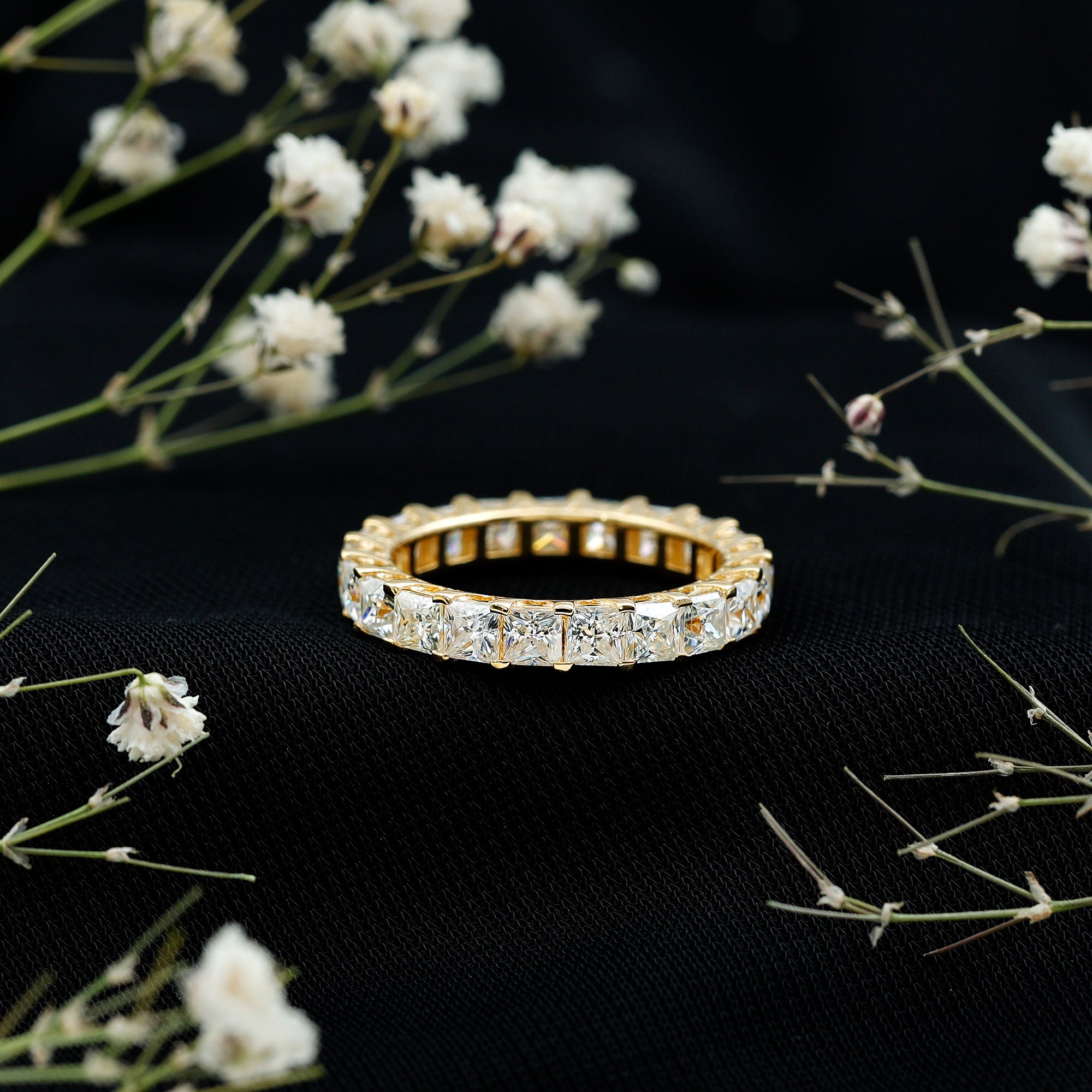Mark your everlasting love with this dazzling Moissanite Eternity Band, a piece designed to bring sparkle and elegance to every moment. Expertly crafted, this Full Eternity Ring features a continuous row of princess cut moissanite stones set in shared prong setting. Its timeless design makes it a perfect symbol of love, commitment, and special memories. This Moissanite Wedding Band is not only stunning on its own but also versatile enough to be stacked with other rings, making it ideal for creating a personalized look. Whether worn as a wedding band, anniversary gift, or a meaningful token of affection, this Moissanite Band Ring is a thoughtful choice that will be cherished for years to come. Its elegant sparkle adds a touch of sophistication to everyday wear while still standing out on special occasions. Made with D-VS1 quality moissanite, this Princess Cut Wedding Band combines beauty with durability, ensuring it remains a treasured piece in any jewelry collection.