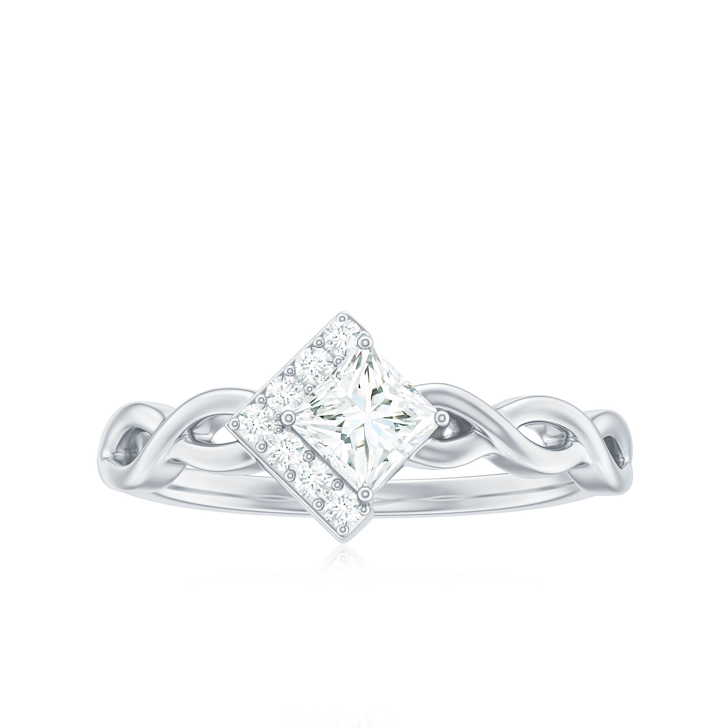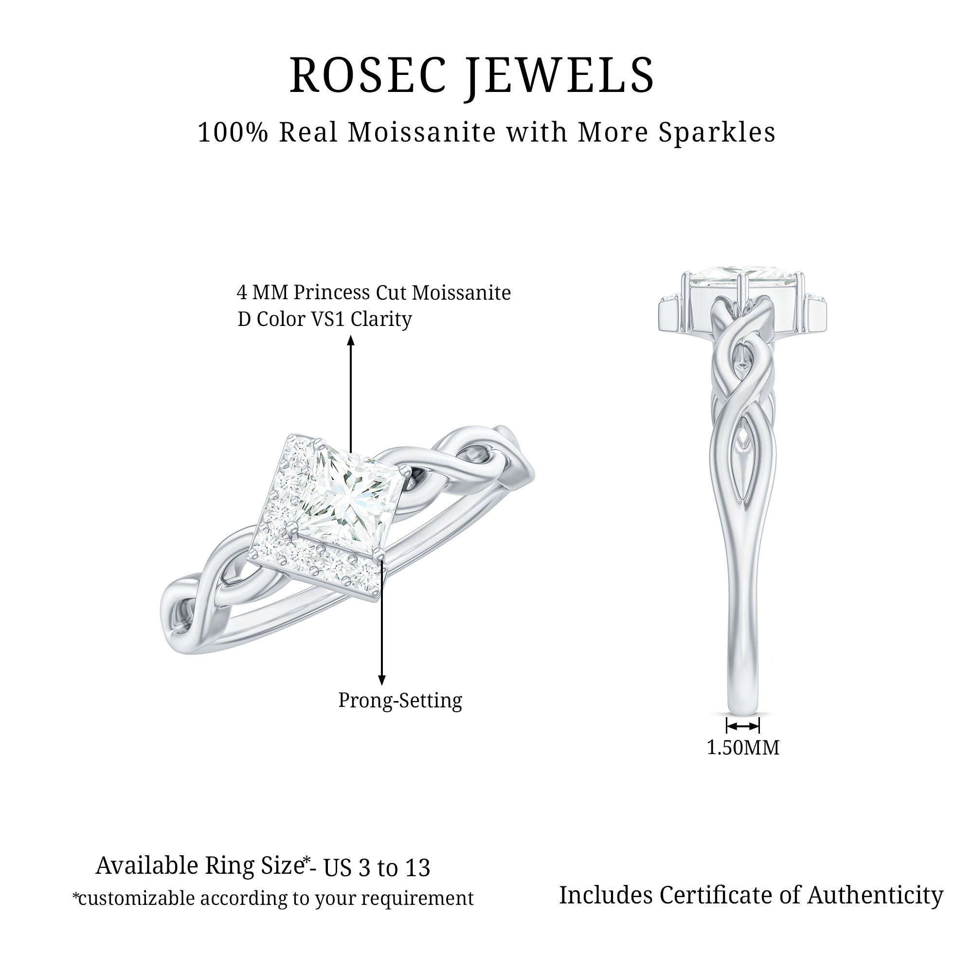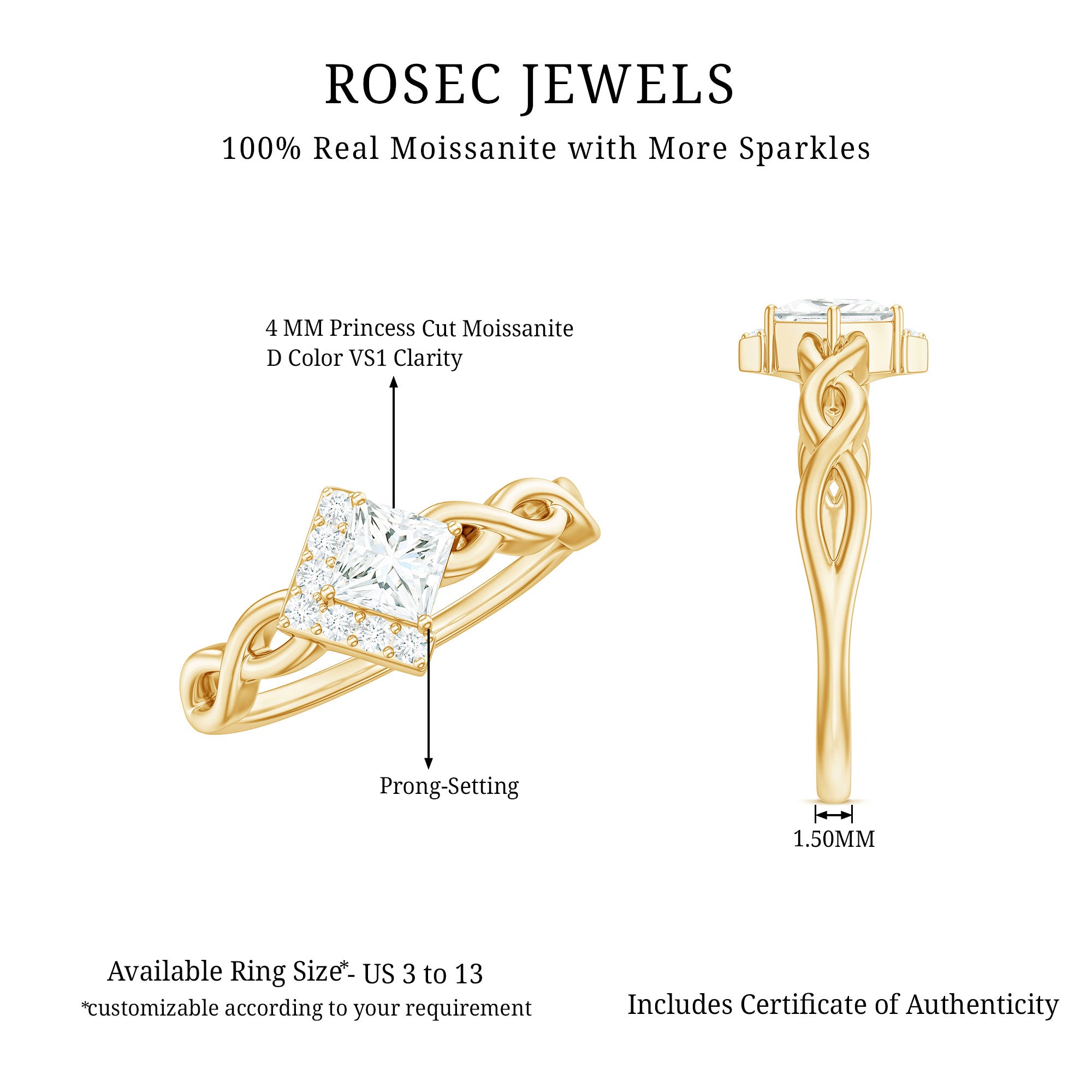 This Infinity Promise Ring is a beautiful way to show your love and commitment. It features a sparkling 4 MM princess cut moissanite set in secure prong setting. The square shaped stone is surrounded by a half halo, adding extra shine right at the center of an elegant infinity style band, a symbol of love that never ends. The D-VS1 quality moissanite stone looks just like a real diamond. It shines brightly and is a more affordable and ethical choice, making this Princess Cut Moissanite Ring perfect for special moments without going over budget. The band’s criss cross design makes this Moissanite Infinity Ring more than just a piece of jewelry, it is a meaningful reminder of the bond you share. Whether you give it as a promise ring, a commitment ring, or even for a small proposal, it is a sweet and thoughtful way to show how much you care. Handcrafted by Rosec Jewels, this Moissanite Promise Ring for Her is made with great care and attention to detail, so you can trust in its quality and beauty. It comes in a lovely jewelry box, ready to gift and sure to make her smile. Simple, elegant, and full of meaning, this Half Halo Ring is something she will treasure always, just like your love.