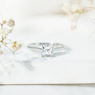 Glistening as a solitary centerpiece, the 6 MM Princess Cut Moissanite gemstone takes its place in a prong setting on this Solitaire Ring, creating a mesmerizing adornment. Elevate her style and grace her hand with this exquisite Moissanite Engagement Ring. The D-VS1 quality center stone sparkles brilliantly with every movement, making it the centerpiece of the Square Engagement Ring. A thoughtful touch is the peek-a-boo moissanite hidden beneath the center stone, providing a delicate surprise. This Princess Cut Engagement Ring is beautifully packaged, ready to mark one of life’s most memorable moments. Whether worn alone or alongside a wedding band, it represents lasting commitment and shared dreams. This 1 Carat Moissanite Ring is more than just jewelry, it is a shining symbol of your journey together, crafted to shine as brightly as your love for many years ahead. With a variety of ring sizes, metal options, and finishes available, it can be customized to reflect your individual style.
