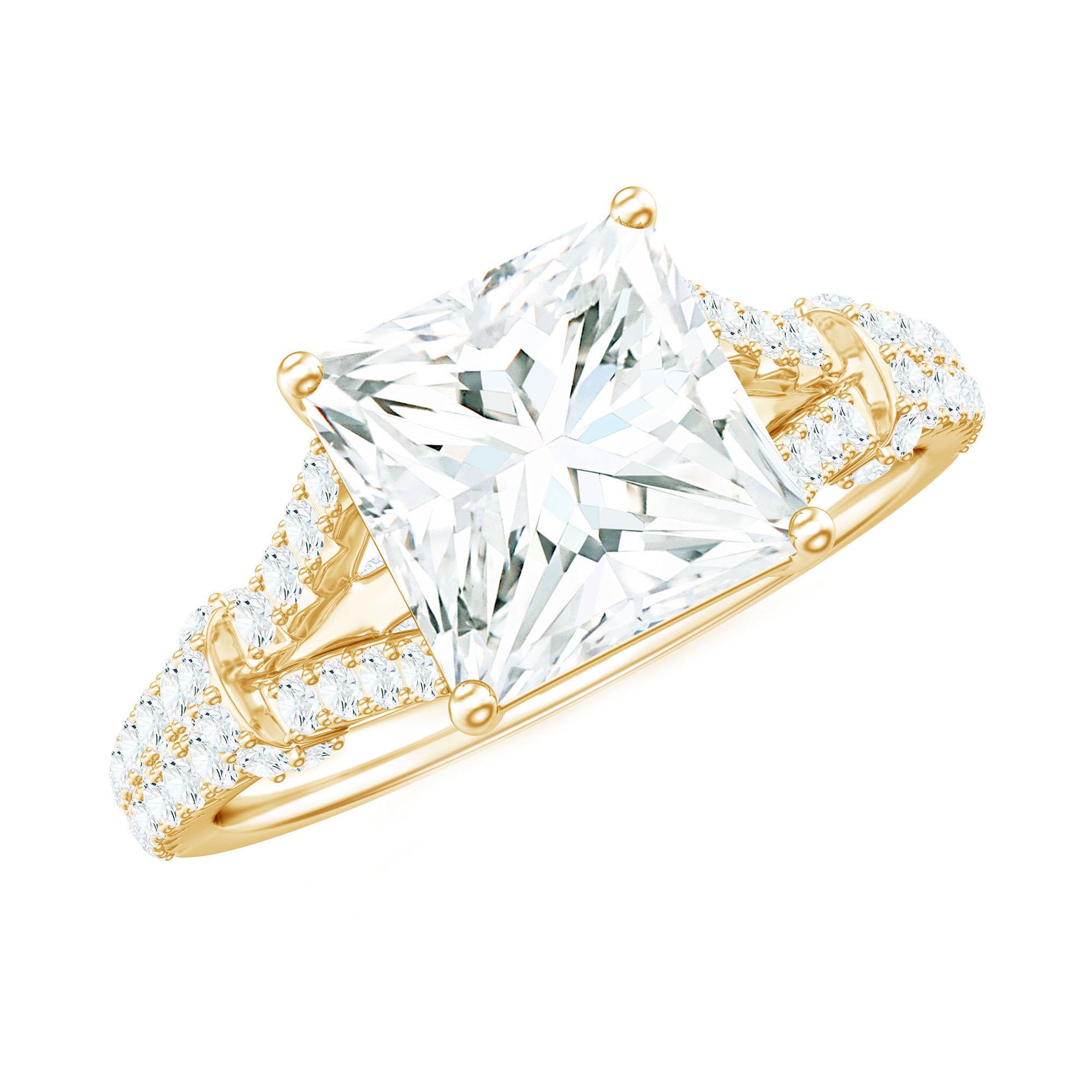 Princess Cut Moissanite Solitaire Engagement Ring in Split Shank