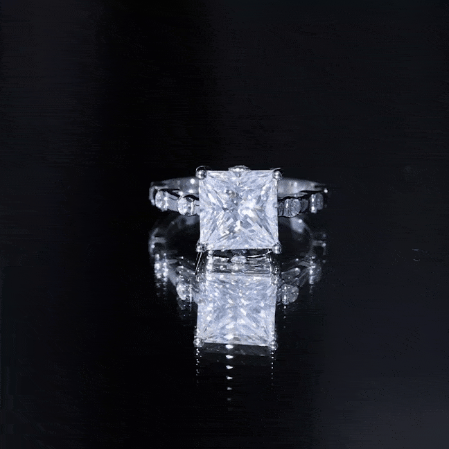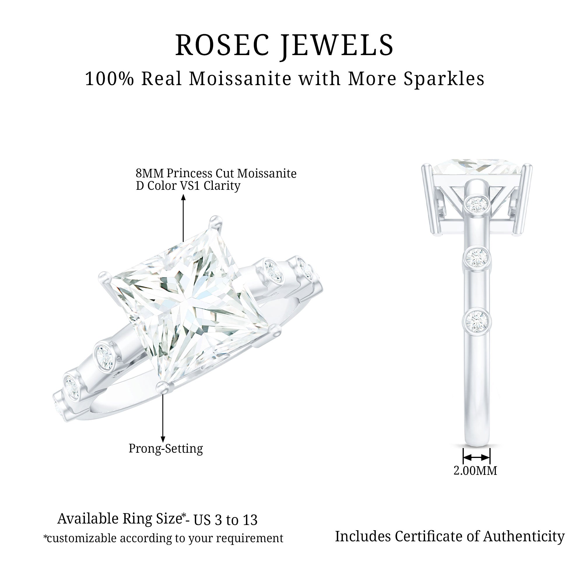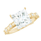 Princess Cut Moissanite Solitaire Engagement Ring with Spaced Accent