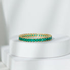 Celebrate life’s special moments with this beautiful Emerald Eternity Band, a ring that perfectly blends timeless style with meaningful elegance. Designed with care, this Stackable Eternity Ring features a continuous circle of princess cut emeralds, each one carefully set in secure shared-prong setting. The stones form an unbroken line of rich green sparkle around the band, symbolizing lasting love and endless connection. The vibrant color of the emeralds adds a touch of natural beauty, while the smooth and polished finish gives the Princess Cut Wedding Band a refined and graceful look. Its lightweight design ensures a comfortable fit, making it easy to wear every day or for special occasions. Perfect for weddings, anniversaries, or milestones, this Emerald Wedding Band serves as a lasting reminder of moments worth treasuring. It can be worn alone for a simple and elegant statement or stacked with other rings to create a more personalized and stylish combination. Crafted with AAA quality emeralds, each gemstone shines with depth and brilliance, reflecting expert craftsmanship and attention to detail. With its timeless charm and elegant design, the Emerald Stackable Band is a celebration of love, commitment, and cherished memories that will shine for years to come.