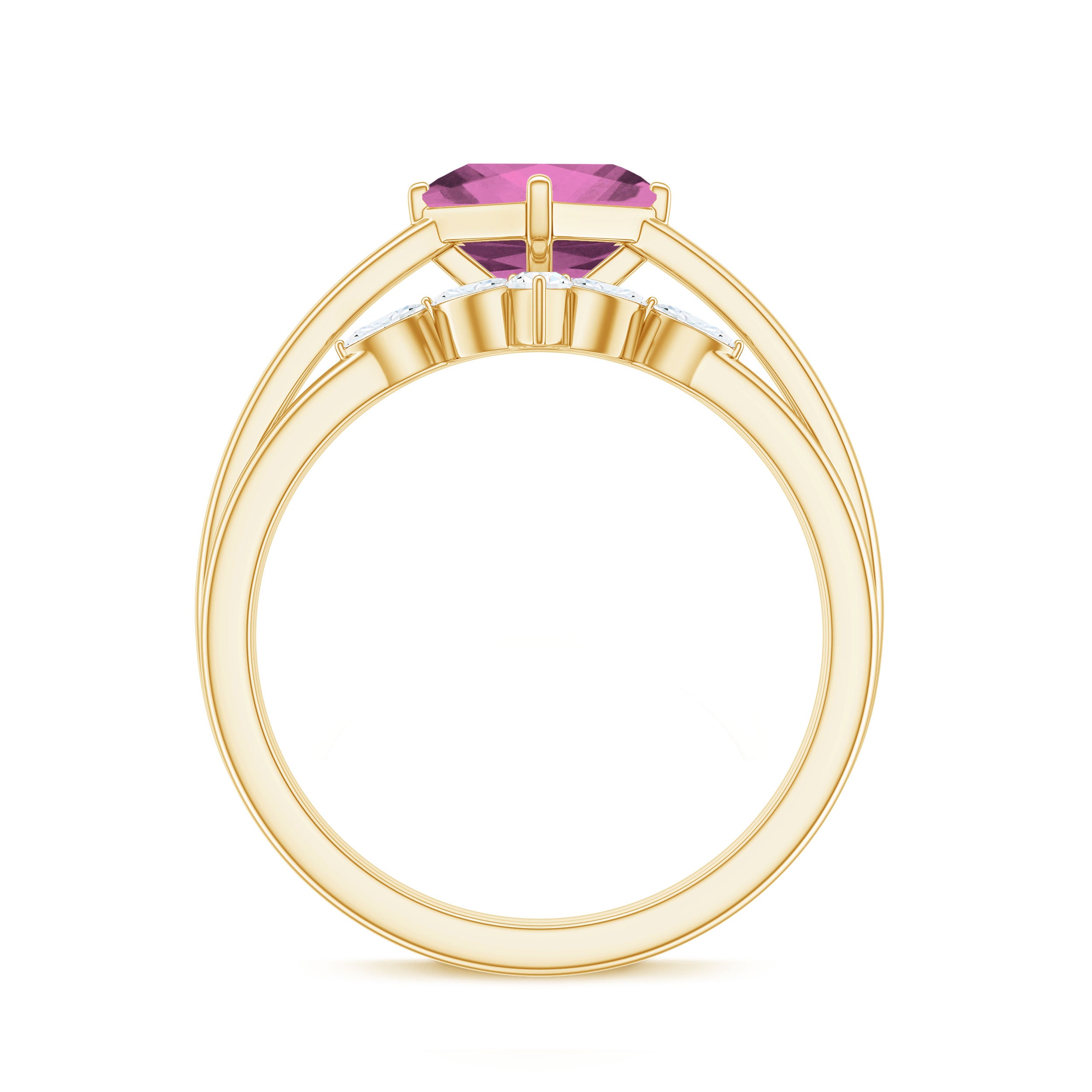 Princess Cut Pink Tourmaline Solitaire Ring Set with Diamond
