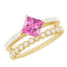 Princess Cut Pink Tourmaline Wedding Ring Set with Moissanite