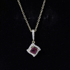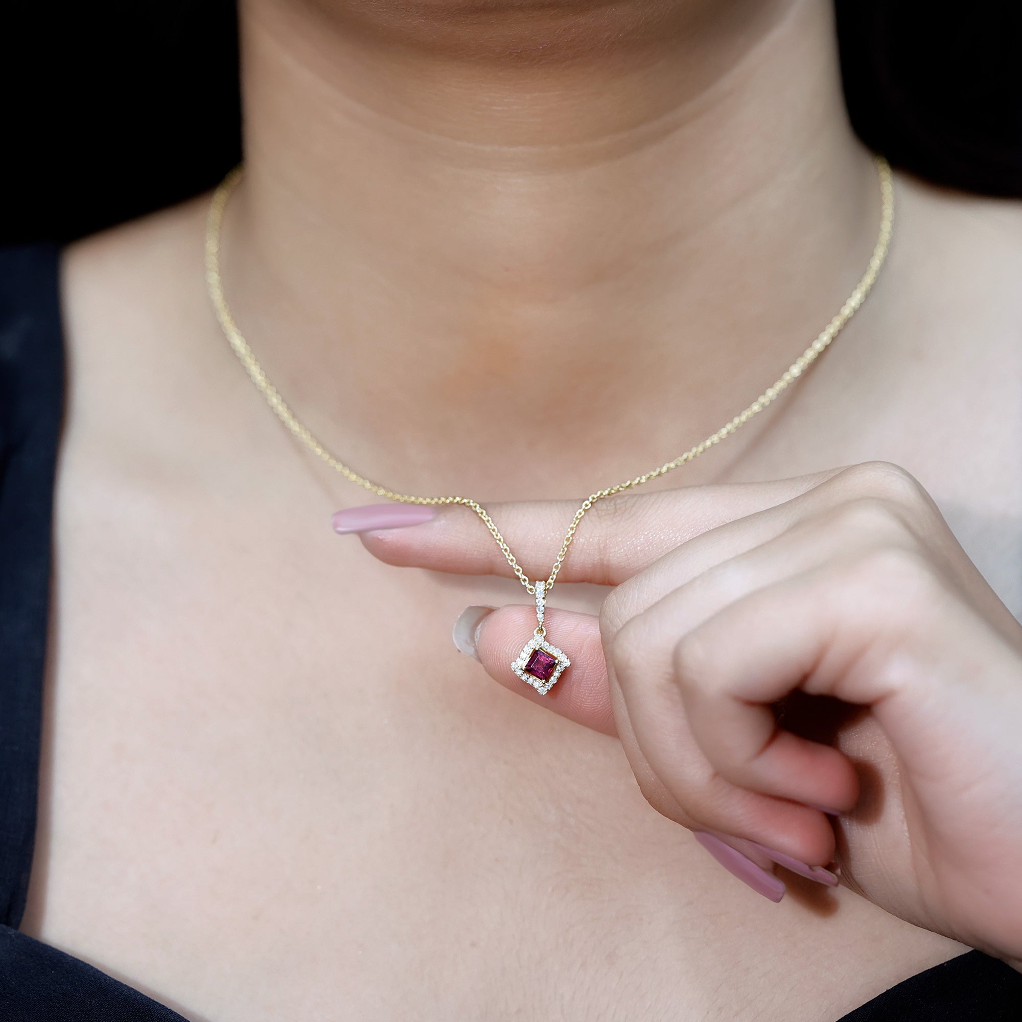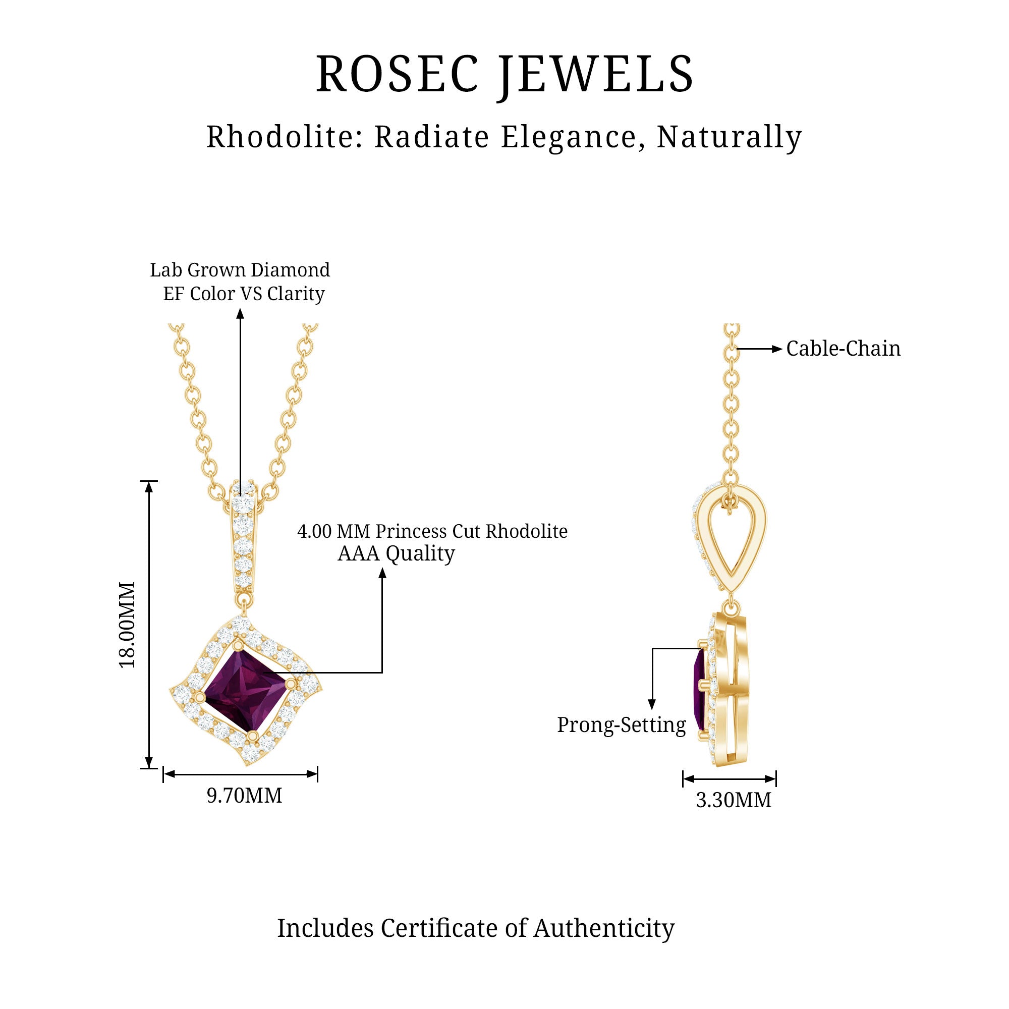 Princess Cut Rhodolite and Diamond Halo Pendant Necklace