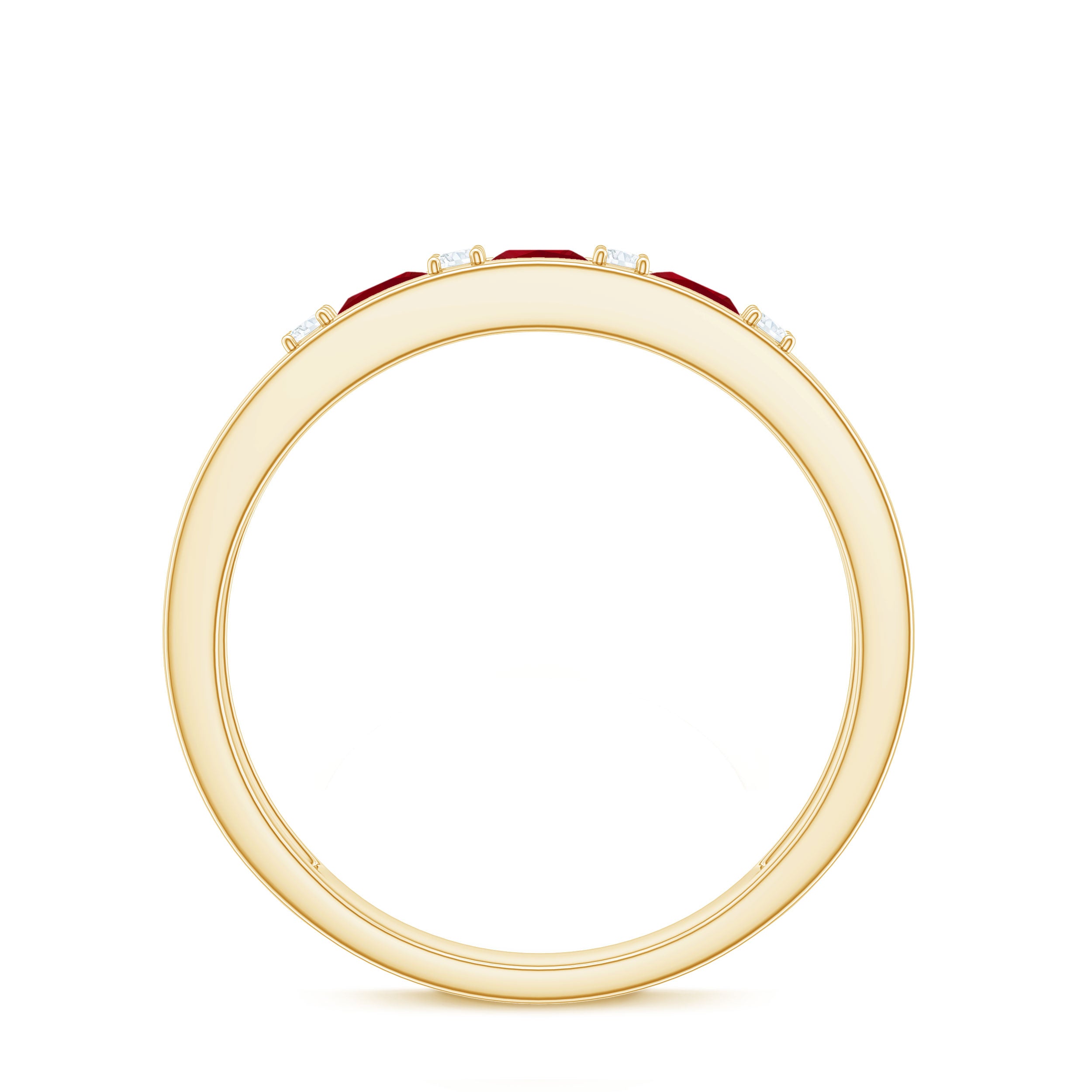 Experience regal beauty with this Band Ring adorned with Princess Cut Ruby and Diamond gemstones. A stunning display of elegance fit for a queen.