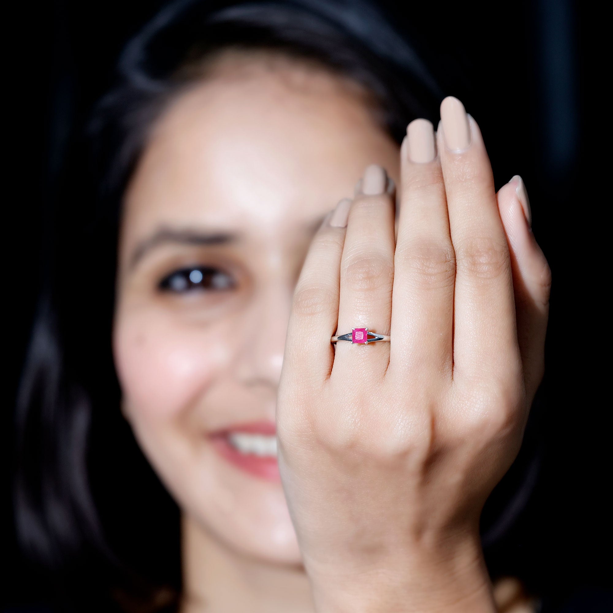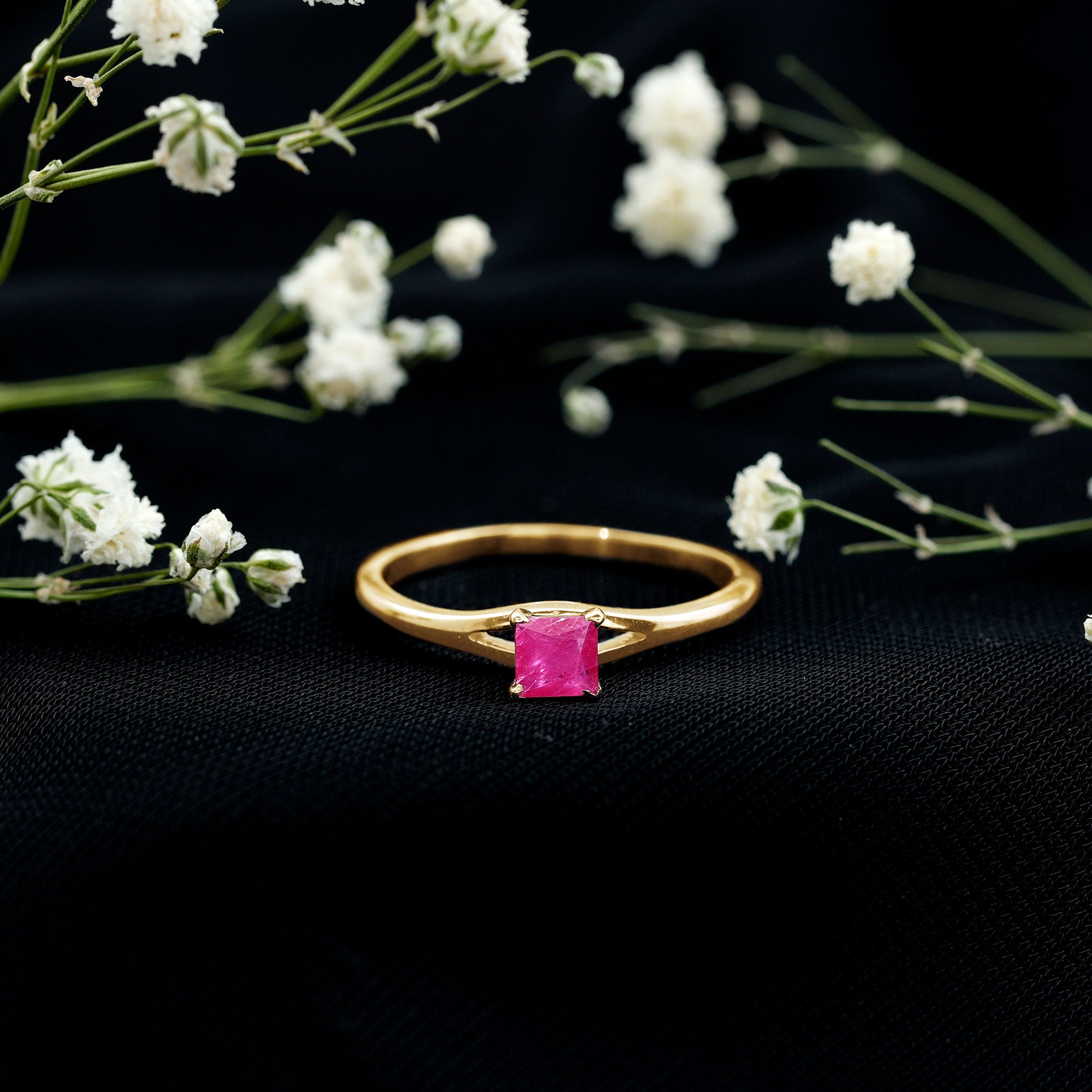 Princess Cut Ruby Solitaire Ring in Split Shank