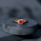 Princess Cut Ruby Solitaire Ring with Celtic Detail