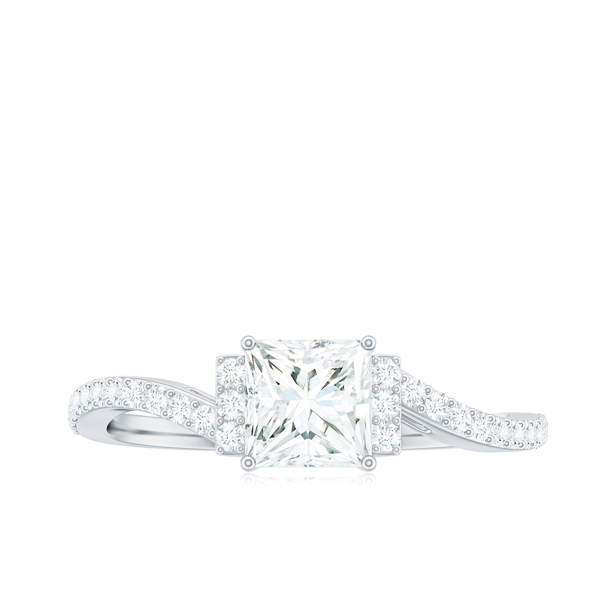 Princess Cut Moissanite Bypass Engagement Ring for Women