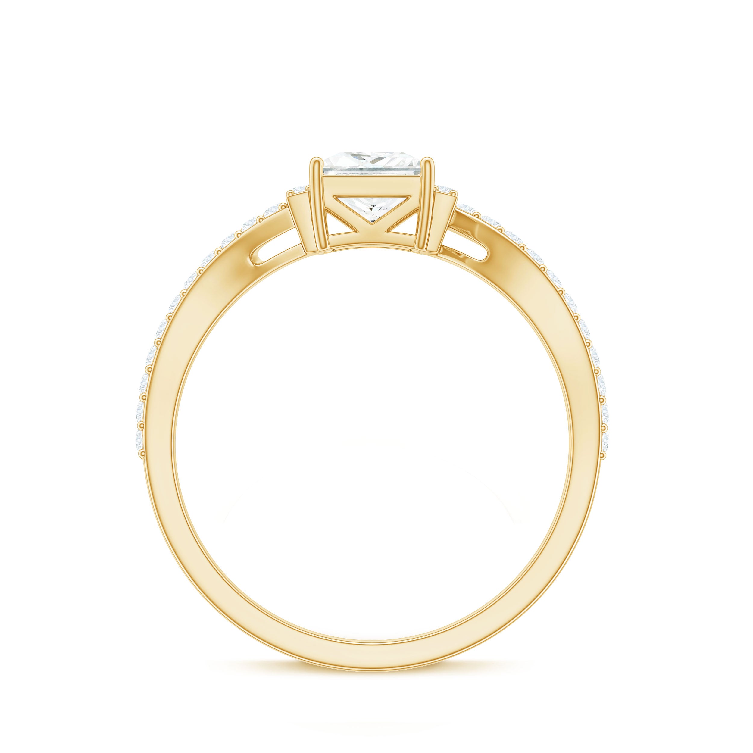 Timeless and chic, this Moissanite Engagement Ring perfectly embodies love and individuality. With a stunning 5 MM princess cut moissanite securely held in prong setting, it reflects light from every angle, creating a sparkle as bright as your smile. Made with D-VS1 quality moissanite, known for its incredible fire and clarity, each facet shines brilliantly, symbolizing a commitment made with both beauty and conscience. The sleek bypass shank, embellished with delicate moissanite accents, brings a modern touch and signifies two lives beautifully intertwining to move forward as one. This Bypass Engagement Ring is more than just jewelry, it celebrates connection and chemistry, crafted to honor your unique love story. Presented in a classy signature jewelry box and available in various sizes, this Half Carat Moissanite Ring for Women is designed to fit perfectly and make your special moment unforgettable. Its striking design ignites conversations and adds a sprinkle of magic to any proposal or milestone celebration.