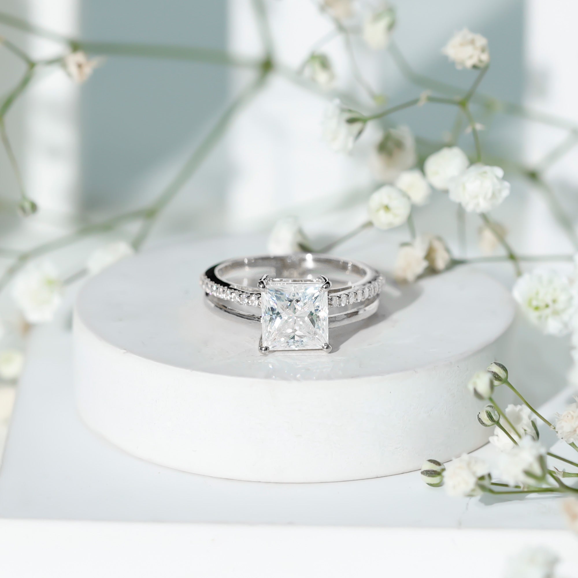 Princess Cut Solitaire Moissanite Double Band Engagement Ring