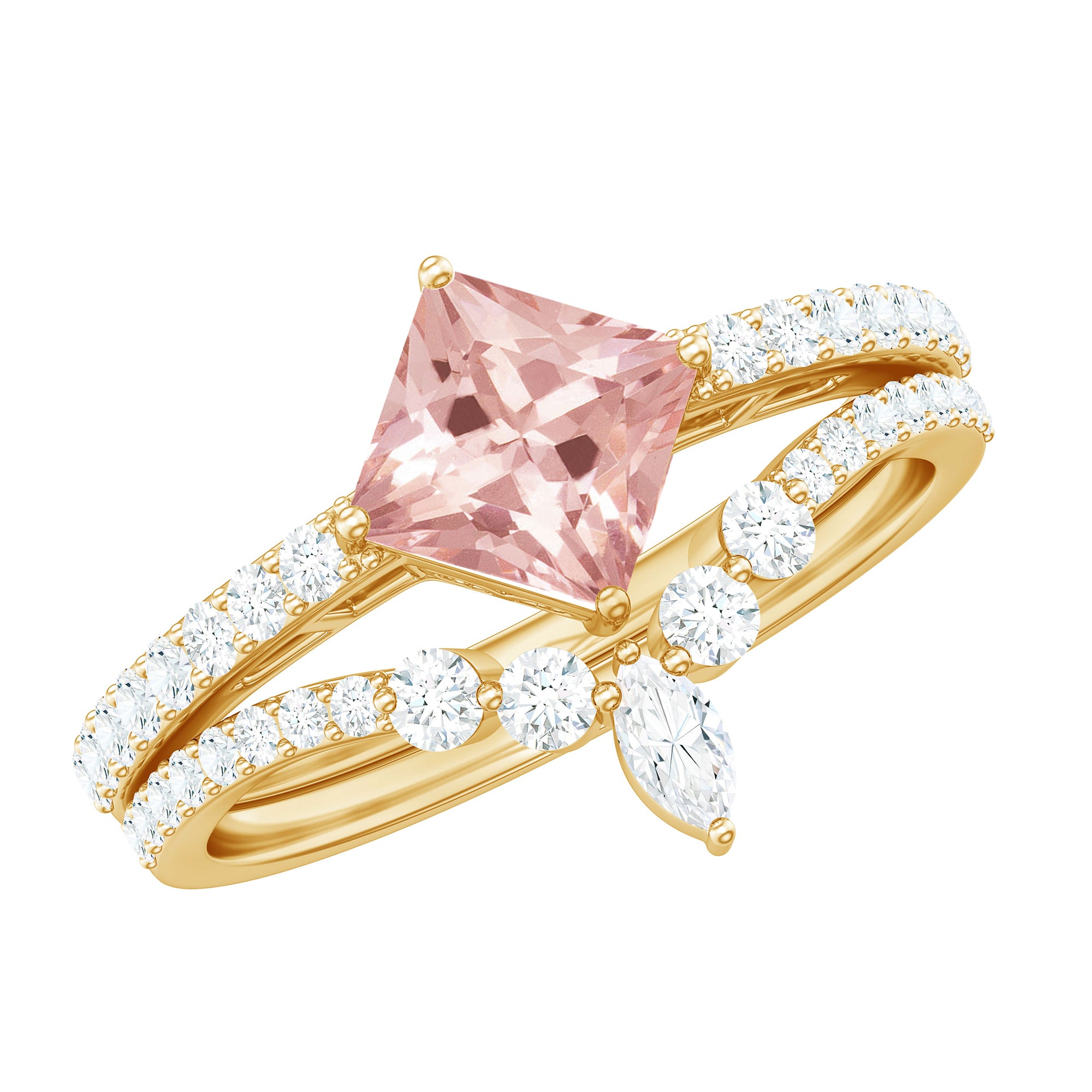 Princess Cut Solitaire Morganite Designer Ring Set with Diamond