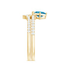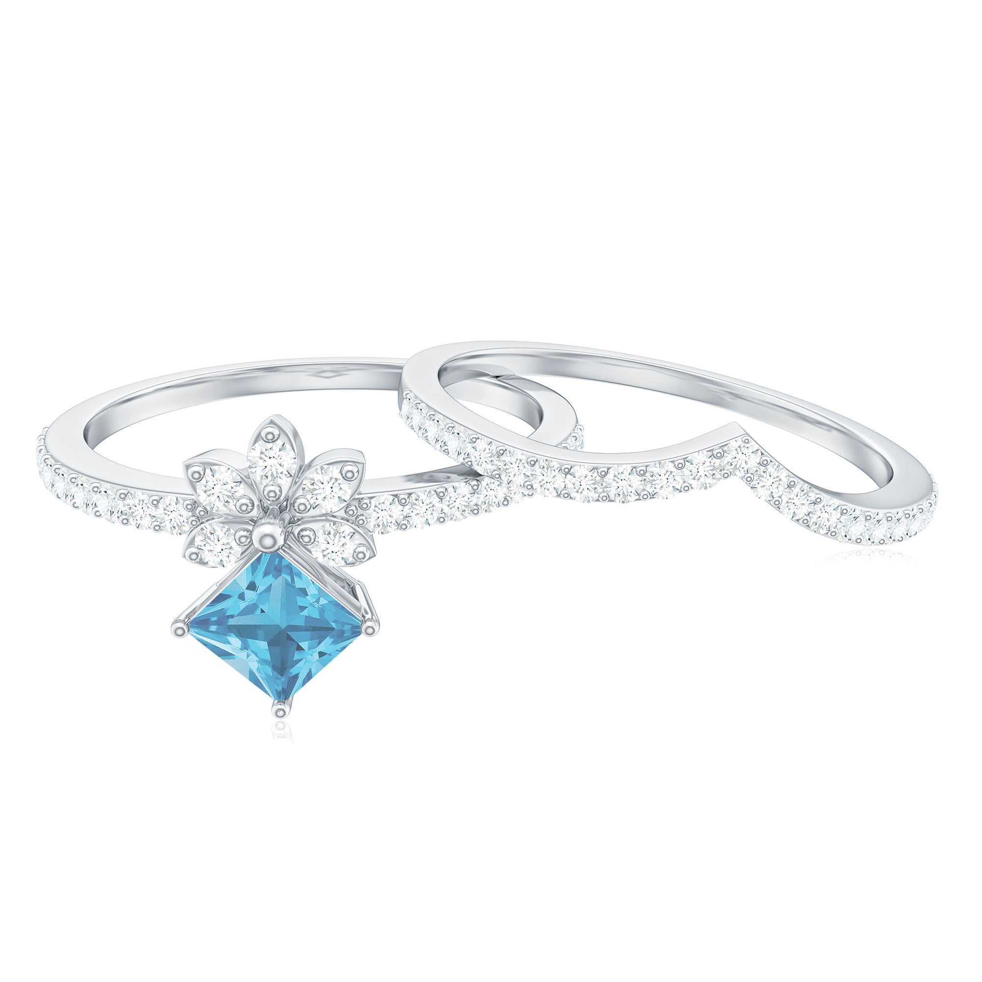 Princess Cut Swiss Blue Topaz and Diamond Flower Ring Set