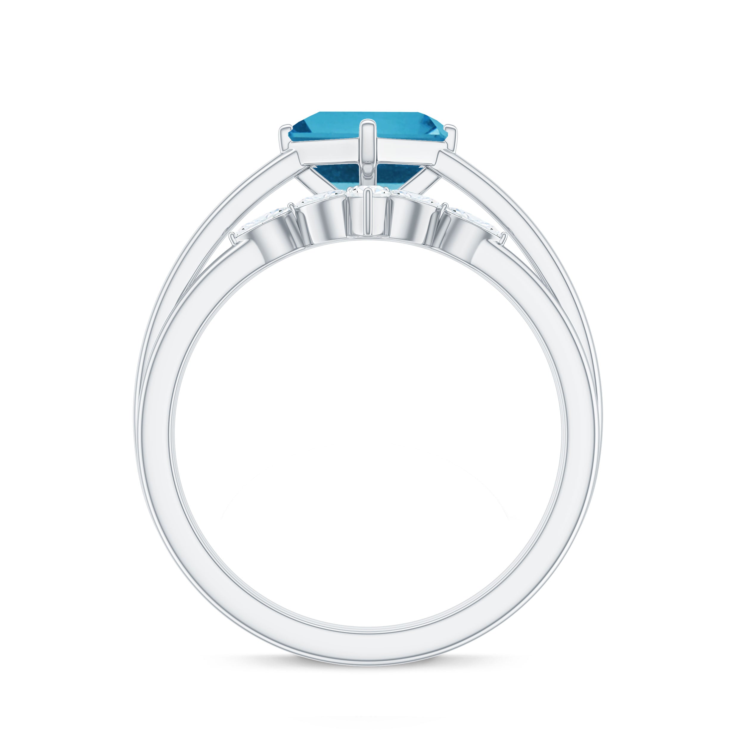 Princess Cut Swiss Blue Topaz Solitaire Ring Set with Diamond