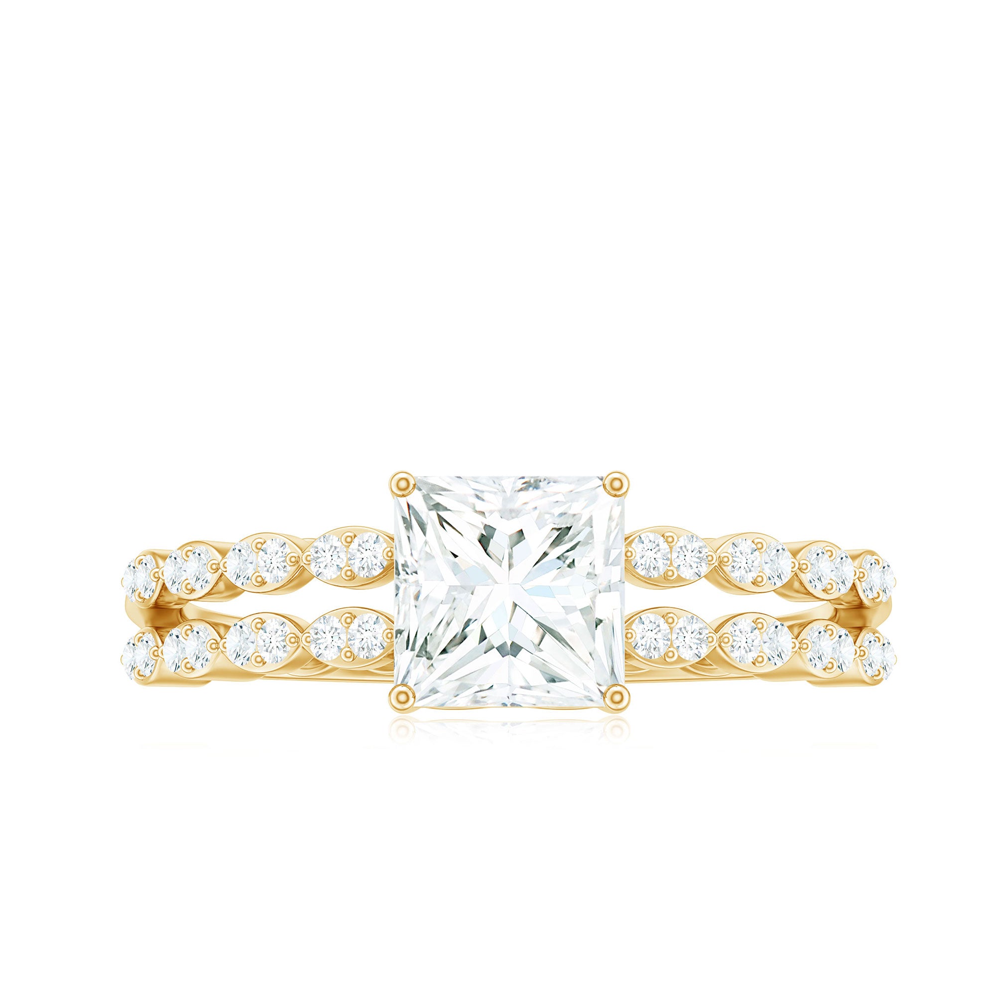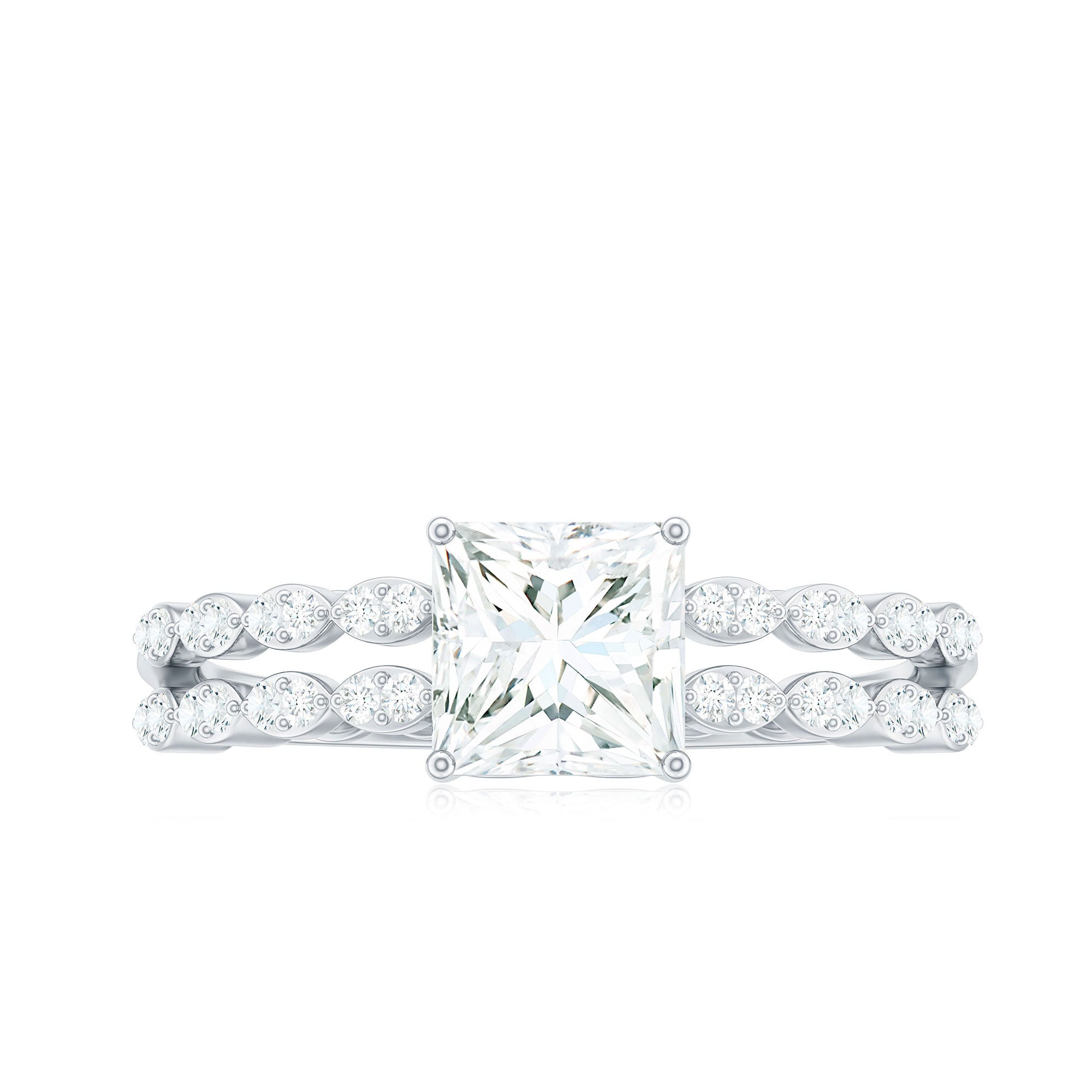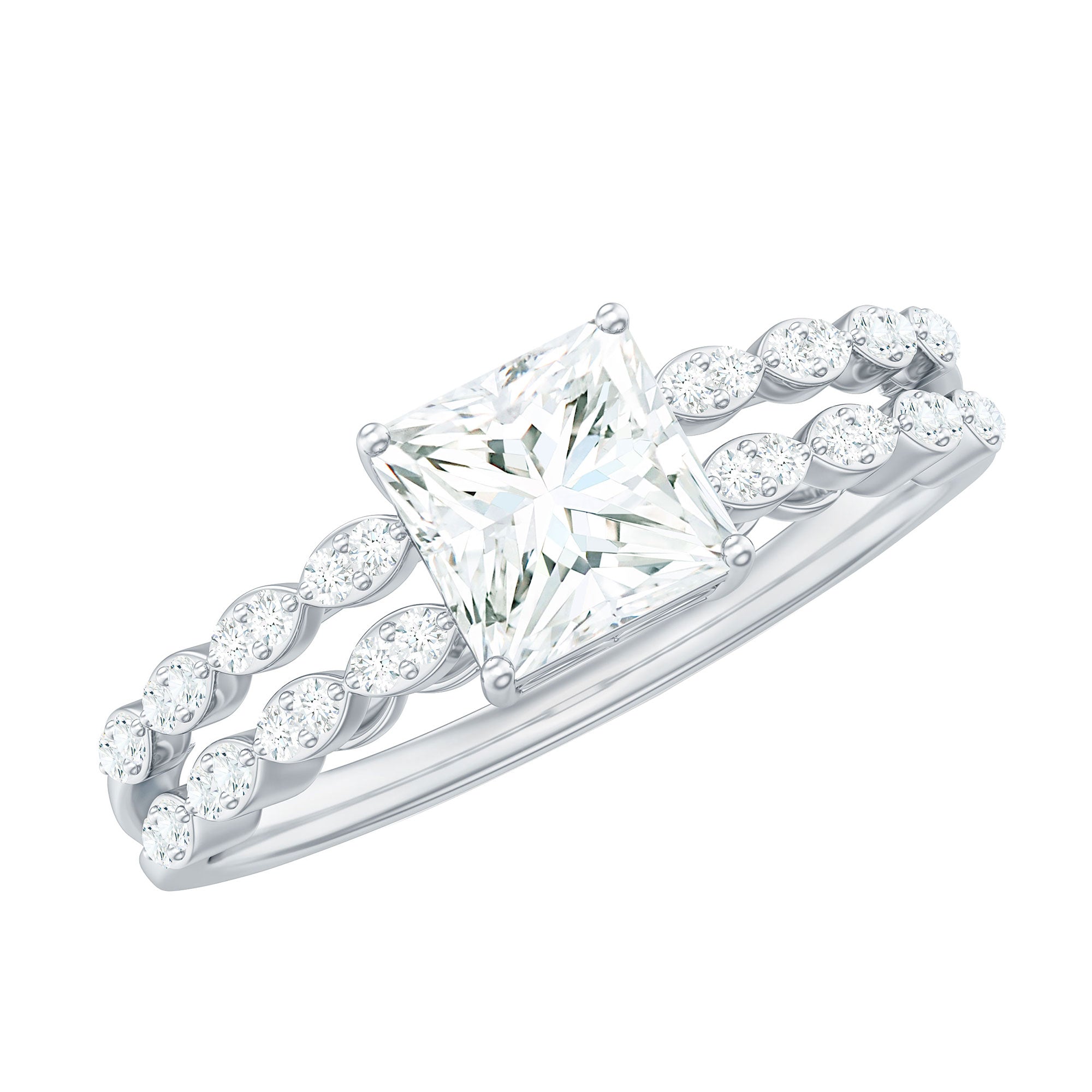 Princess Cut Zircon Double Band Engagement Ring with Side Stones