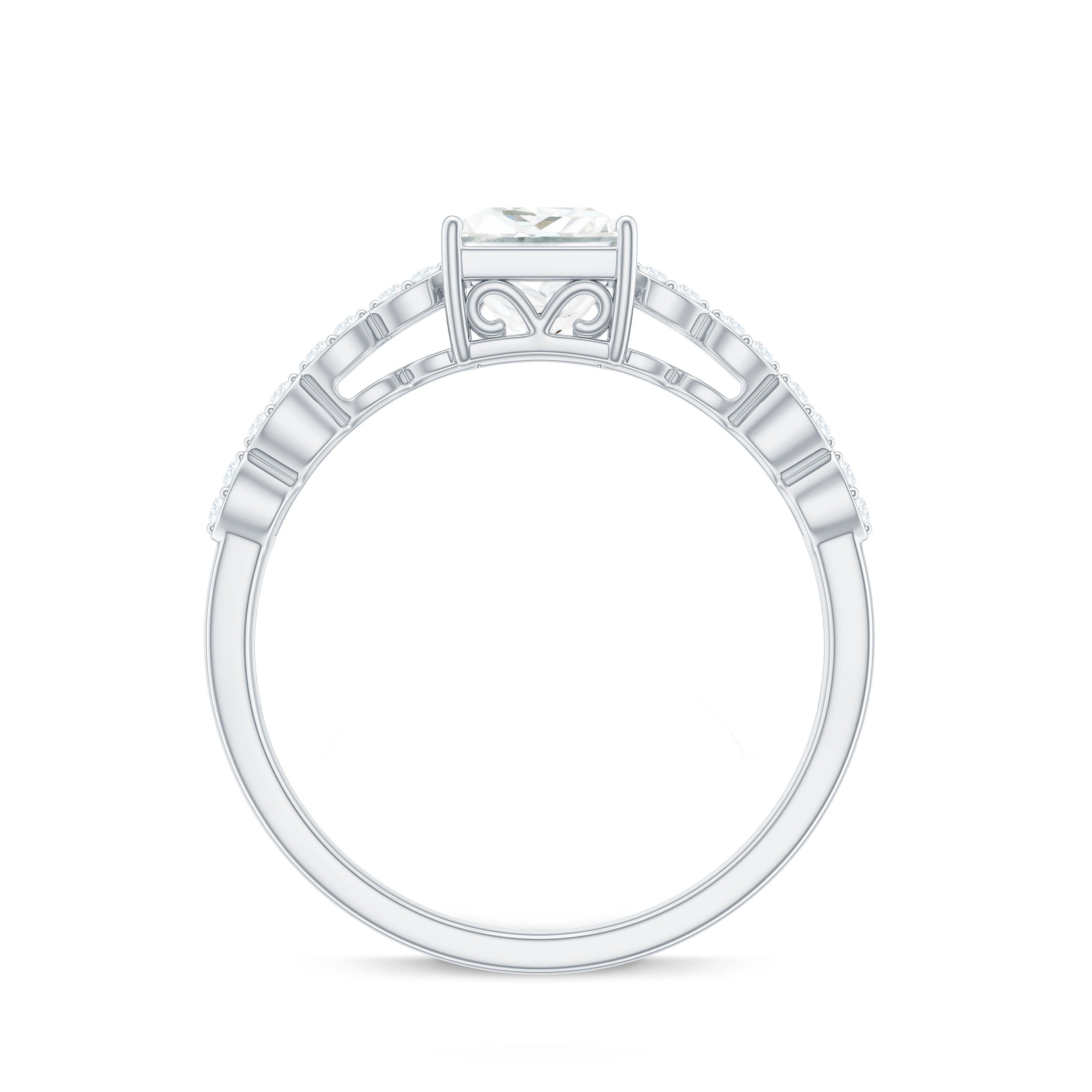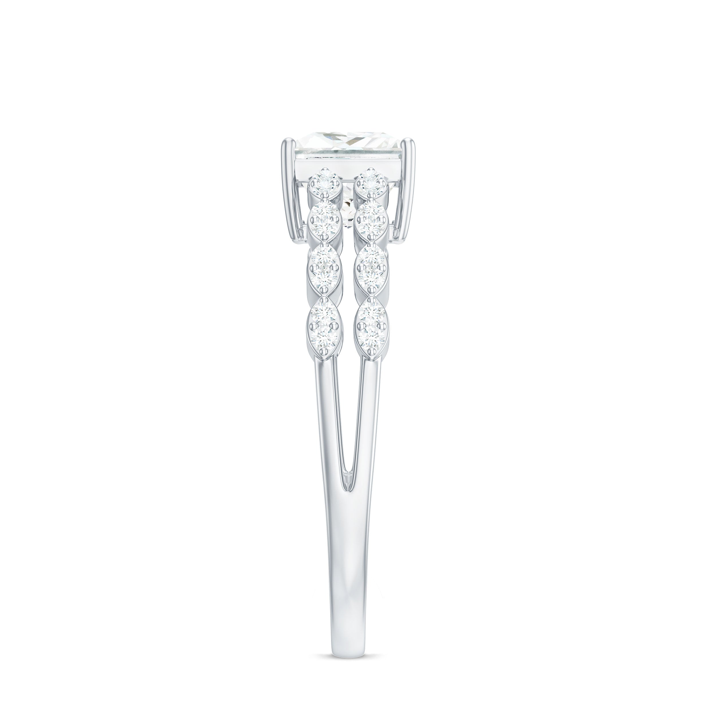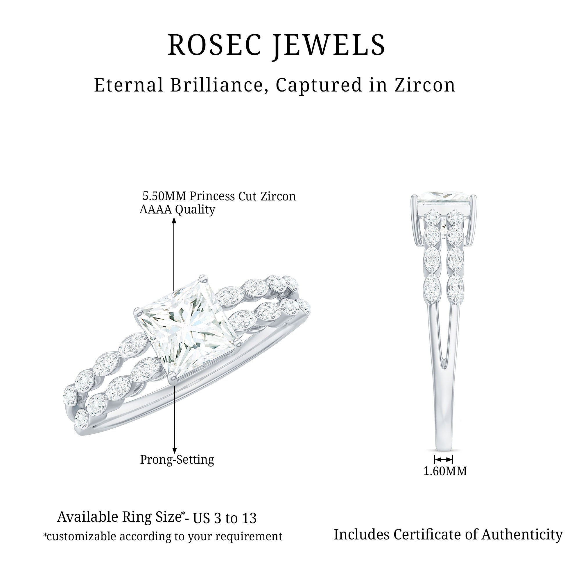 Princess Cut Zircon Double Band Engagement Ring with Side Stones