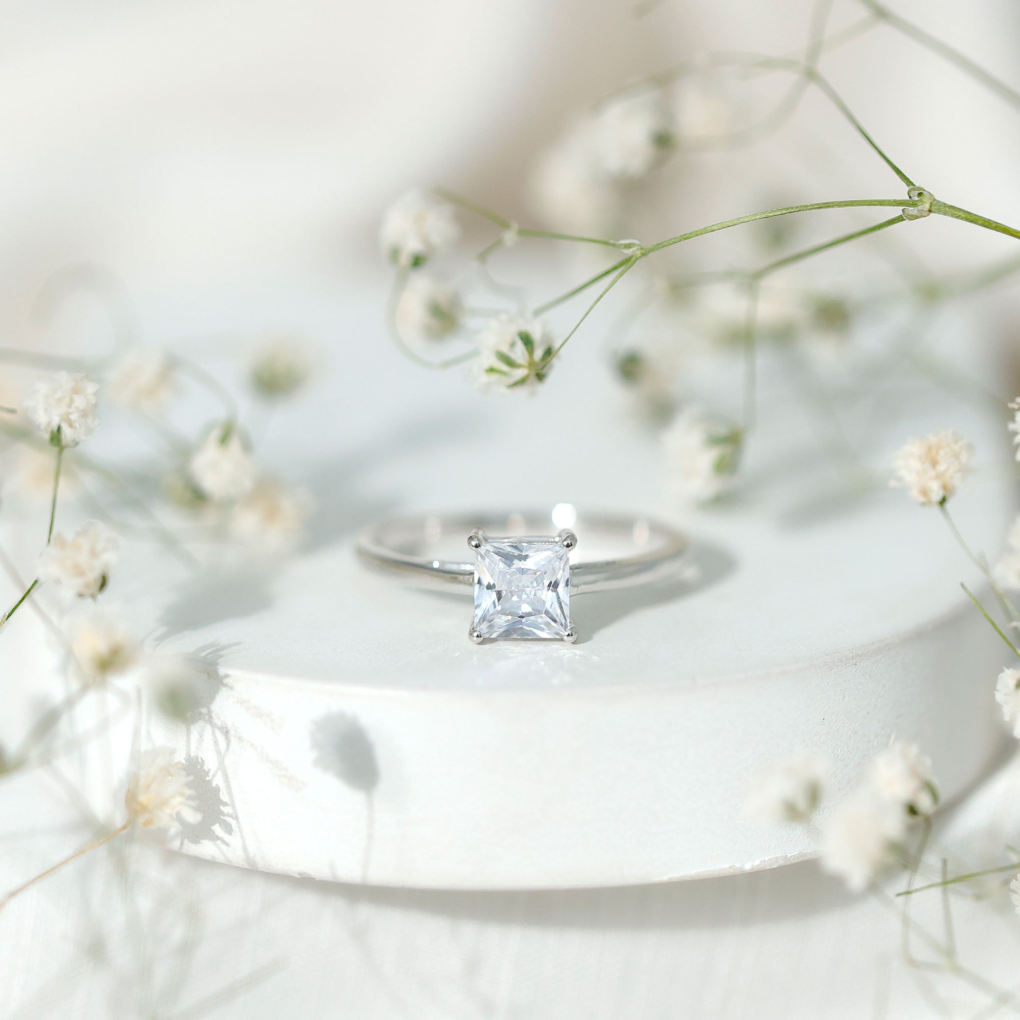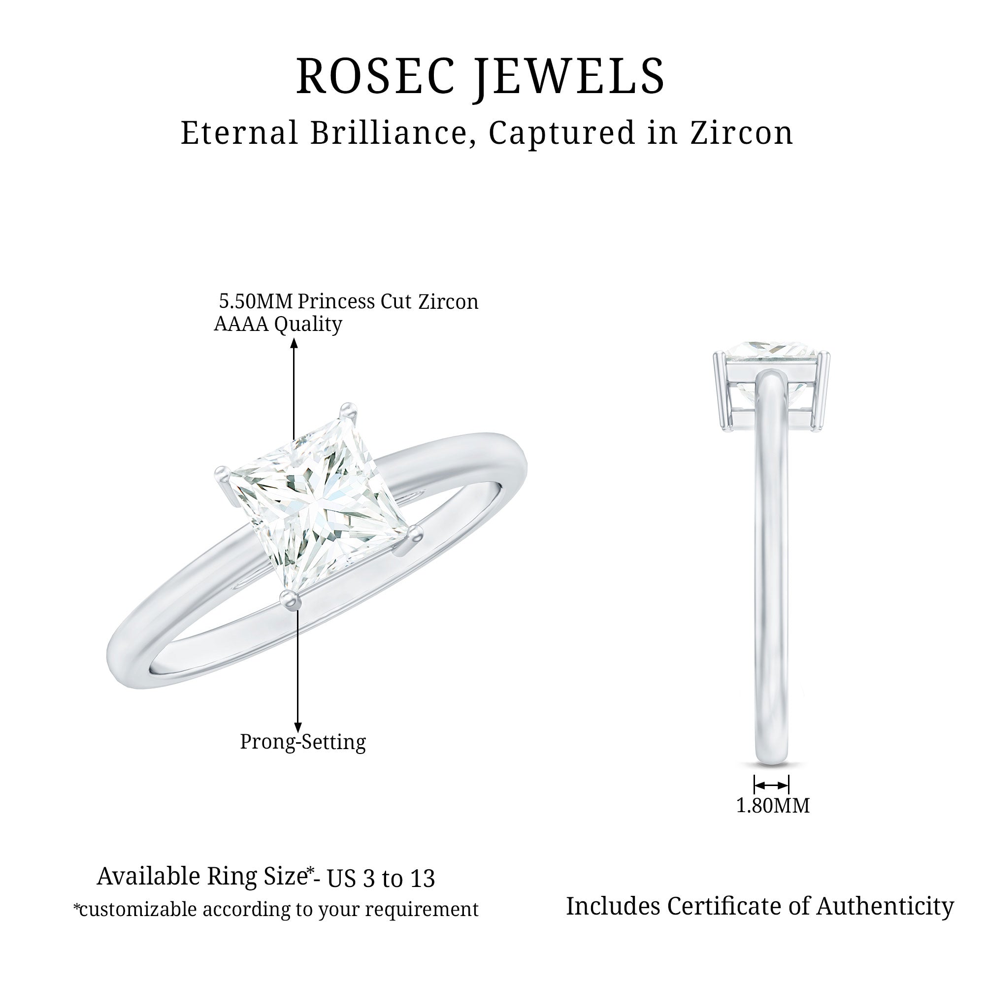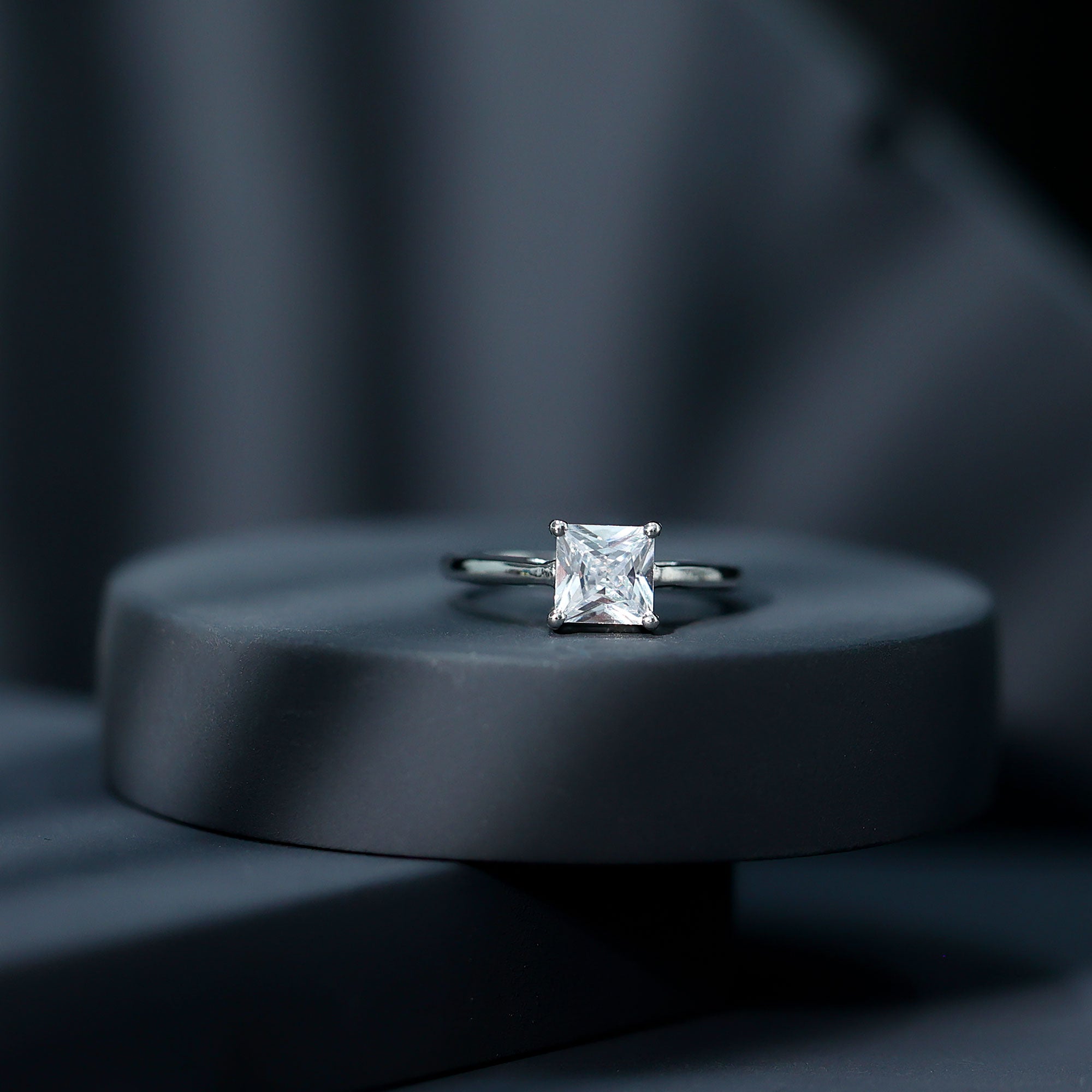 Princess Cut Zircon Solitaire Ring in Prong Setting