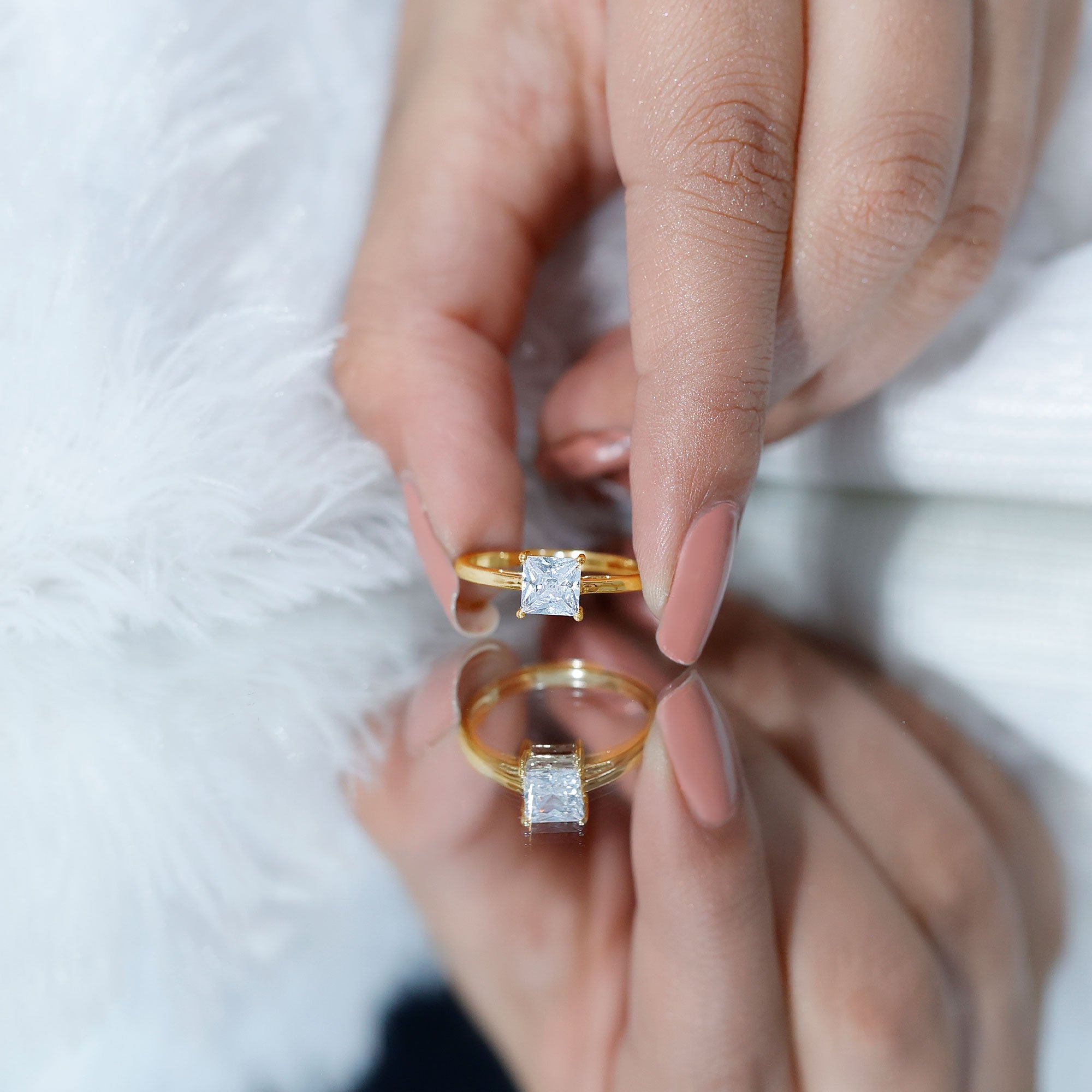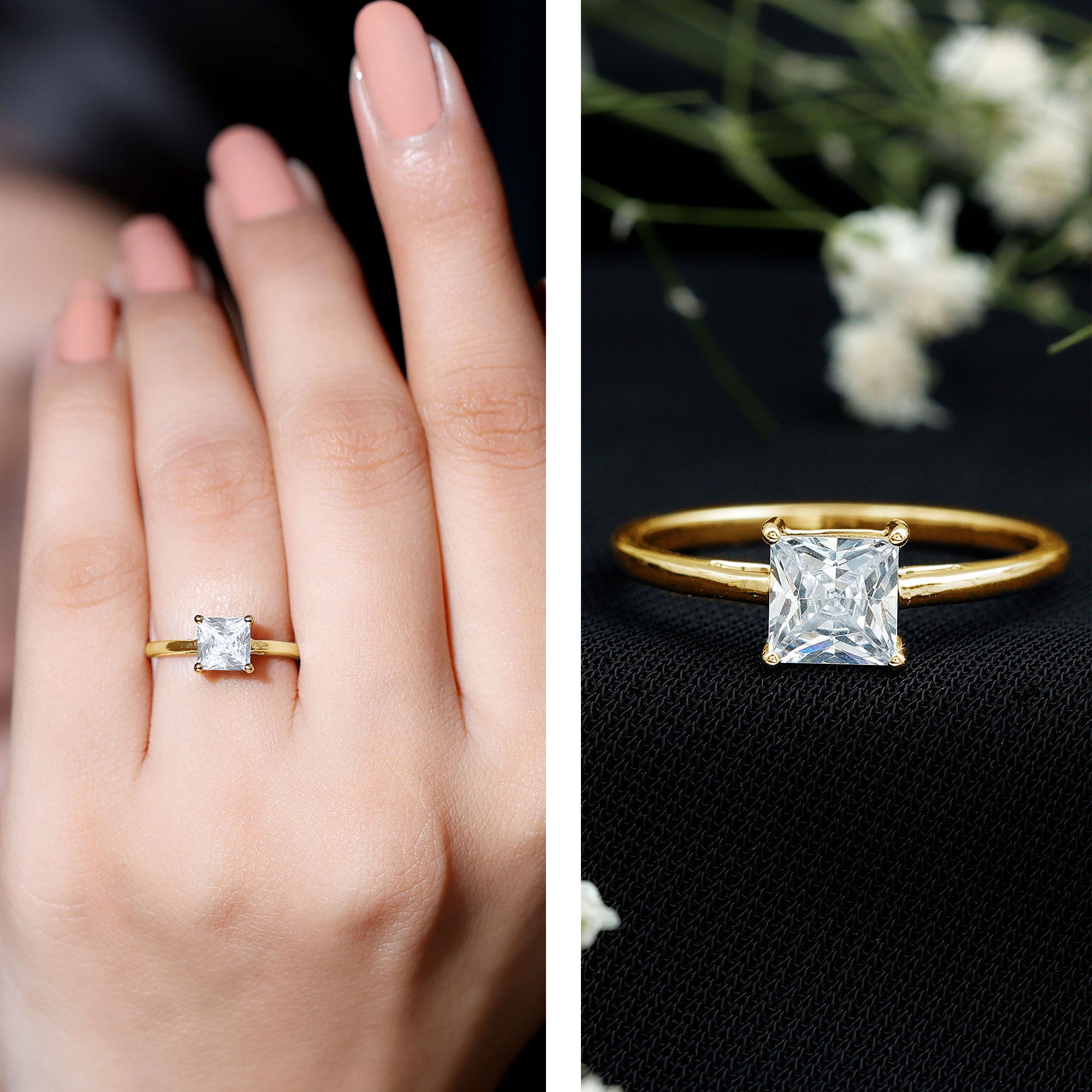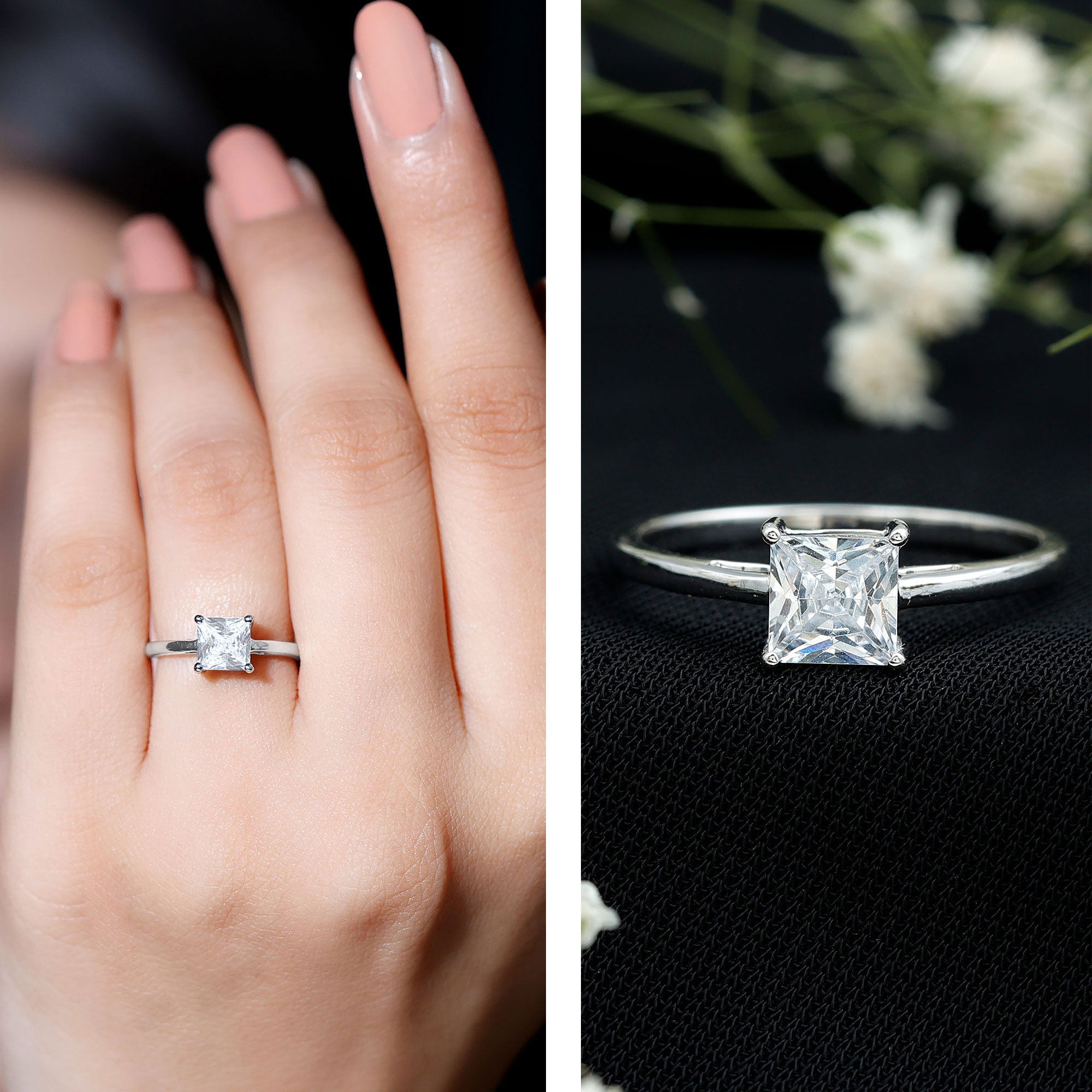 Witness her enchantment unfurl as you present her with this mesmerizing Solitaire Ring. Gracing this ring is a Princess Cut Zircon placed within a secure prong setting. Available in a range of metal options, this Cubic Zirconia Solitaire Ring is meticulously created, offering a luxurious choice for your cherished one.