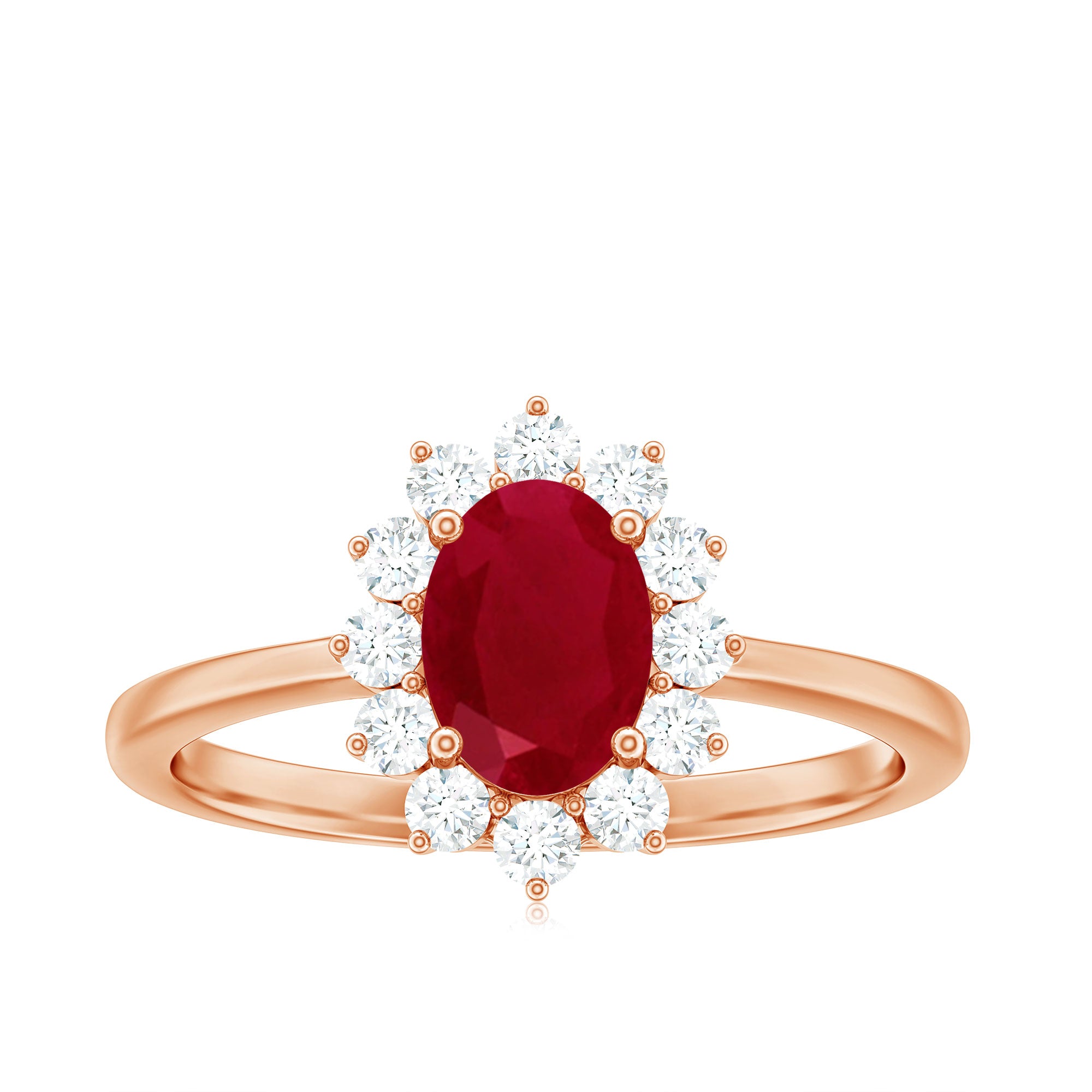 Inspired by Princess Dianas iconic style, this beautiful ruby engagement ring features an oval cut ruby and Round Shape Diamonds. The ring is crafted from gold, making it the perfect piece for a woman who wants to make a statement with her jewelry.
