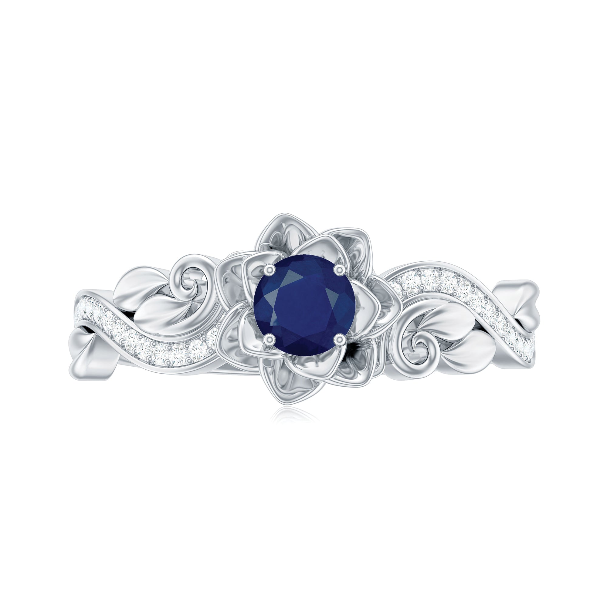 Flower Inspired Blue Sapphire and Diamond Engagement Ring