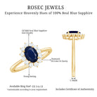 Adorn your finger with this regal Princess Diana-inspired Engagement Ring featuring an Oval Cut Blue Sapphire in a Prong Setting and accentuated with Diamonds. Made with solid gold, this Diamond accent ring exudes luxury and sophistication.