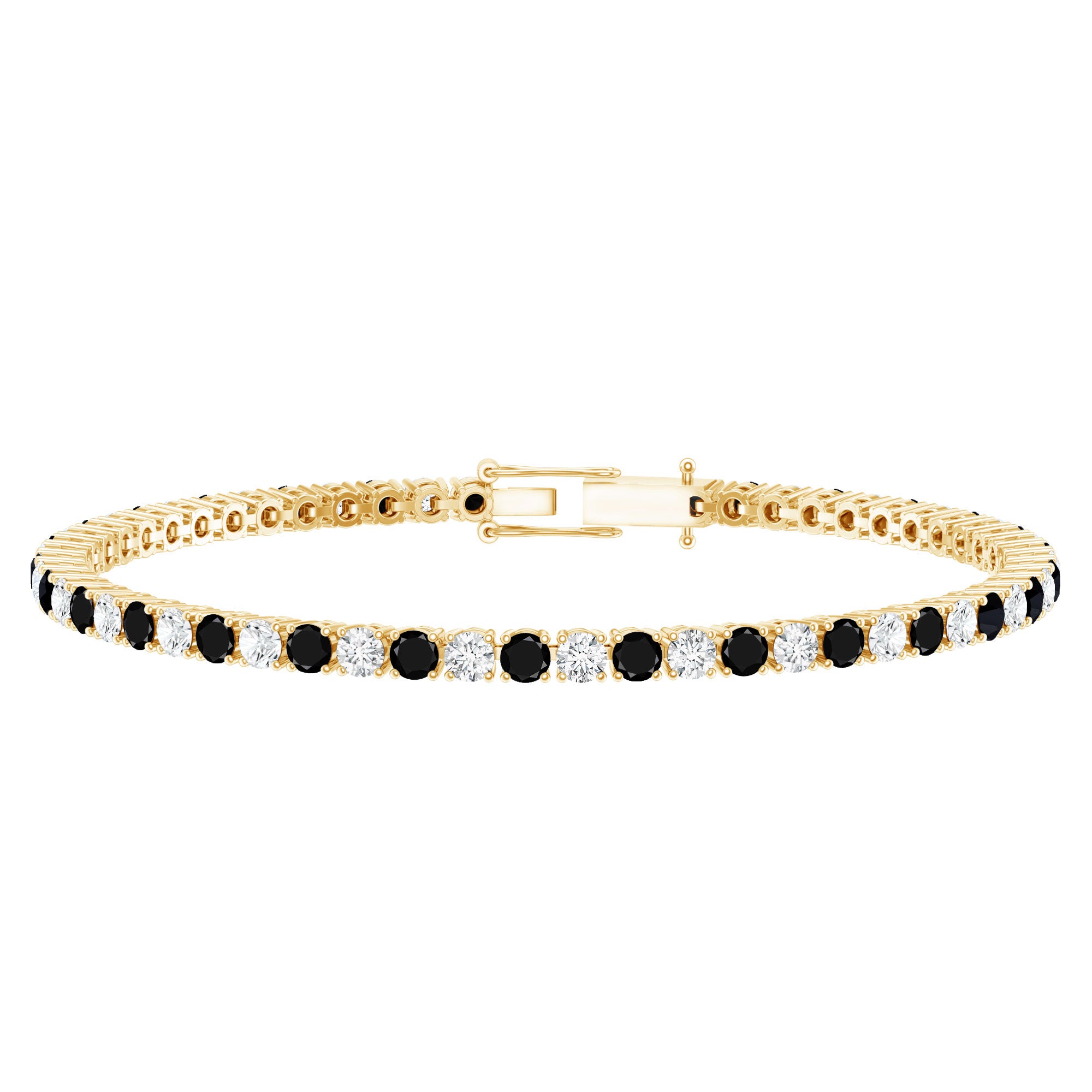 The Prong Set Certified Lab Grown Black and White Diamond Tennis Bracelet is designed for those who appreciate contrast within a structured form. The alternating tones of black and white diamonds create a distinct visual rhythm, offering a modern interpretation of the classic tennis bracelet.