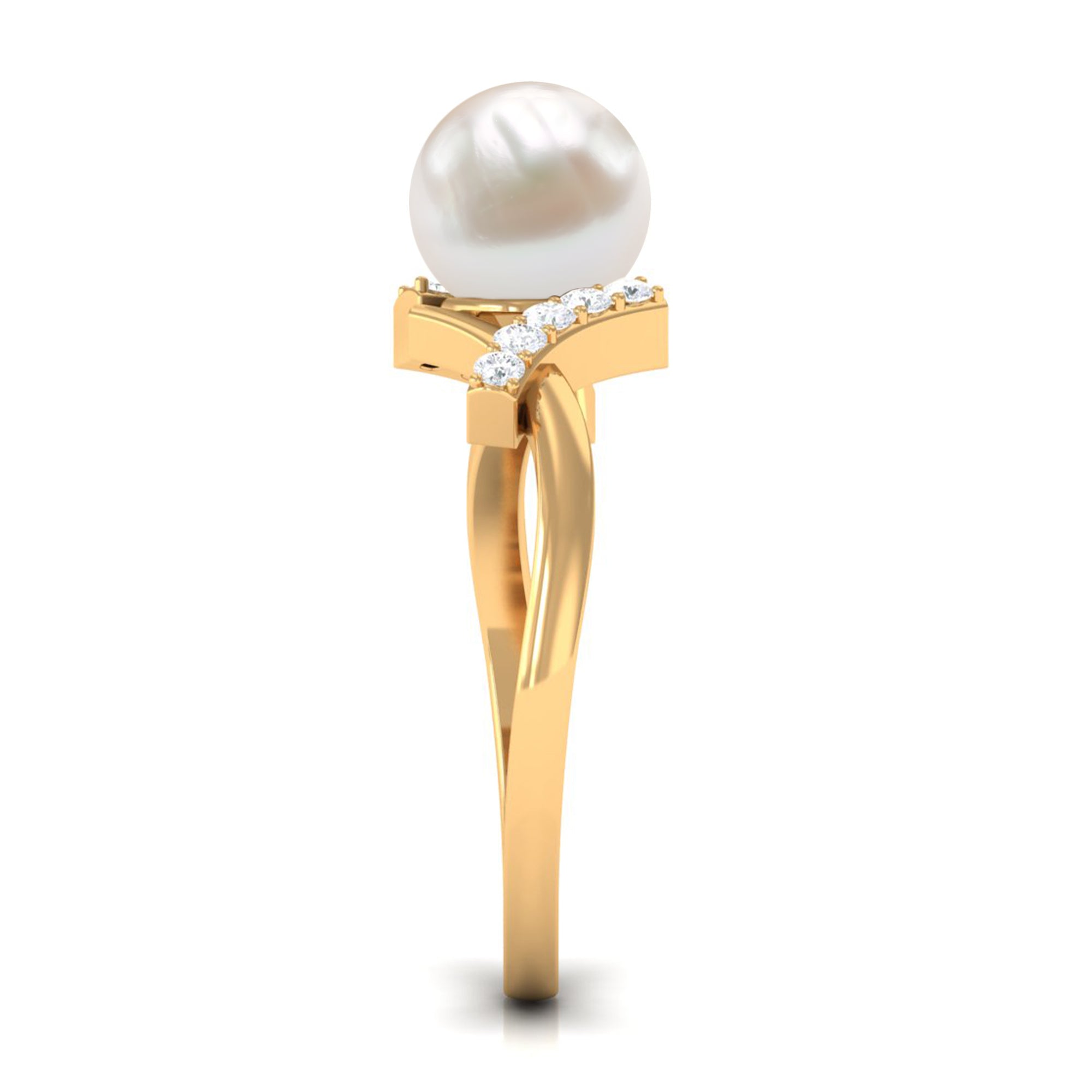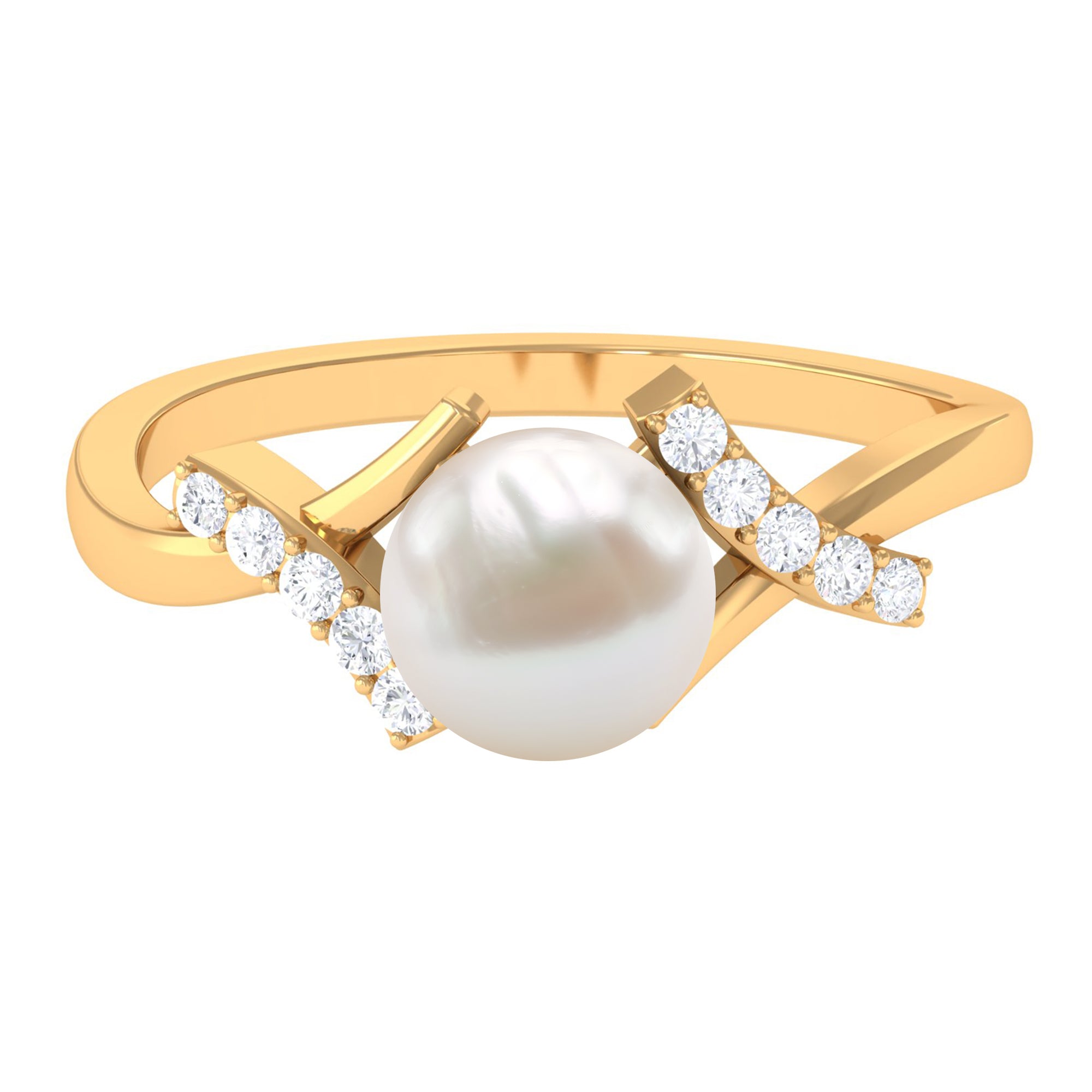 Pure Freshwater Pearl Solitaire Crossover Ring with Diamond