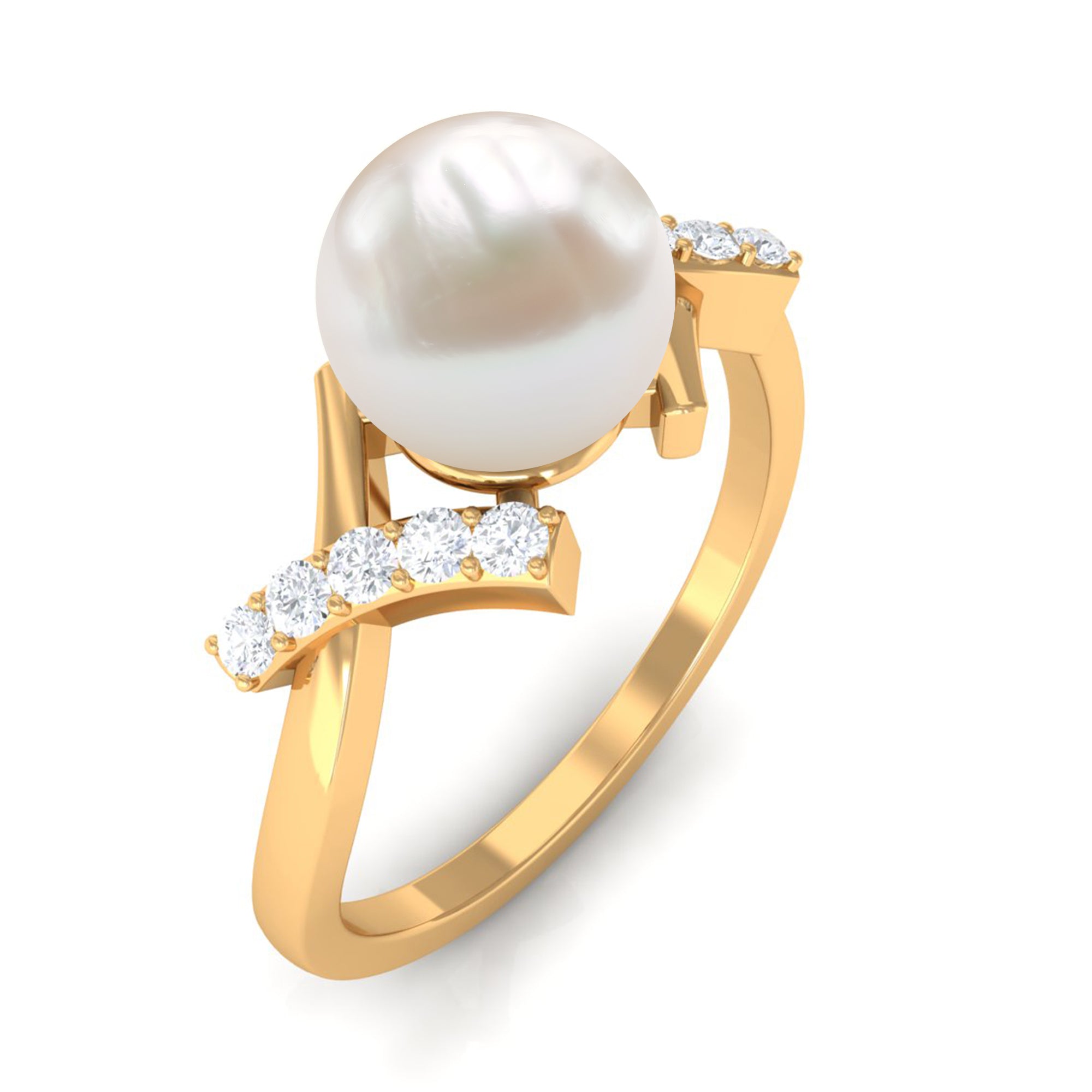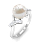 Add a touch of luxury and aesthetics to your style with this Freshwater Pearl Engagement Ring. Round Shape Freshwater Pearl is set as solitaire beautifully and to add more charm to its beauty, there are round Diamond studded on the crossover shank to enhance the beauty of this ring. This White Pearl Engagement Ring exhibits high brilliance.