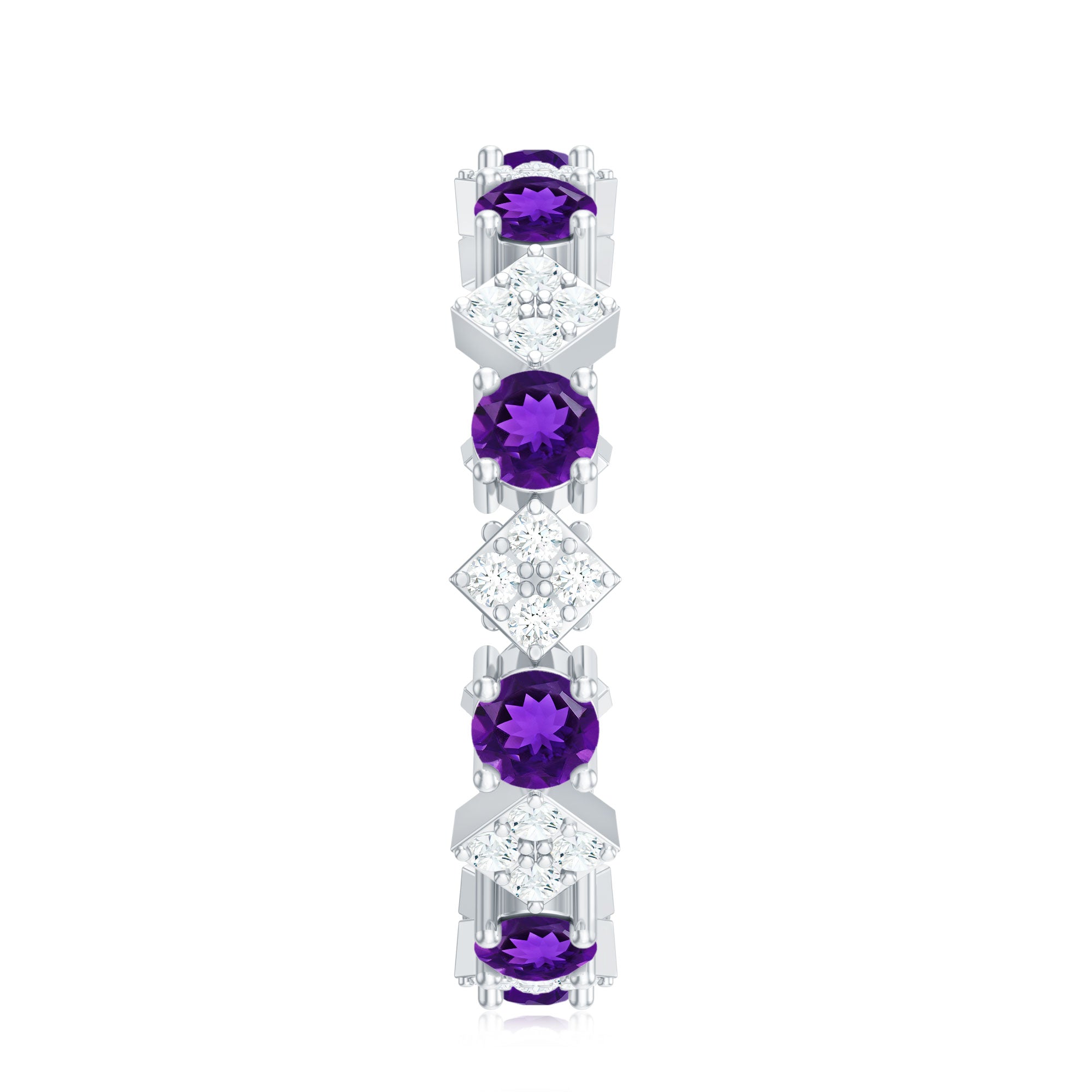 Purple Amethyst and Contemporary Diamond Eternity Ring