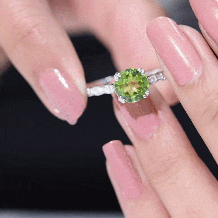 Embrace a love that shines bright and bold with this Peridot Engagement Ring, designed for moments that deserve to be remembered forever. At the center of the ring sits a stunning 8 mm Round Shape Peridot set in Double Prong Setting, glowing with a fresh green hue that symbolizes harmony, joy and new beginnings. Its vibrant center stone is beautifully balanced by sparkling Diamond Side Stones, set along the band to add depth, brilliance and a touch of timeless luxury. This Peridot Diamond Ring blends classic elegance with a modern edge, making it perfect for someone who loves meaningful details. The sparkling HI-SI Quality Diamond stones catch the light with every movement, while the AAA Quality Peridot stands proudly as a statement of devotion that is both unique and unforgettable. Presented in a signature jewelry box and available in multiple ring sizes, this Solitaire Engagement Ring with Peridot is ready to become part of your love story. Whether it marks an engagement, an anniversary or a promise straight from the heart, this Peridot Ring for Women speaks of commitment, passion, and a future shared.
