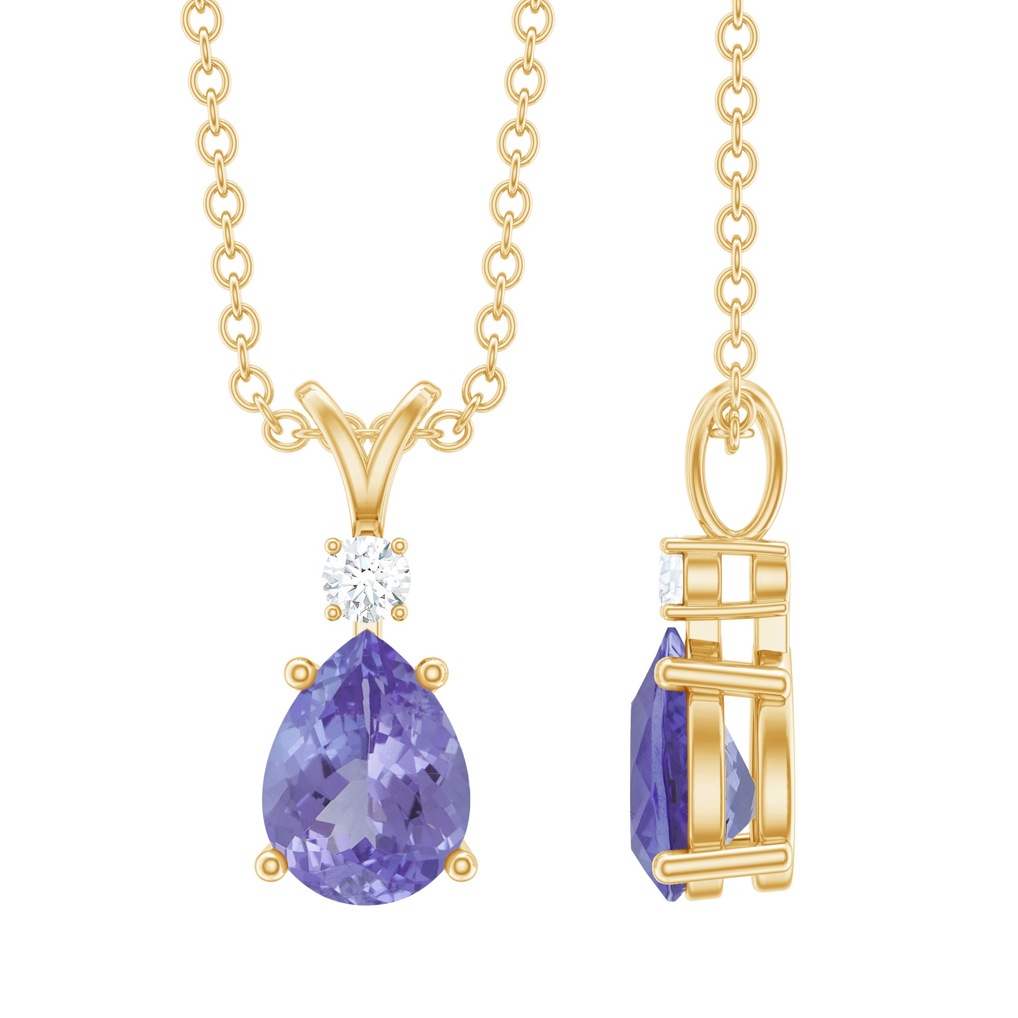 Experience classic and enduring sophistication with this Tanzanite Pendant Necklace that features a 5X7 MM Pear Shape Tanzanite gemstone set in 4 Prong Setting with a sparkling Diamond at the top. The pendant is suspended with a Rabbit Ear Bail which makes it perfectly sit on the Neckline. This Solitaire Pendant Necklace sparkles with the classic shine of AAA Quality Tanzanite will make you look out from the crowd.