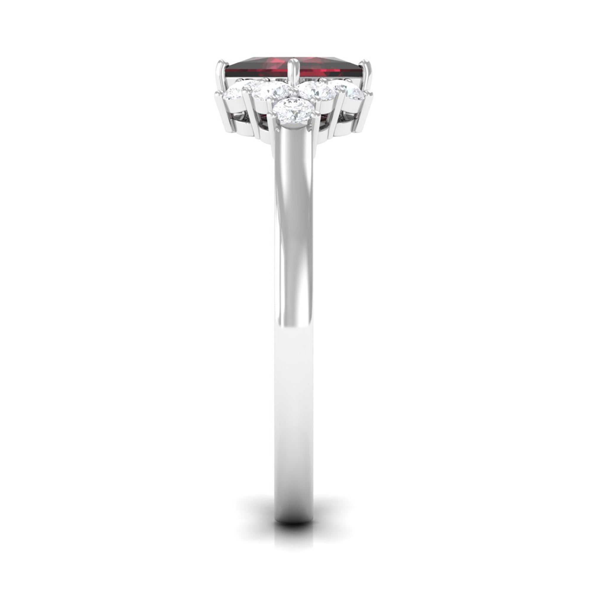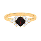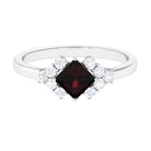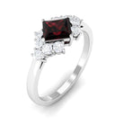 Real 6mm Garnet Princess Cut Engagement Ring with Diamond